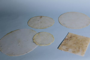 Dies war der Ausgangspunkt der Bachelorarbeit „GUM“, die sich mit der Entwicklung eines Materials aus gebrauchtem Kaugummi befasste.