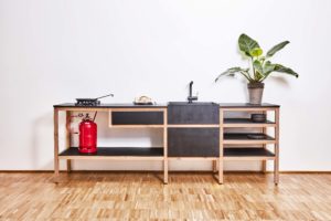 In this case the system serves as a modular kitchen. From the beginning of the project the goal was to design a sustainable furniture system.
