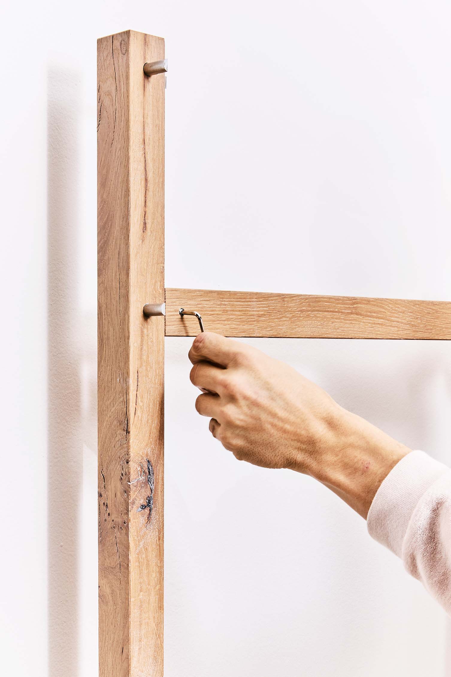 Keyframe is a modular furniture system. Its main parts are stainless-steel connectors, oak beams and CDF-boards that function as connection, structure and body.