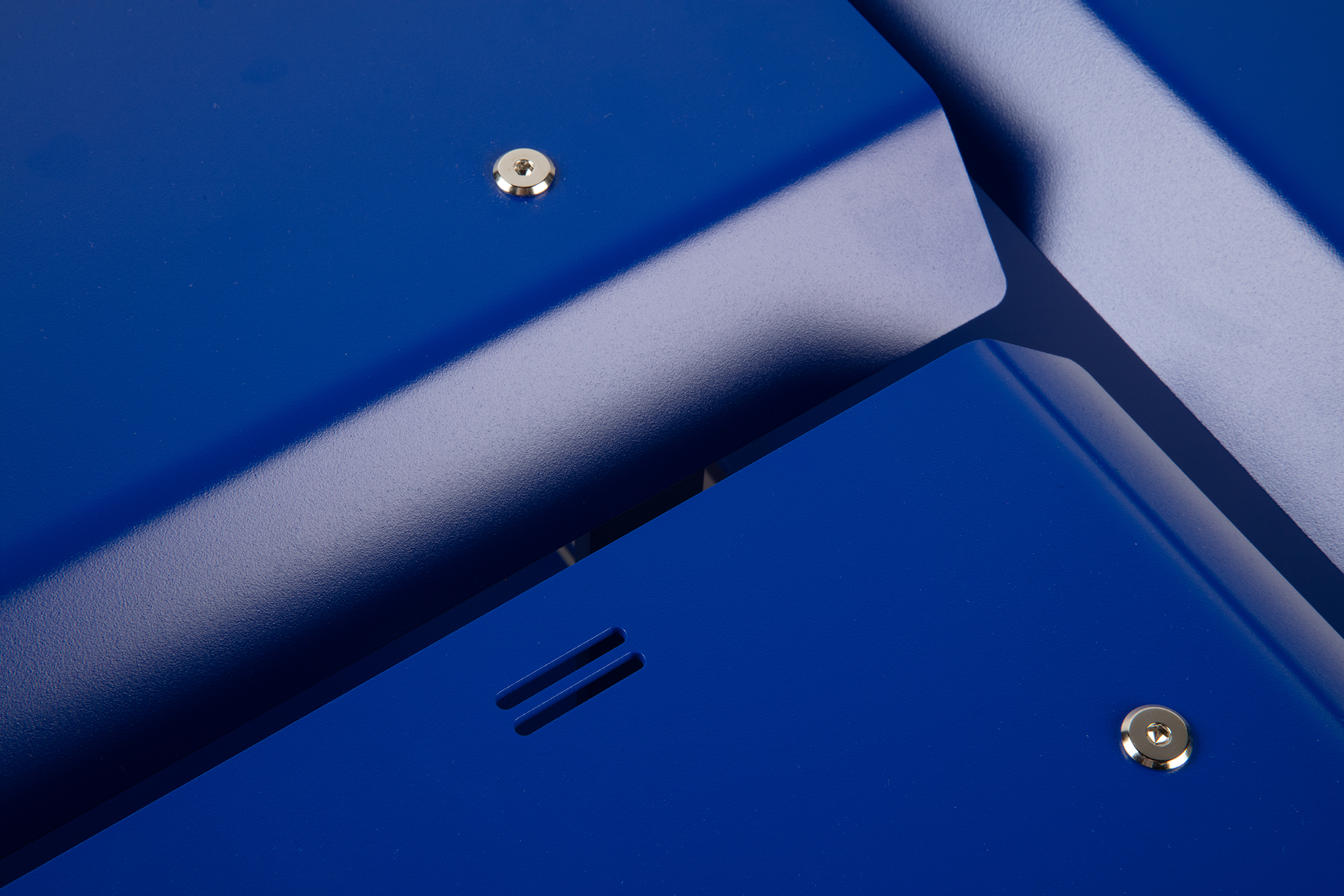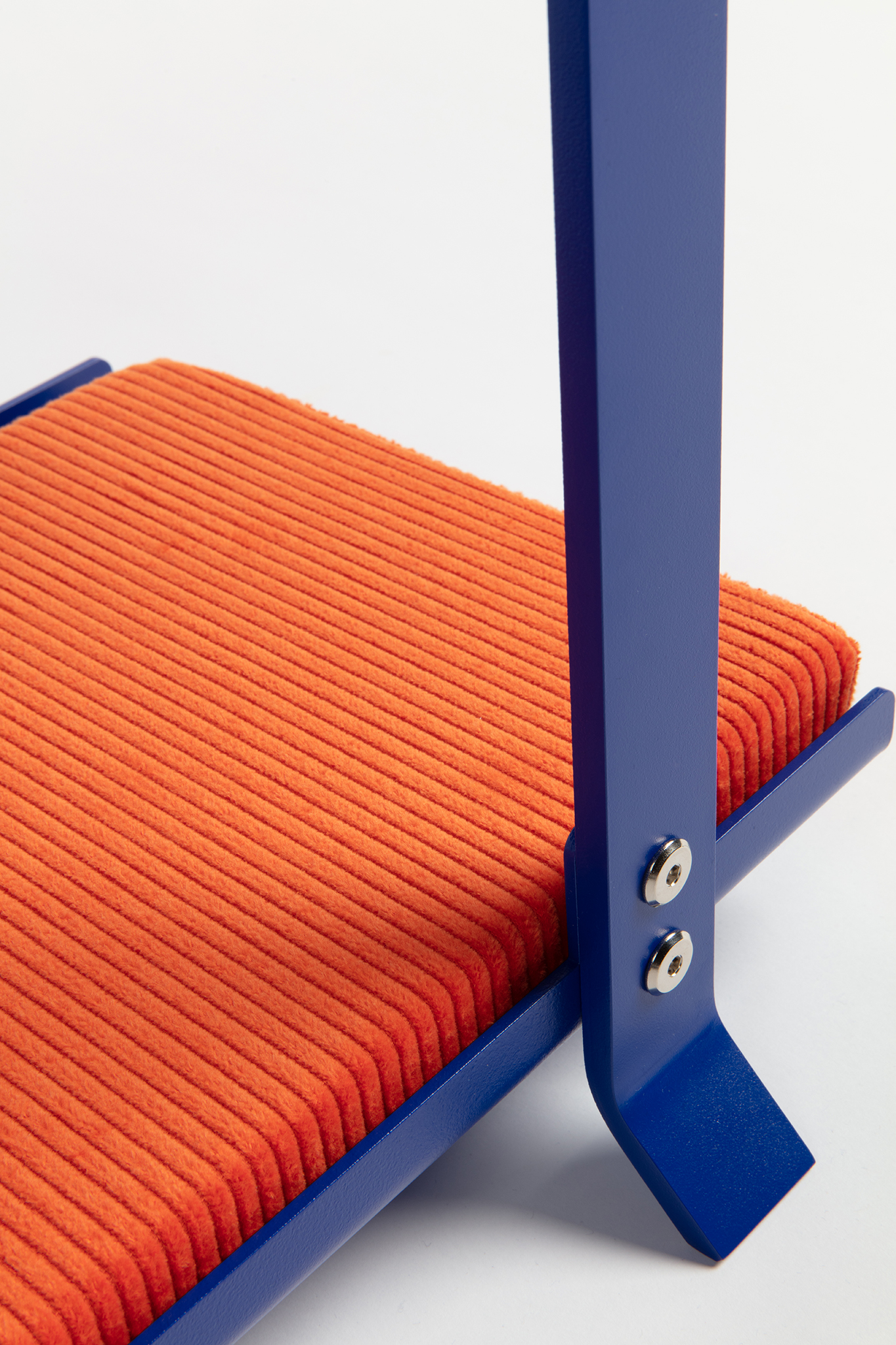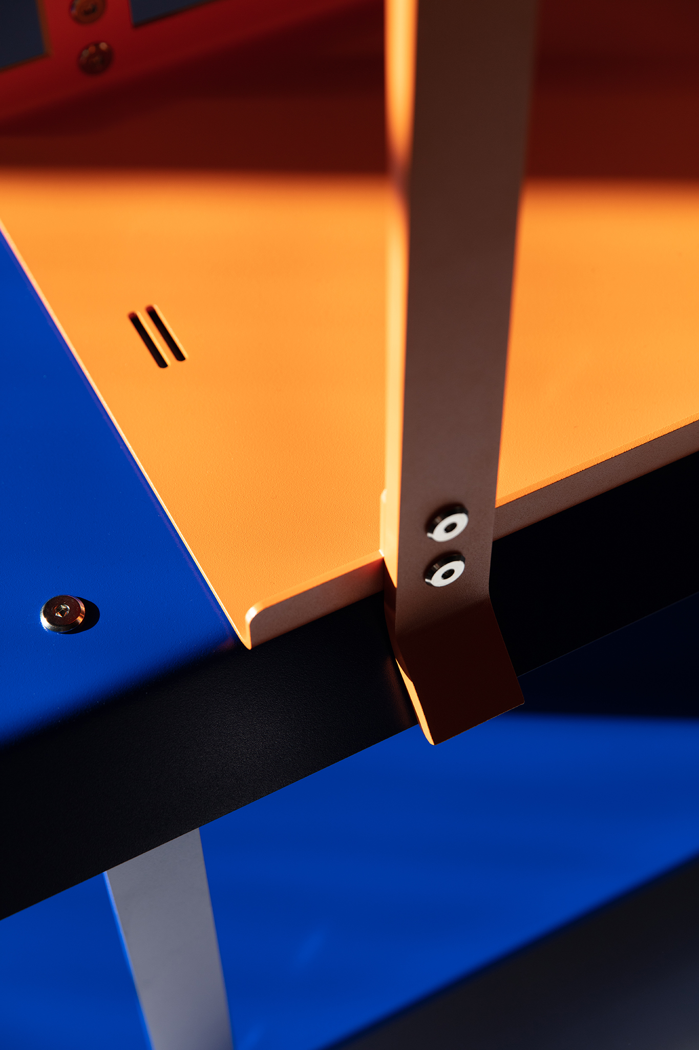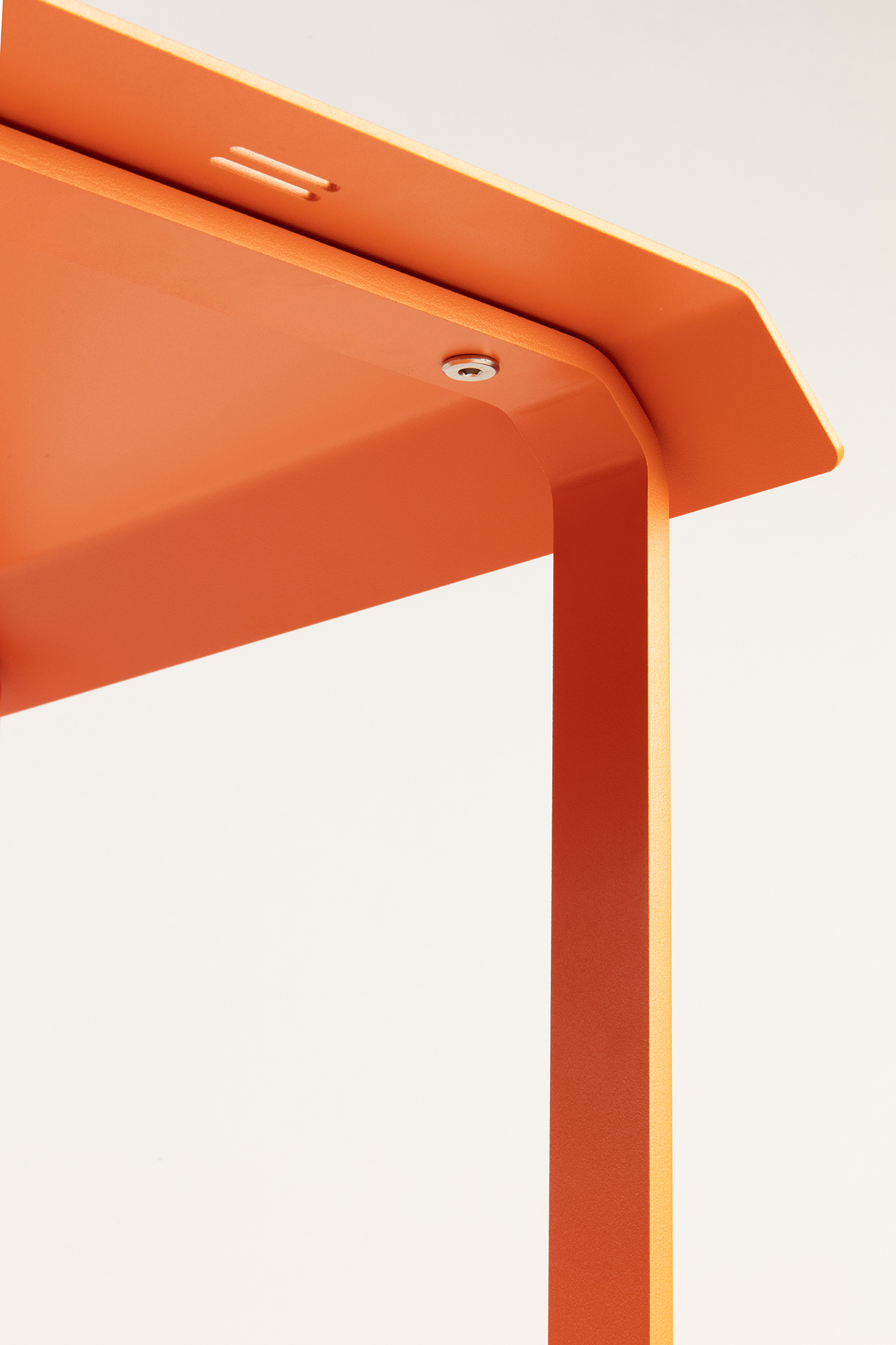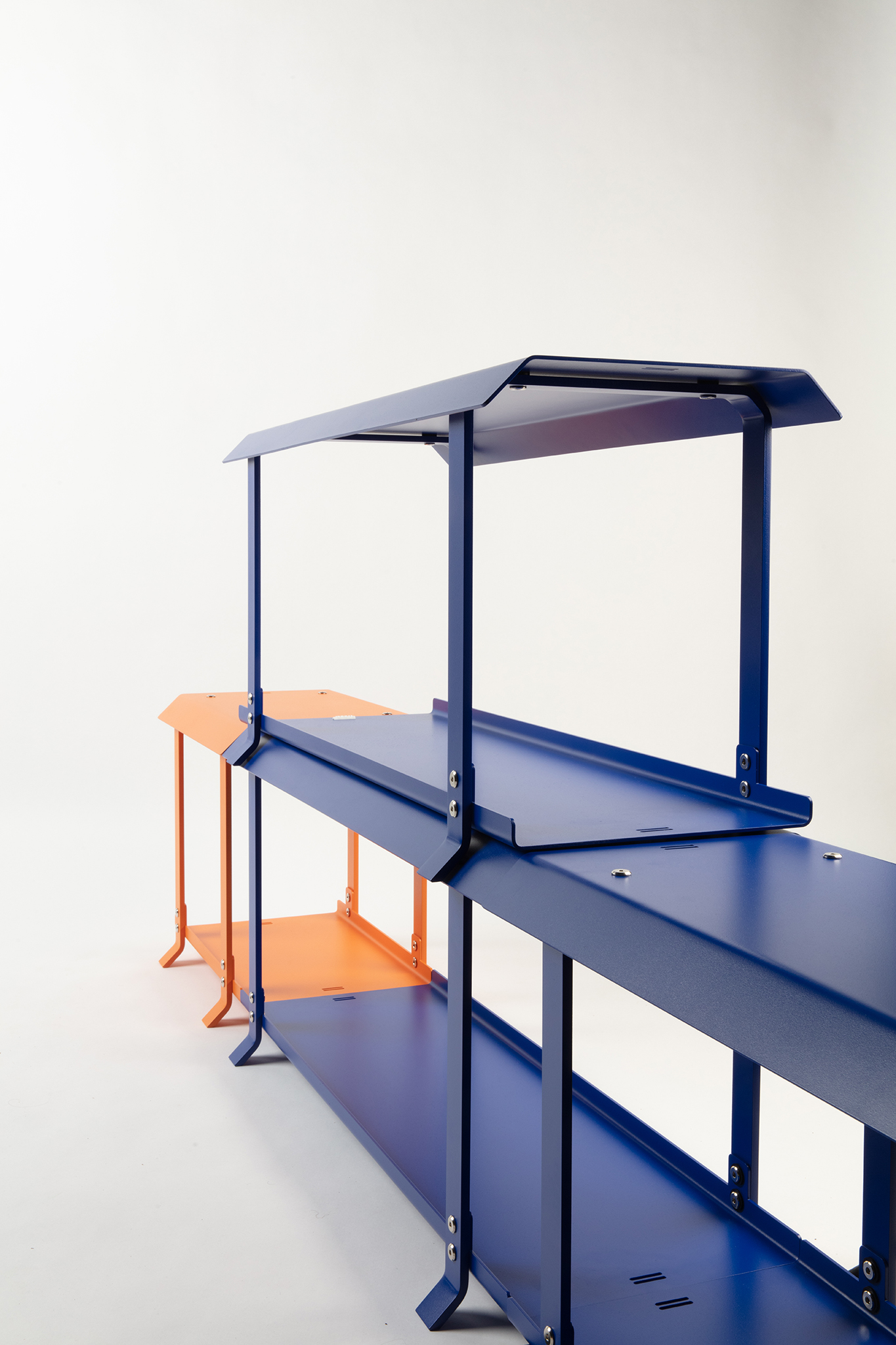 Das Design zeichnet sich durch eine moderne Palette klassischer und zeitgenössischer Farben aus, die die Fähigkeit des Systems unterstreichen, ein einzigartiges und individuelles Erlebnis zu bieten. Graphitschwarz, Hellgrau und Tannengrün sind die traditionellen Farbcodes, während tiefes Orange, leuchtendes Orange und Ultramarinblau die charakteristischen Farben sind, die das Design unsere traditionellen Erwartungen an Regalsysteme übertreffen lassen.
