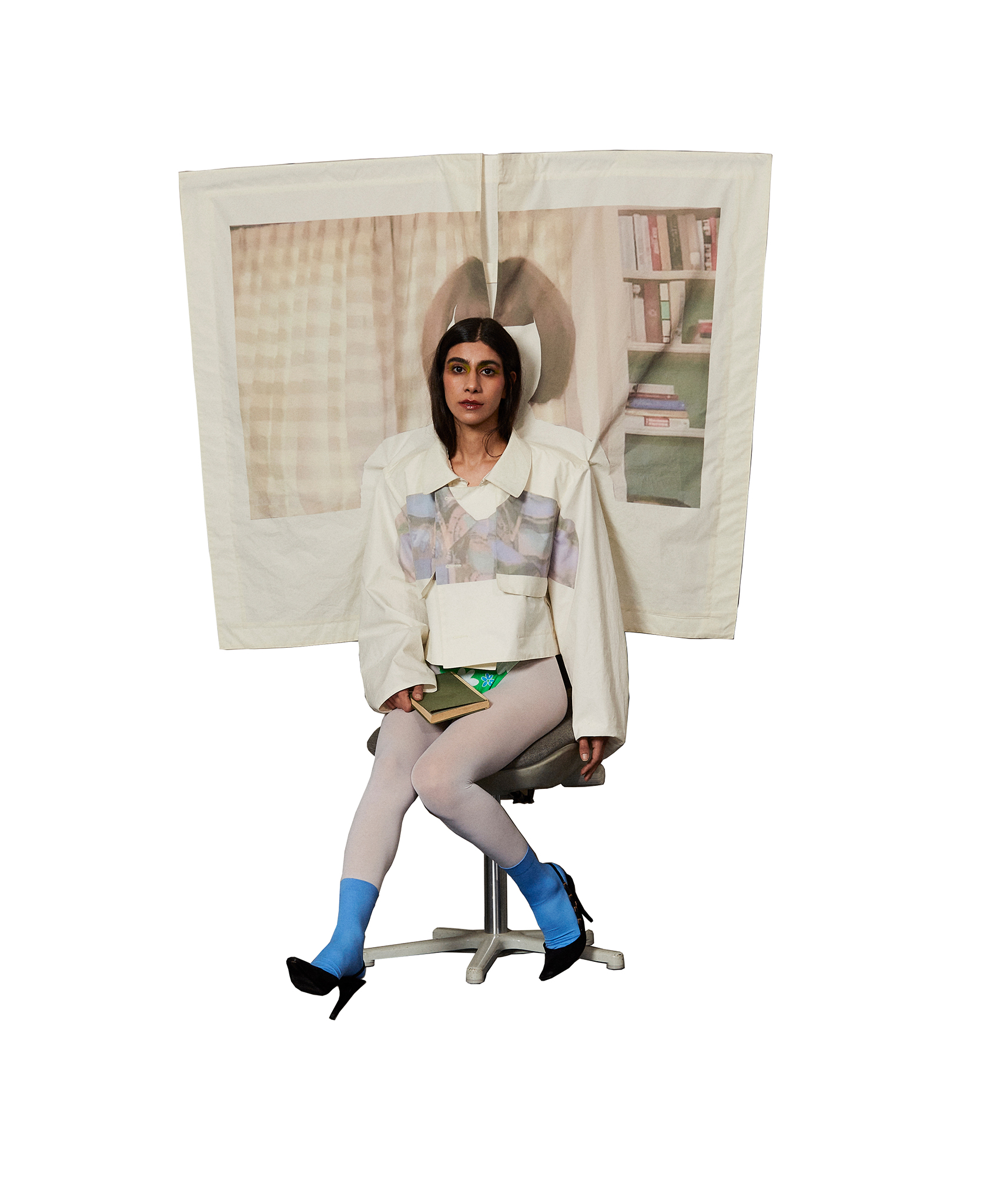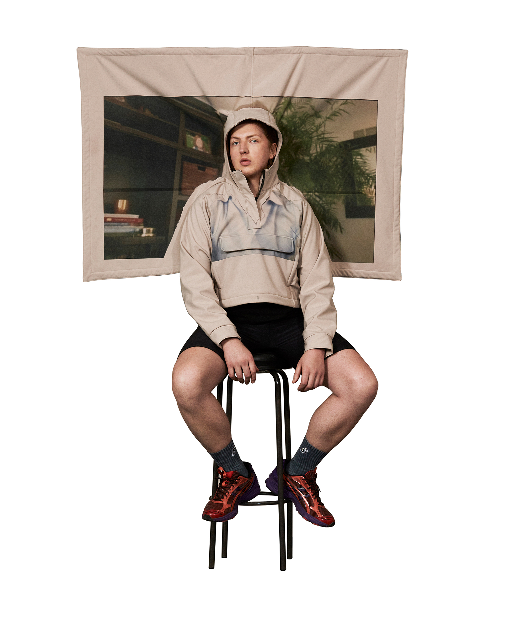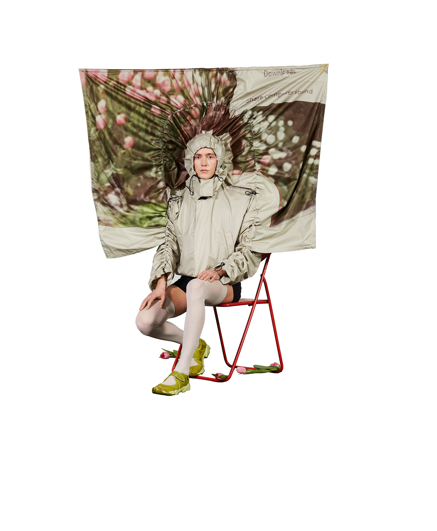 The screenshots from the video calls become the clothing element. Background and foreground merge and become one. The four tops result from the digital image framing as they become visible in the video call; and are based on outdoor clothing. They illustrate the slipped-over character of the digital identity.