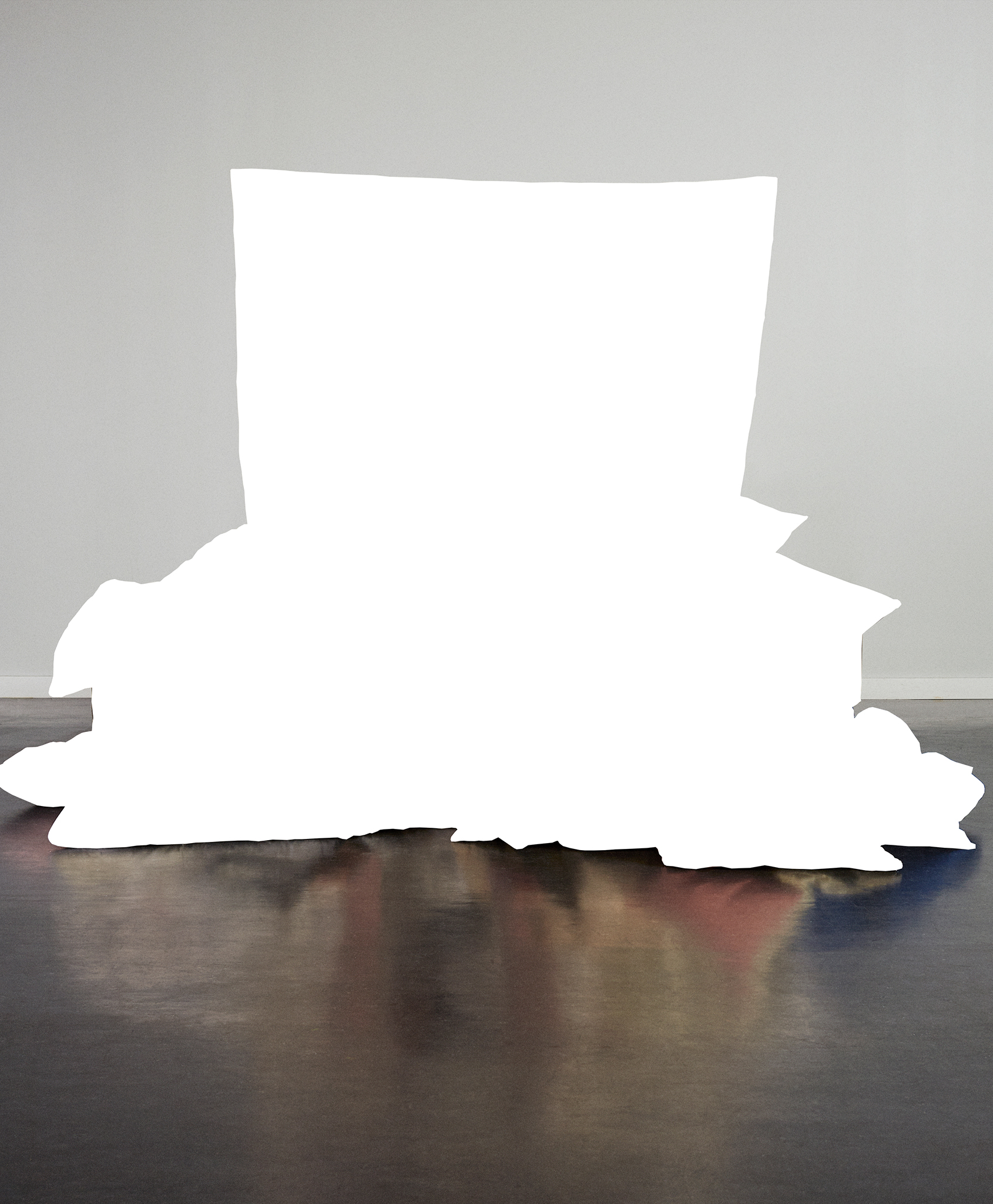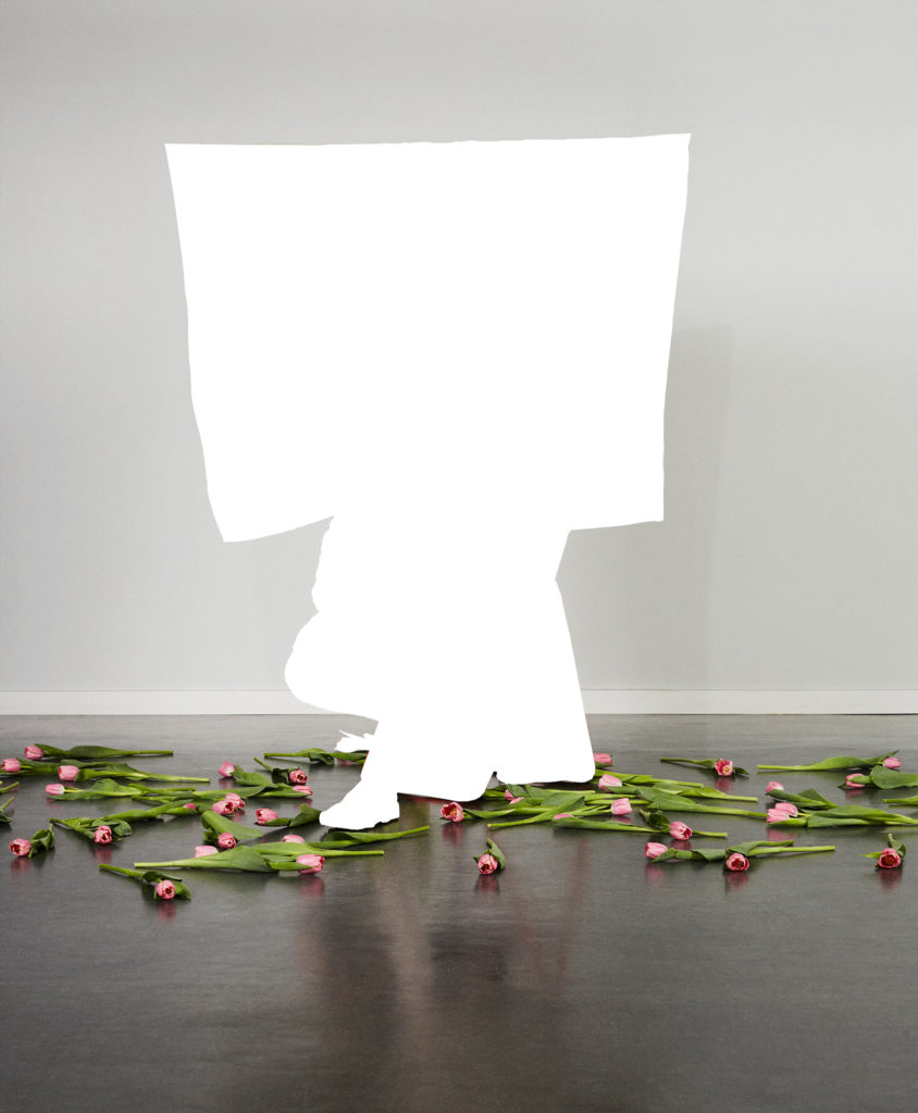 Die Fläche des zweidimensionalen Bildes wird auseinander gezerrt, der oder die TrägerIn in das „Bild“ eingesetzt.