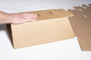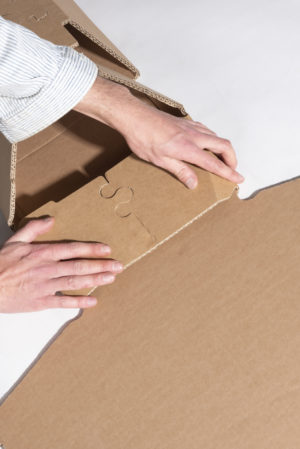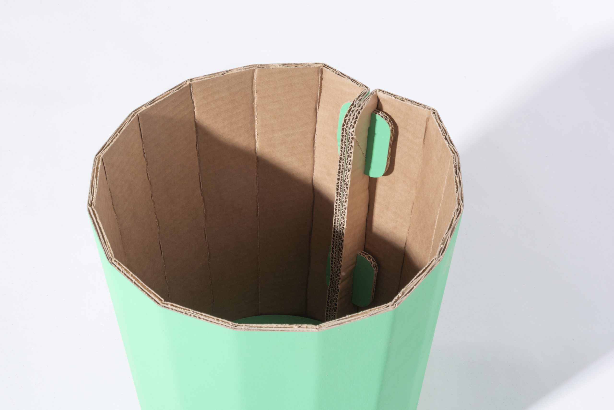 Cardboard Works ist eine Maschine zum Schneiden von Karton und einer Reihe weiterer Produkte. Die Maschine macht es möglich, Karton vor Ort zu verarbeiten. Es handelt sich um eine mobile Maschine, die innerhalb von zwei Tagen aufgebaut werden kann. Die Pläne dafür sind Open Source und jedes spezielle Teil, das man nicht im Baumarkt um die Ecke bekommt, ist 3D-gedruckt. Das offene System ermöglicht es, eigene Werkzeuge zu entwickeln und in der Produktion kreativ zu werden oder die Anwendung an die örtlichen Gegebenheiten anzupassen. Als Ausgangsbasis wurden 3 Werkzeuge zum Schneiden, Rillen und Zeichnen entwickelt. Ein Hocker und ein Abfalleimer, die bei der Produktion vor Ort ohnehin nützlich sind, wurden mit einem Faltplan aus einem flachen Kartonbogen als Ausgangspunkt für die lokale Produktion entwickelt.