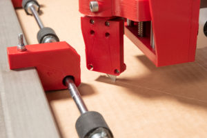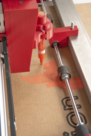 Cardboard Works is a machine for cutting cardboard and a series of products. The machine makes it possible to process cardboard on site. It is mobile and easy to build within two days, the plans are open source and every special part that you can´t get in you corner building shop is 3D printed. The open system makes it possible to develop one’s own tools and to become creative in the production or to adapt the application to local conditions. As a starting point 3 Tools for cutting, creasing and drawing where developed. A stool and a bin that come in handy at on site production anyways where developed with a folding plan from a flat sheet of cardboard as a starting point for local production.