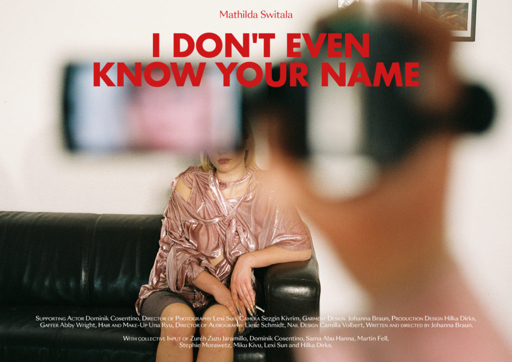 „The starting point of my master project I DON’T EVEN KNOW YOUR NAME was a reoccurring observation of a person during a bus ride that left me obsessed with the memory of her sight. To counter the double-bind that ties observation, figuration and representation to the hierarchical power structures embedded in the shared realities of our lives, I aimed to focus on an inward debate on my obsession instead of trying to define another through clothing and appearance. The process centres on the possibilities of writing and creating through or by, rather than about a first starting point to generate a purely subjective source of inspiration.”