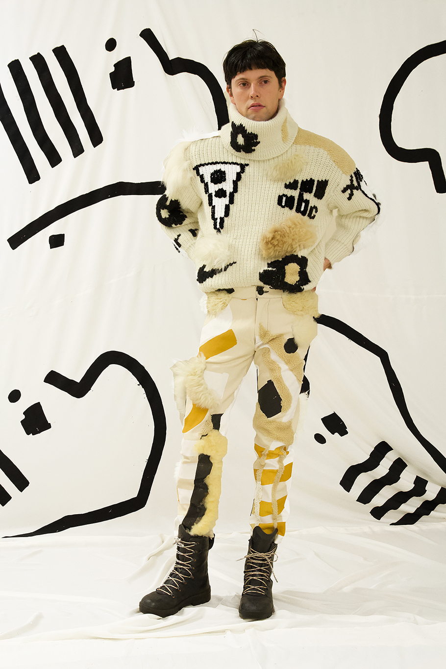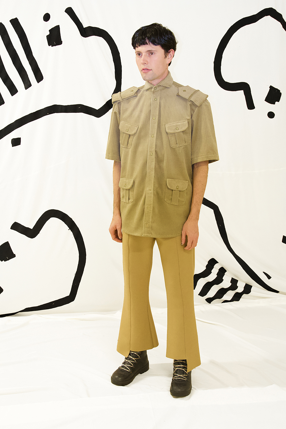 Diese Kollektion ist inspiriert von historischer Tarnkultur, Performativität, Method Acting, Nation Building, Flagology, der obsessiven Ehrfurcht der modernen Gesellschaft vor Logos und der Streetfashion des 20. Jahrhunderts. Uralte Tarntechniken für Krieger, die Pracht und die Haltung militärischer Uniformen stehen der Volkskultur gegenüber.