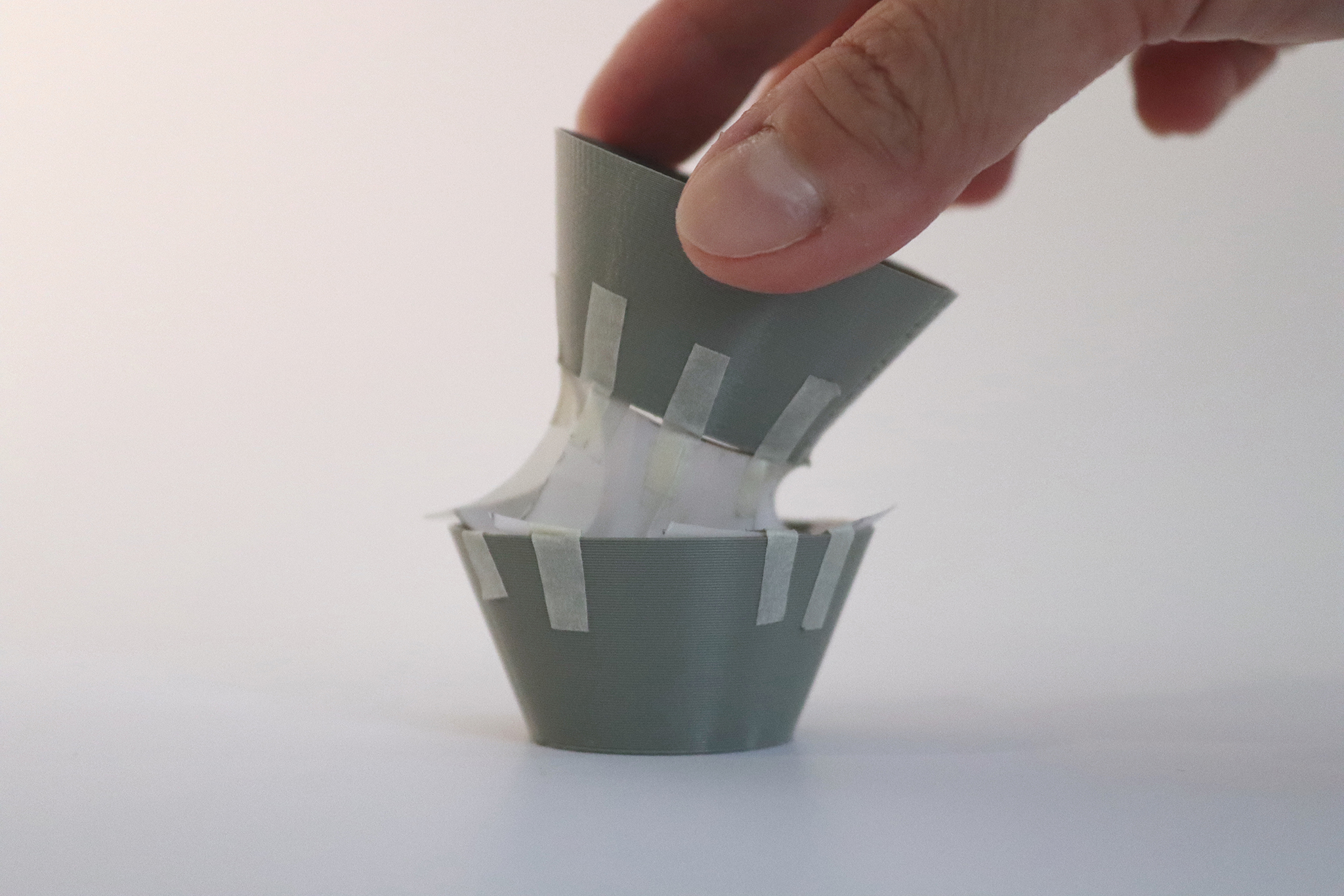 Im Alltag sind wir gewohnt Einstellungen nur durch einen Knopfdruck zu steuern. Fasziniert von Licht und seiner Wahrnehmung habe ich in meinem Projekt das Semesterthema „Bewegung“ auf die Steuerung der Helligkeit einer Leuchte angewandt. Der Nutzer wird zu einer Bewegung animiert, um die Leuchte bedienen zu können. Durch Stauchen, Strecken und Verformen wird die notwendige Lichtmenge angepasst und die Richtung der Beleuchtung verändert.