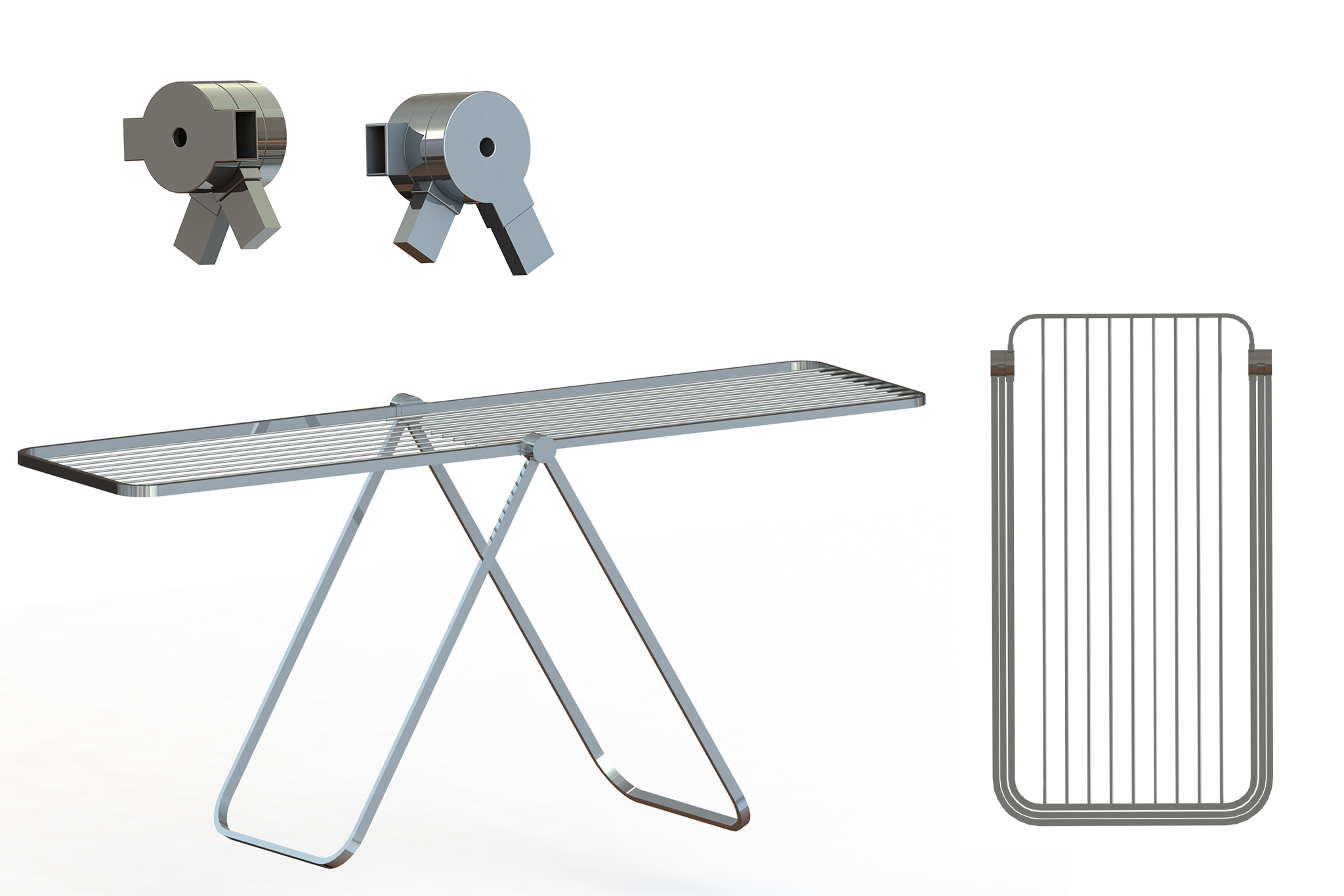 Der Wäscheständer. Jeder kennt ihn. Die meisten nutzen ihn. Die wenigsten mögen ihn. Selten praktisch, nicht wirklich ästhetisch. Funktional gestaltet, steht er wohl oder über als unliebsames Objekt in unseren Wohnungen – mit oder auch ohne nasse Wäsche. DRY ändert das. DRY ist ein praktischer und ästhetisch ansprechender Wäscheständer. Das Monogelenk – inspiriert von Giancarlo Pirettis Stuhl Plia – ermöglicht ein einfaches Auf- und Eindrehen. Die Mechanik innerhalb des Gelenks arretiert die Beine sowie die Auflagefläche des Ständers ohne zusätzliche Hilfe. Die Auflagefläche lässt sich auf eine Länge von 160cm ausziehen. So finden auch ausladenden Textilien, wie Bettbezüge ausreichend Platz. Das Design stellt, wie bei klassischen Entwürfen die Funktionalität in den Mittelpunkt und referenziert auch hier den Plia-Stuhl und dessen Chrom-Finish. Somit ist DRY nicht nur ein formschöner Alltagshelfer, sondern auch eine Hommage an das italienische Design der 70er Jahre.