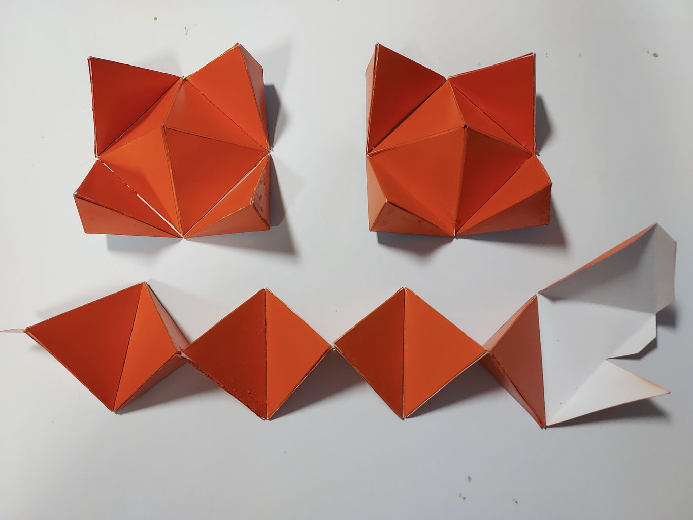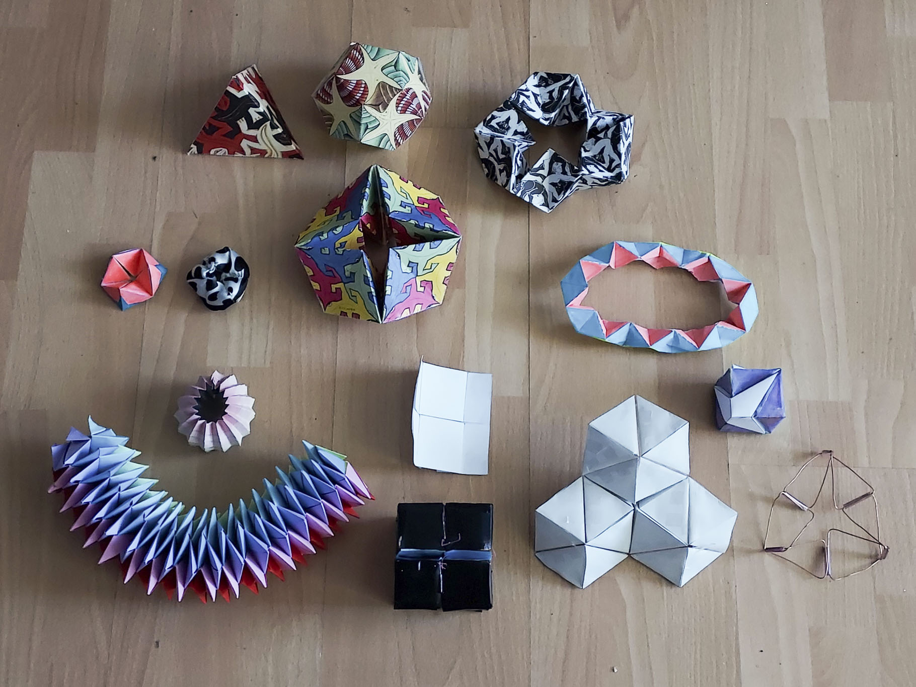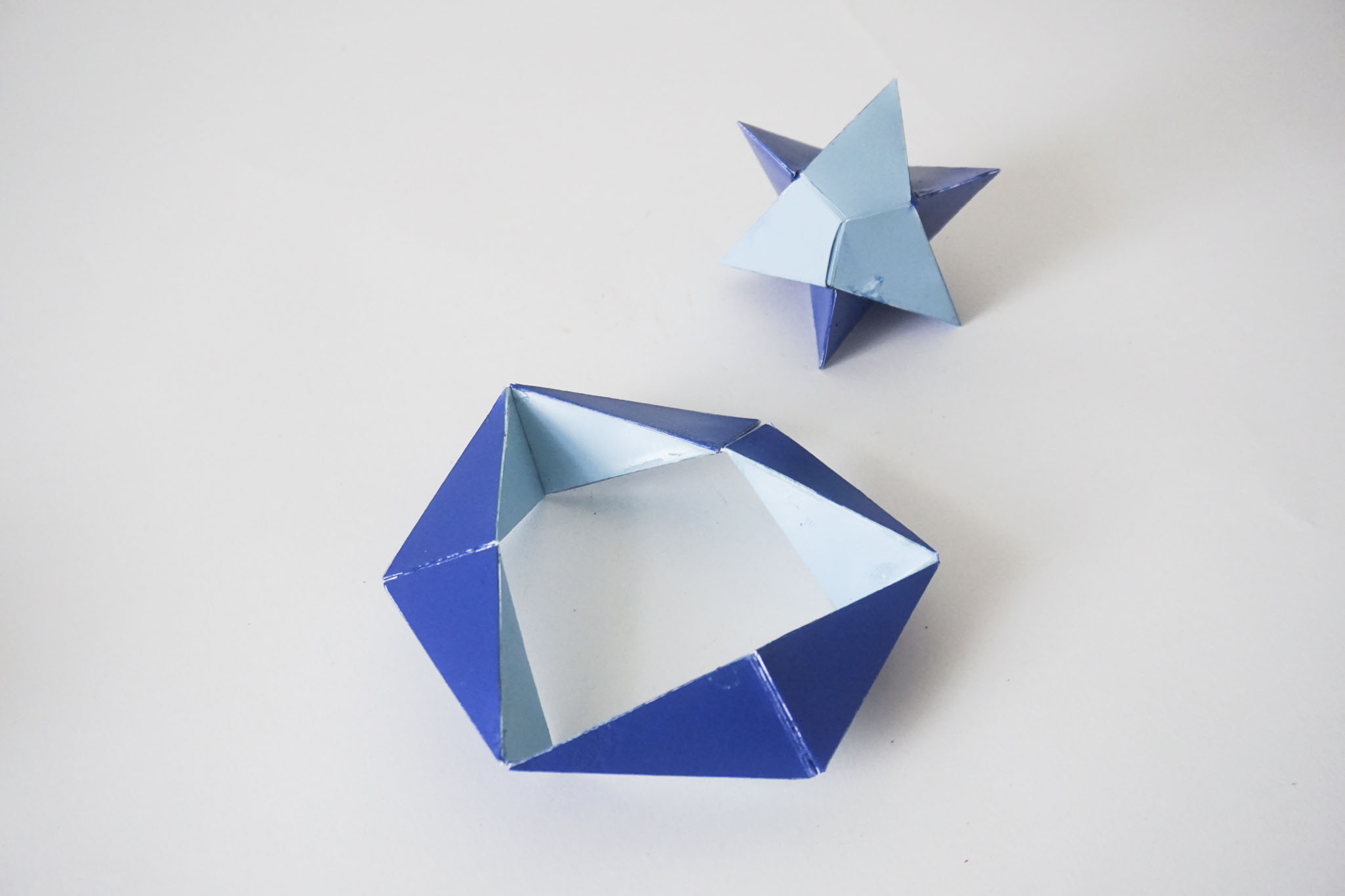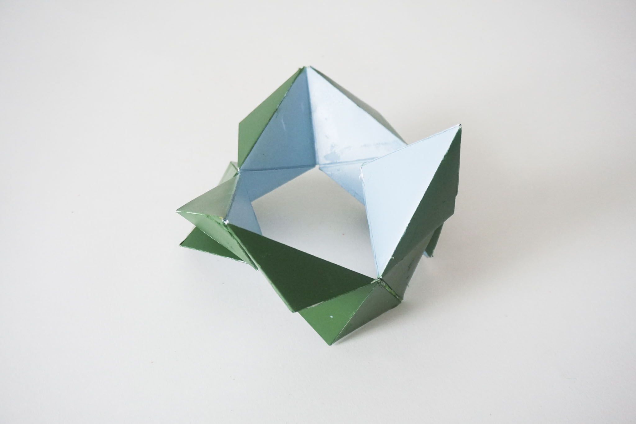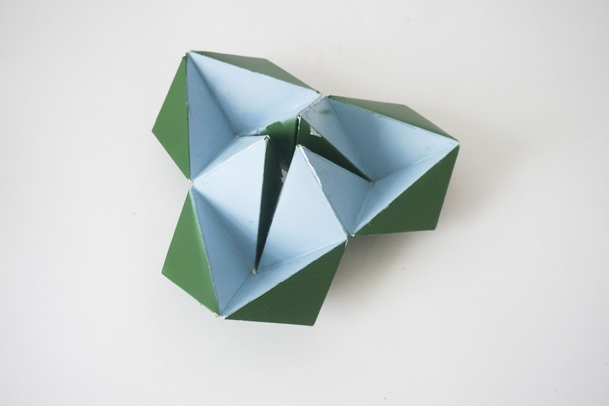 In diesem Projekt soll ein kleiner Einblick in einen spezifischen Bereich der Umstülpung gegeben werden an welchem sich jedoch viele allgemeine Strukturen umstülpbarer Körper erkennen lassen. Die entwickelten Faltbögen werden für interessierte Gestalter gerne auf Nachfrage bereitgestellt und sind als Einladung gedacht um selber zu stülpen, zu verstehen und die bestehenden Systeme weiterzuentwickeln.