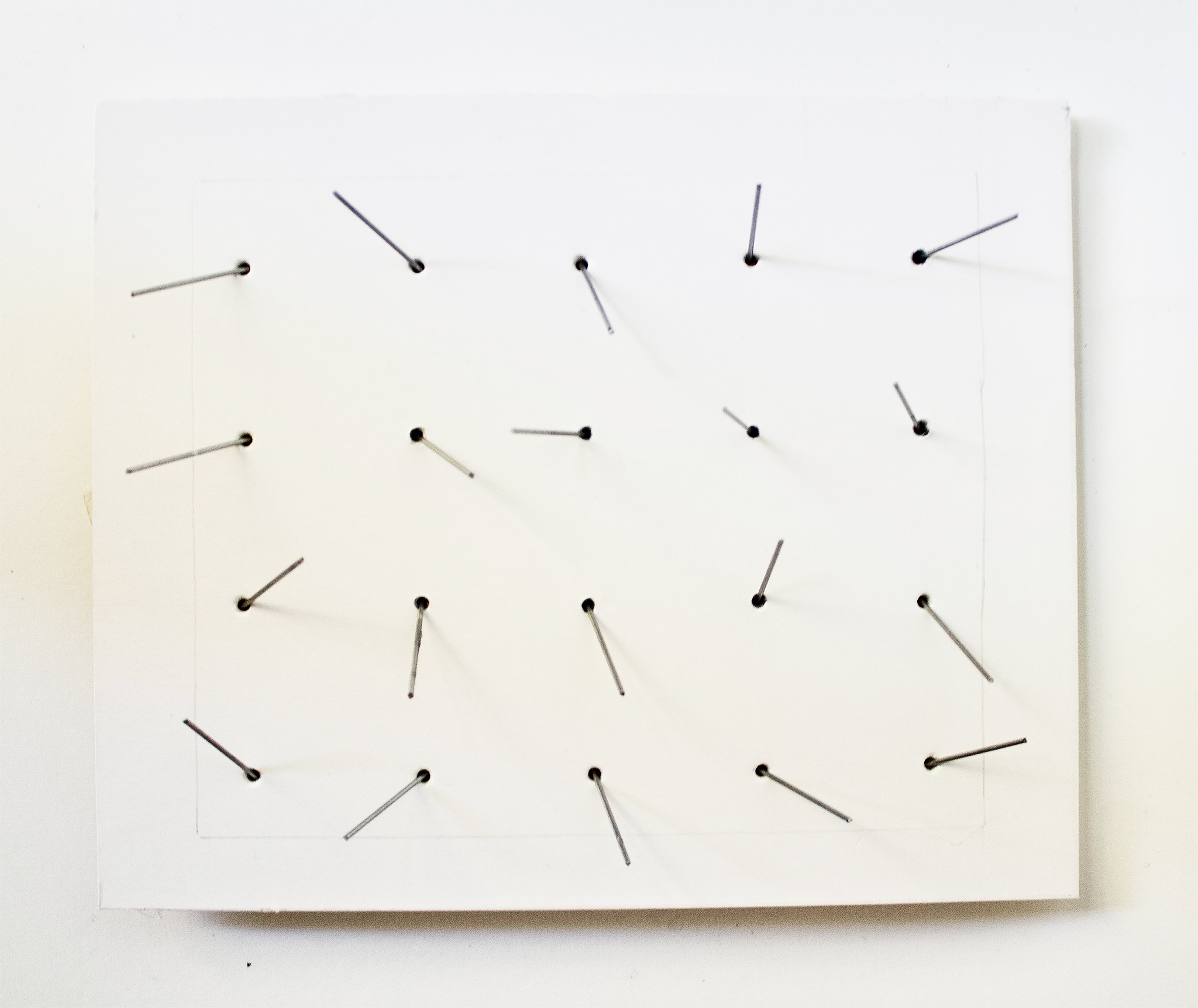 The starting question was how the geometry of the surface could have a connection with a mechanism to create this change. The answer came with magnets, which possess many interesting qualities. In this project, the magnet’s ability to act as an invisible force when in proximity of iron without the need for contact, is further explored. My interaction tool is a magnetic stick, composed of magnets stacked together, increasing their force. The surface is flat and smooth when the magnet stick is away; as it nears, the steel-wire pieces pop up. Thus, what at first seems like a white, smooth square, changes through the interaction with the magnet.