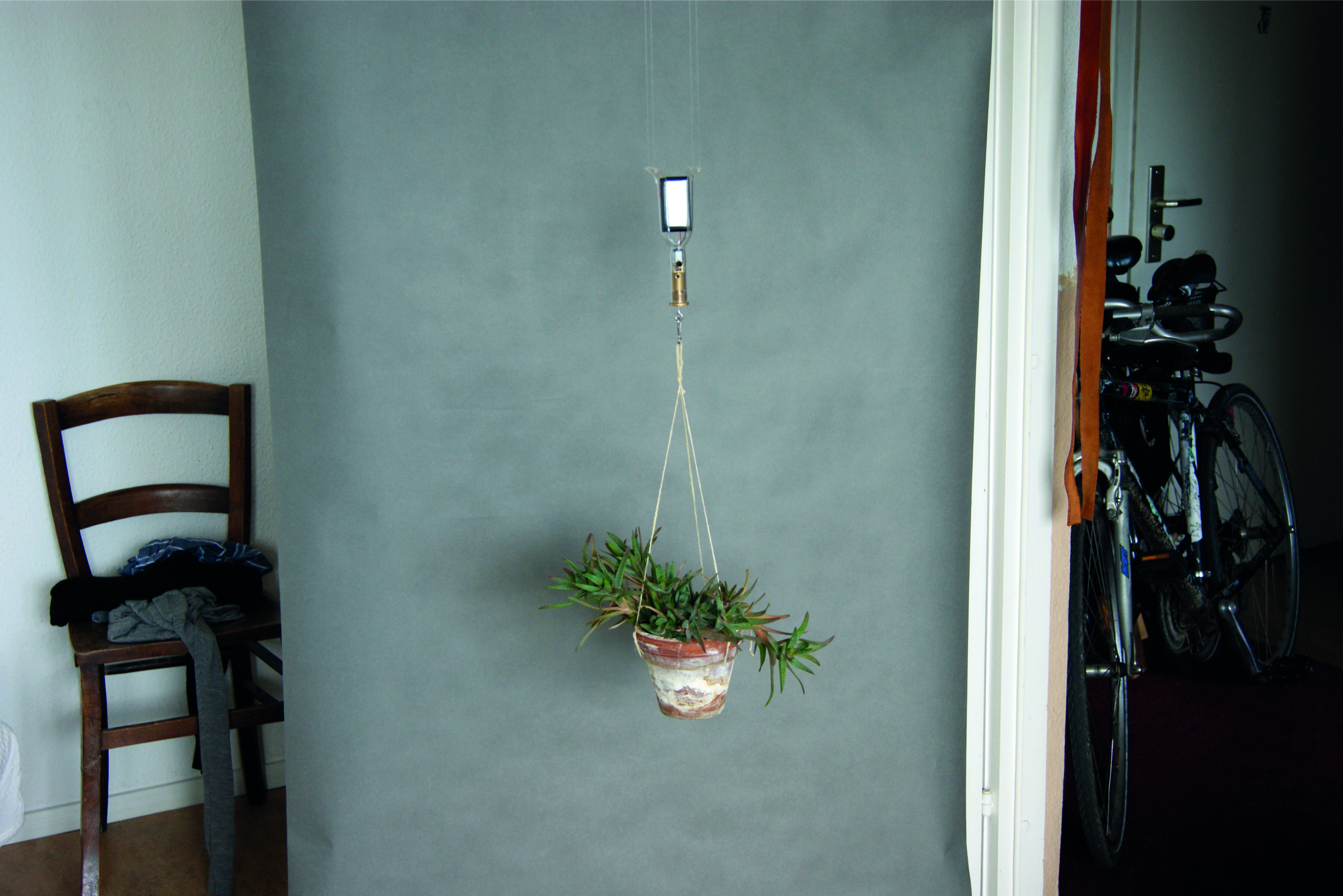 Photon 360 strives to solve this problem, by spinning the plant. Slowly and without a sound, a solar powered gear motor is spinning the hanging plant, so it doesn’t have to grow crooked anymore.