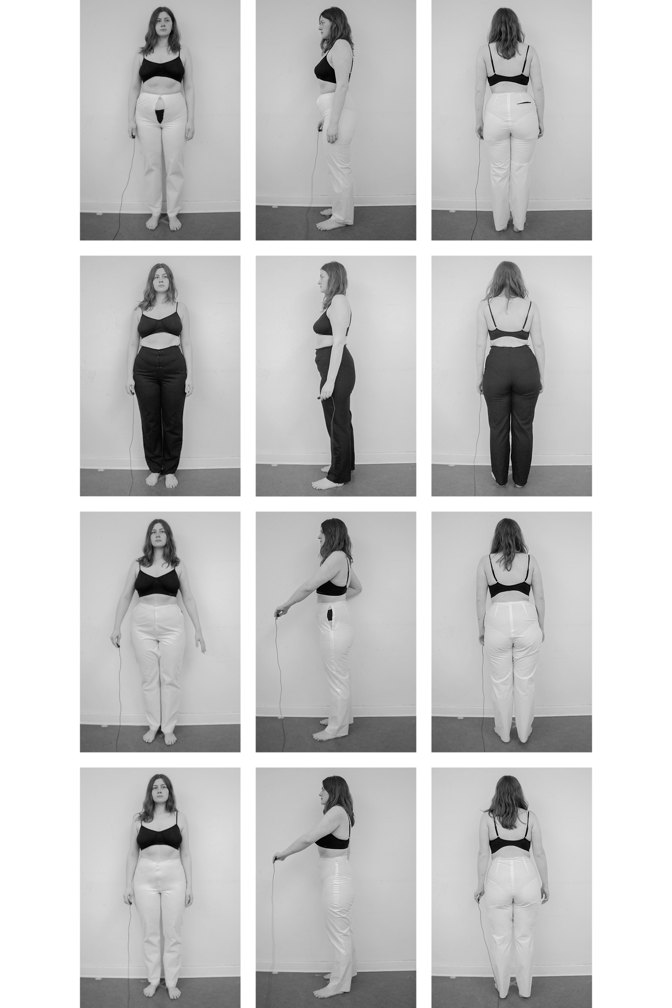 In meiner Kollektion beschäftige ich mich mit den formal-ästhetischen Qualitäten, die nur ein realer Körper besitzen kann. Mein Körper soll dabei als Stellvertreter für alle anderen realen Körper verstanden werden, die sich nur darin gleichen, dass sie nicht gleich sind.