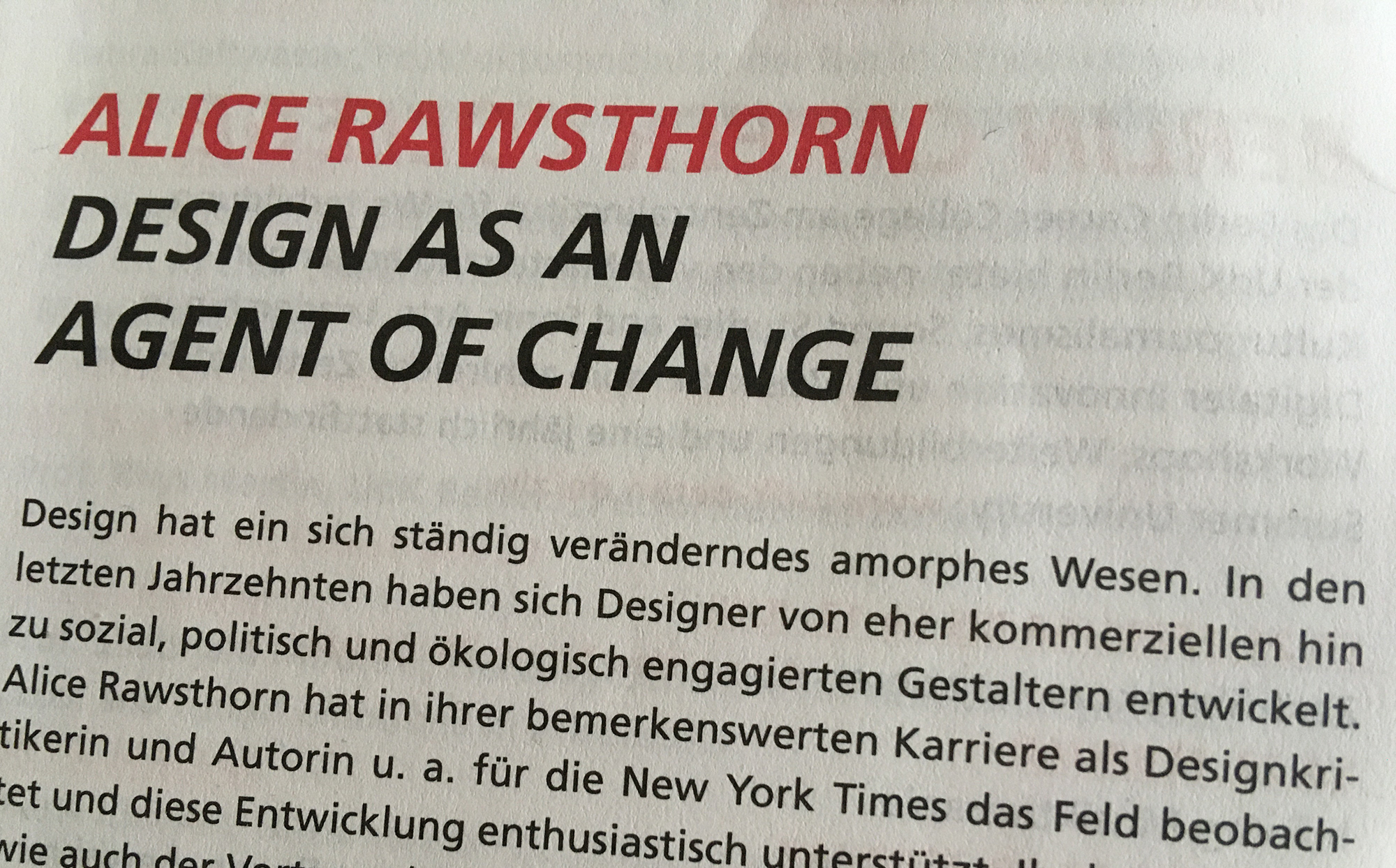 On 13 October 2019 Alice Rawsthorn gave a talk at the Kunstgewerbemuseum in Berlin during the opening weekend of German Design Graduates. This UdK-talk was set up by Ineke Hans, first initiator of the German Design Graduates initiative.