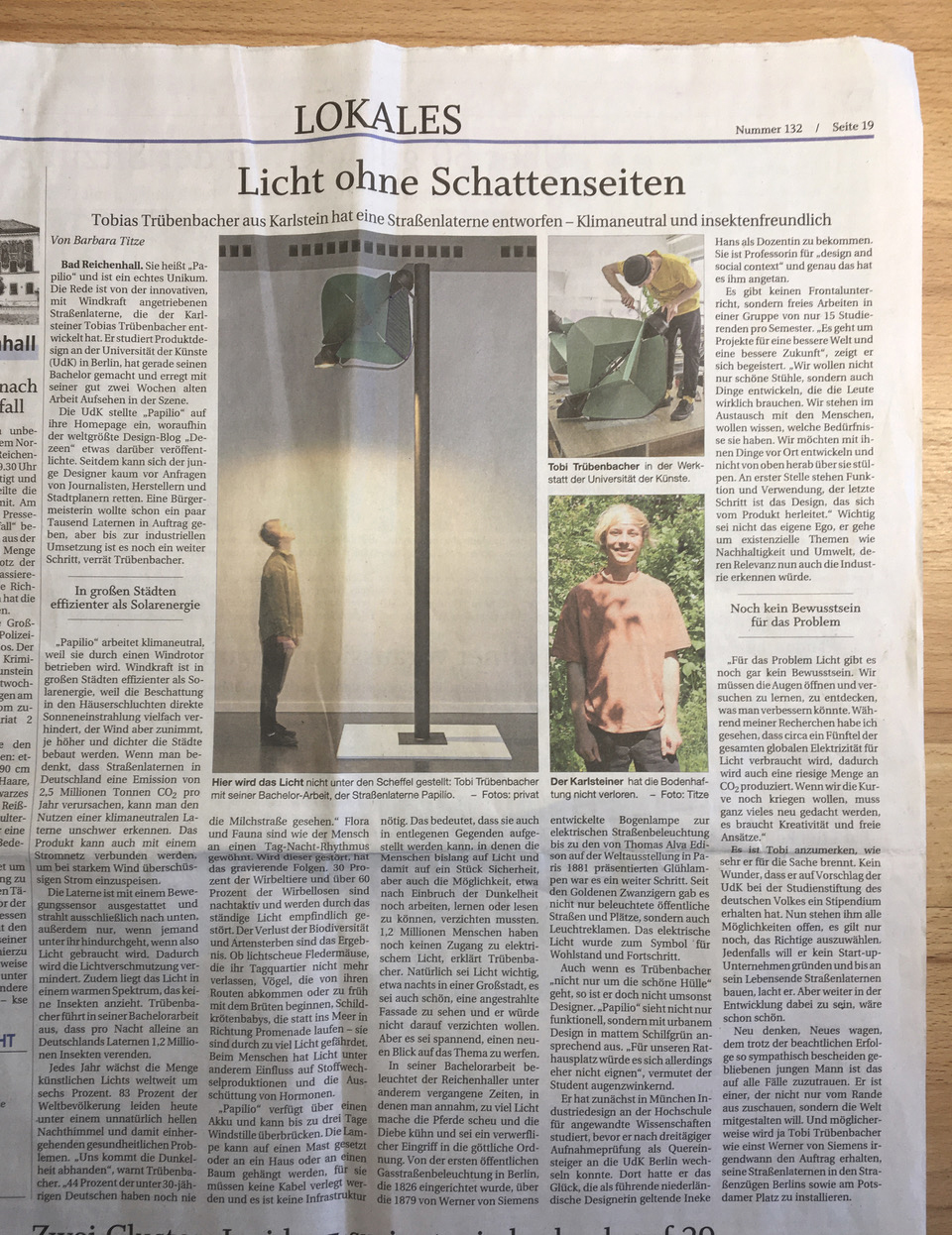 Journalist Barbara Titze had a conversation with Tobias Trübenbacher on his degreework Papilio and it was published in the Passer Neue Presse