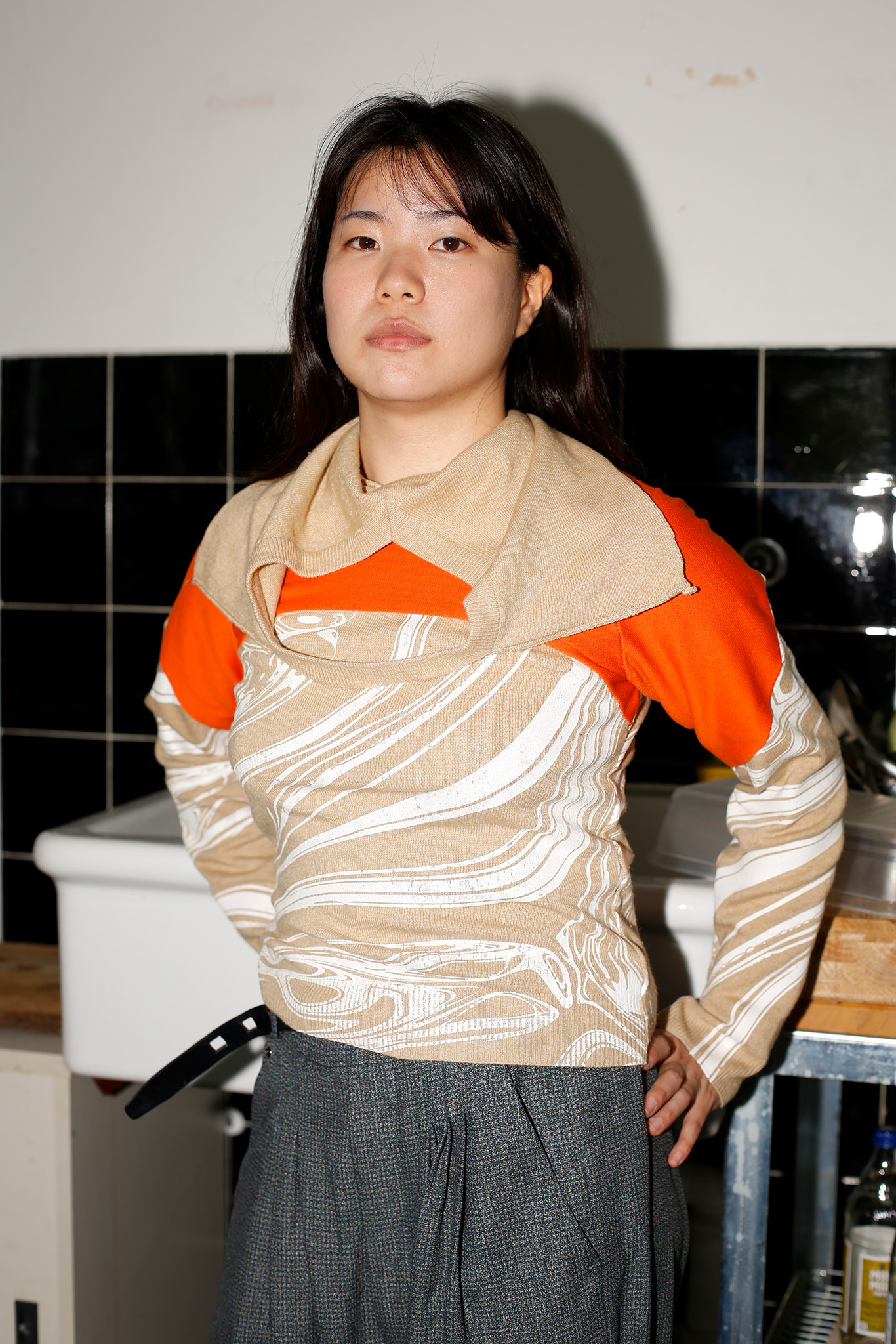 In the design process, I started off with the given material, making use of the formal potential of discarded garments and their features. How can I use what’s already there while still creating something relevant for today’s zeitgeist?