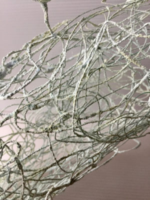 Calciumcarbonat und Magnesium versteinern das Strickwerk zu Aragonit.