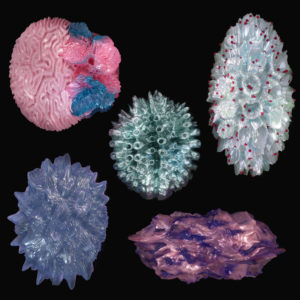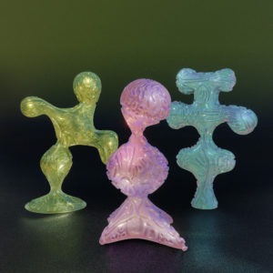 Weil die Bedeutung der Funktionalität naheliegend ist, geben wir der Fülle an Symbolen, die in unserem Unbewussten schlummert, wenig Aufmerksamkeit. Symbole entstehen aus vergangenen Ereignissen und sind geprägt durch Emotionen, die einst diese ursprünglichen Ereignisse in uns auslösten. Sie können aber auch einen kollektiven Ursprung haben und uns durch Gesellschaft, Kultur, Zeit und Raum infiltriert worden sein. So oder so ist ein Symbol nicht nur die Bedeutung eines Dings, sondern auch ein Gefühl, das uns erst einnimmt, und uns dann im Sog der Interpretationskraft davonträgt. Ist es einmal im Unbewussten manifestiert, müssen wir uns damit auseinandersetzen. Um uns selbst in unserem Dasein bewusst zu werden, müssen wir uns um das Verständnis symbolischer Bedeutung und deren Wirksamkeit bemühen. „The Elusiveness Of Objects And Worlds“ erforscht die archetypische Symbolik von Objekten, die durch eine Verschmelzung des digitalen und analogen Raums geboren sind. Zufall und eigene Interpretationskraft werden Instrumente zur Veranschaulichung der unbewussten Vorstellungskraft. Es entsteht eine intuitive Weise des Gestaltens, unbekannte Formen und damit eine Gruppe an phygitalen Artefakten, die Symbole aus beiden Welten mit sich bringen.