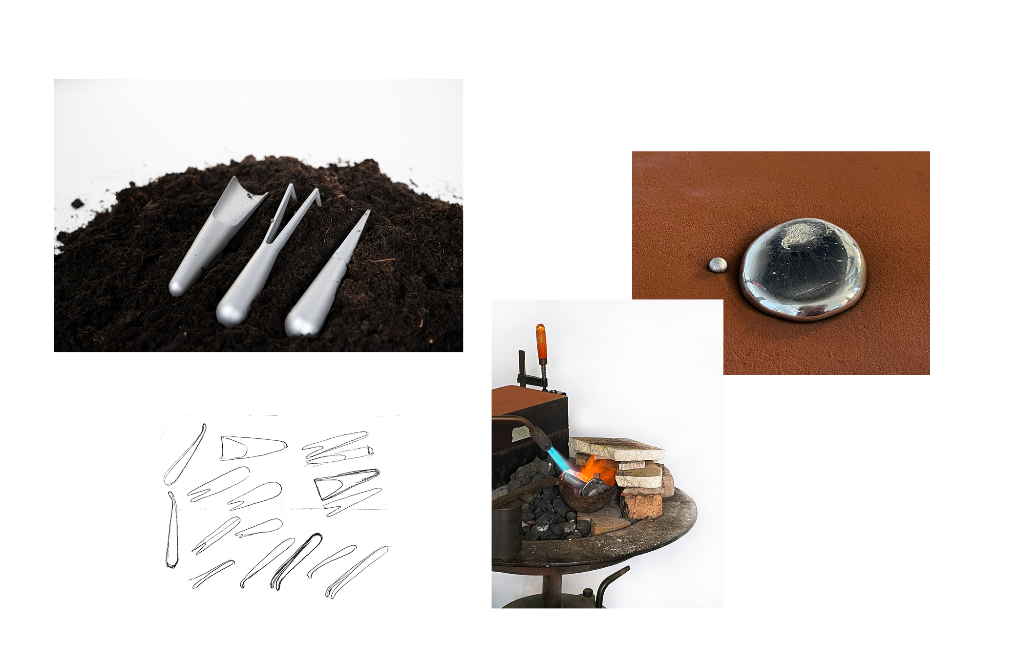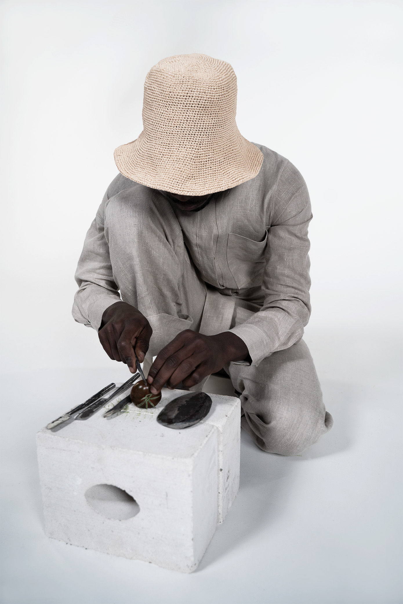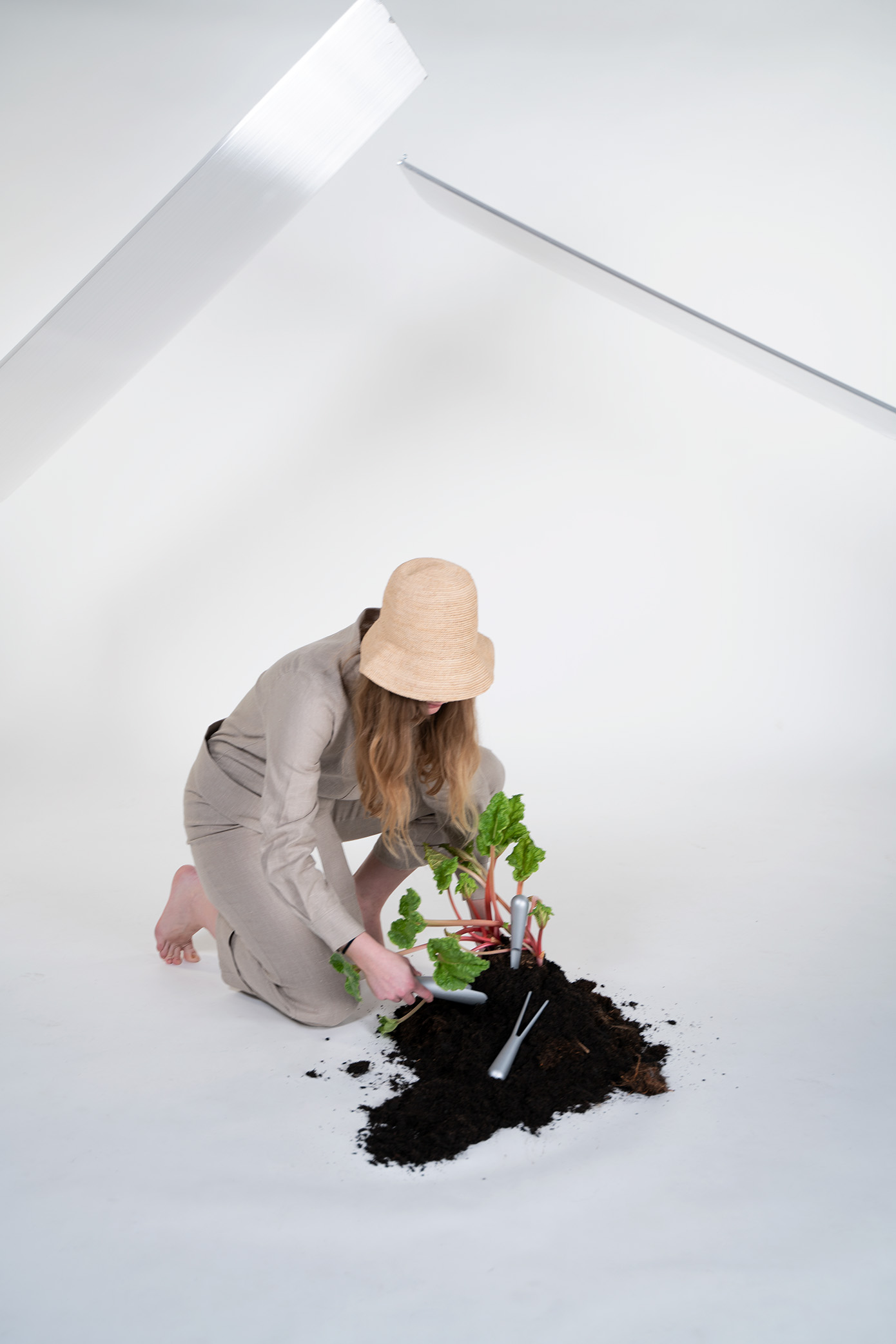 The <150km project represents this reality using various objects. The concept of <150km is transferred to the objects. All products are made from materials sourced in the vicinity of Berlin. Clothes made of linen and hats made of straw. Aesthetic gardening tools made from recycled aluminium to integrate gardening into daily life. Seed banks made of clay to enhance and individualise the seeds. Knives made of recycled steel that have adapted to the changing food culture. This reality is presented through the fictional characters Lilli and Musa, who live in Berlin in the year 2050. These products represent excerpts from their lives.