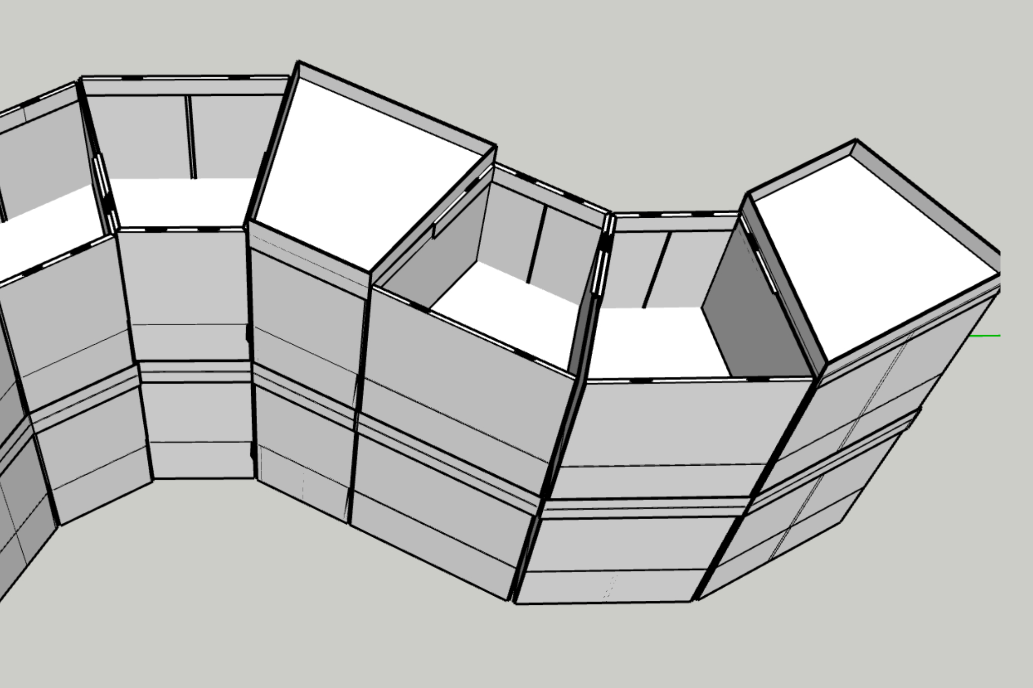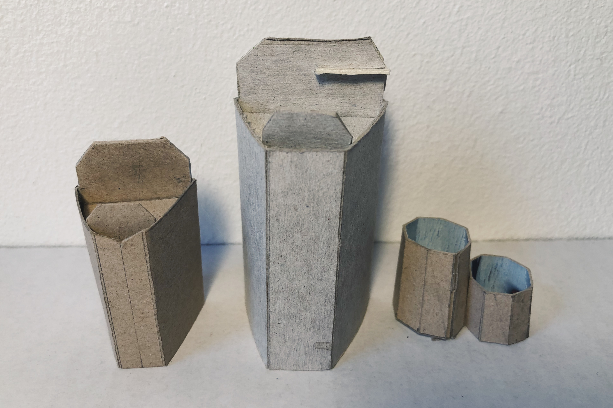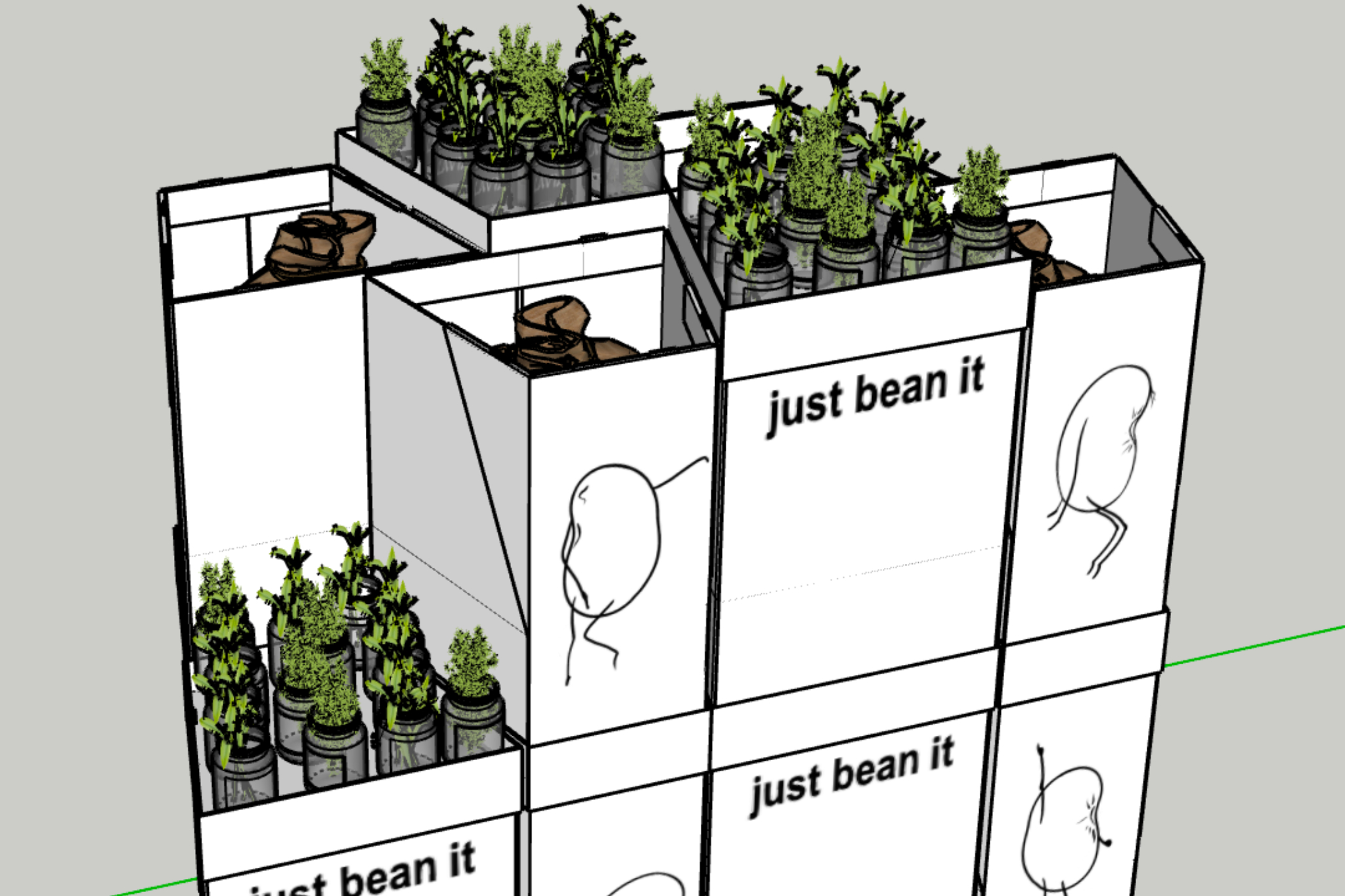 The supermarket display consists of two-sided fine corrugated board. The challenge was to generate the most plausible assembly method possible by folding and inserting only, since the entire product, the display including pulses, is to be delivered to the stores in a flat packs. In a single module is space for 30L leguminous. The package will be delivered on a standard EU pallet 120cm x 80cm.