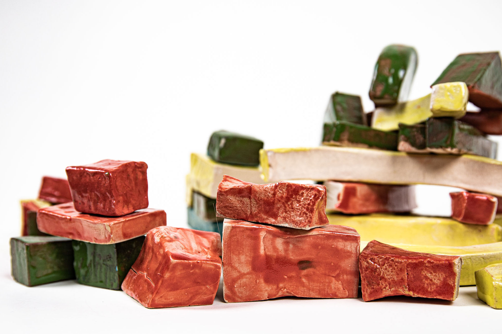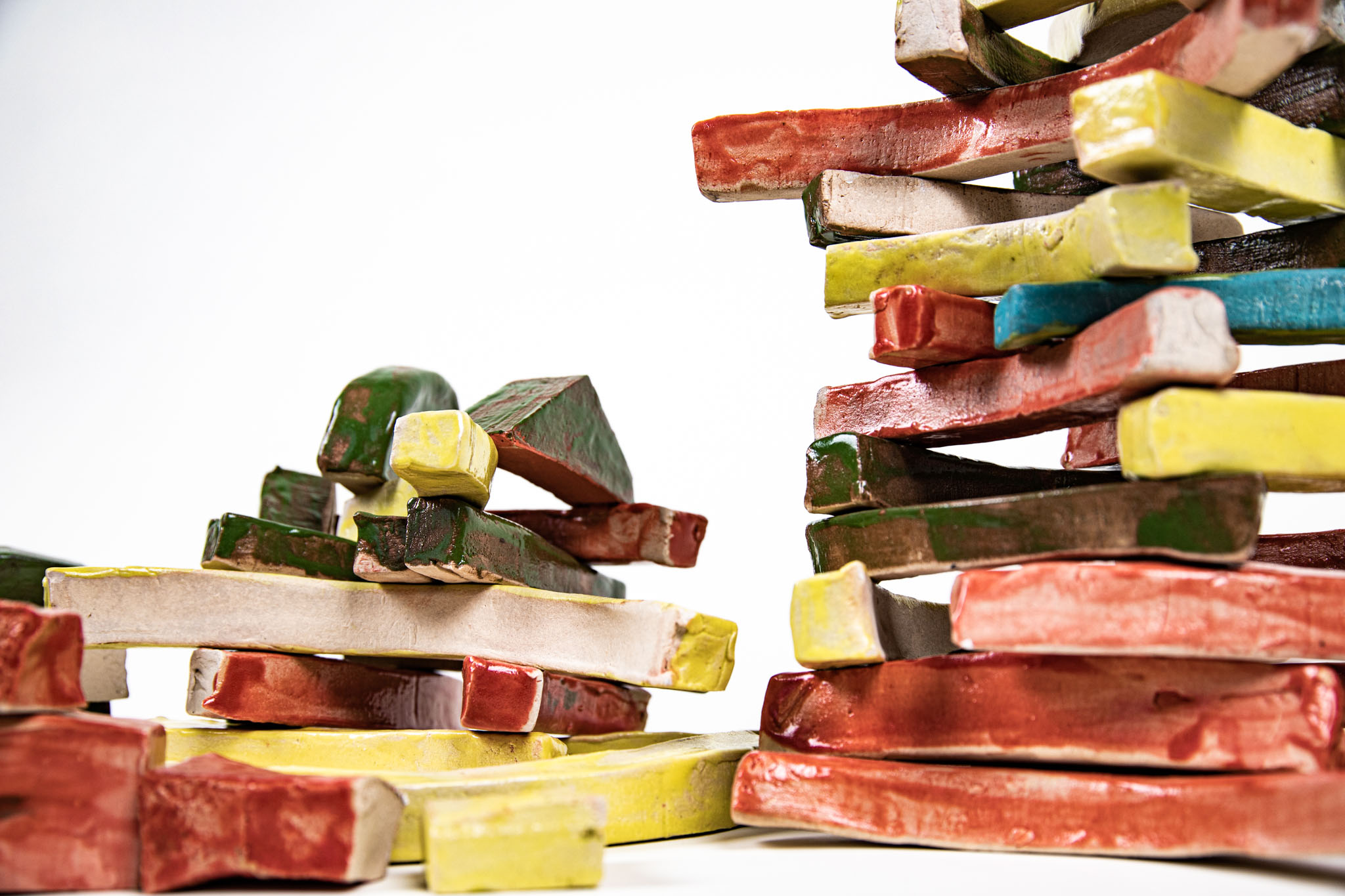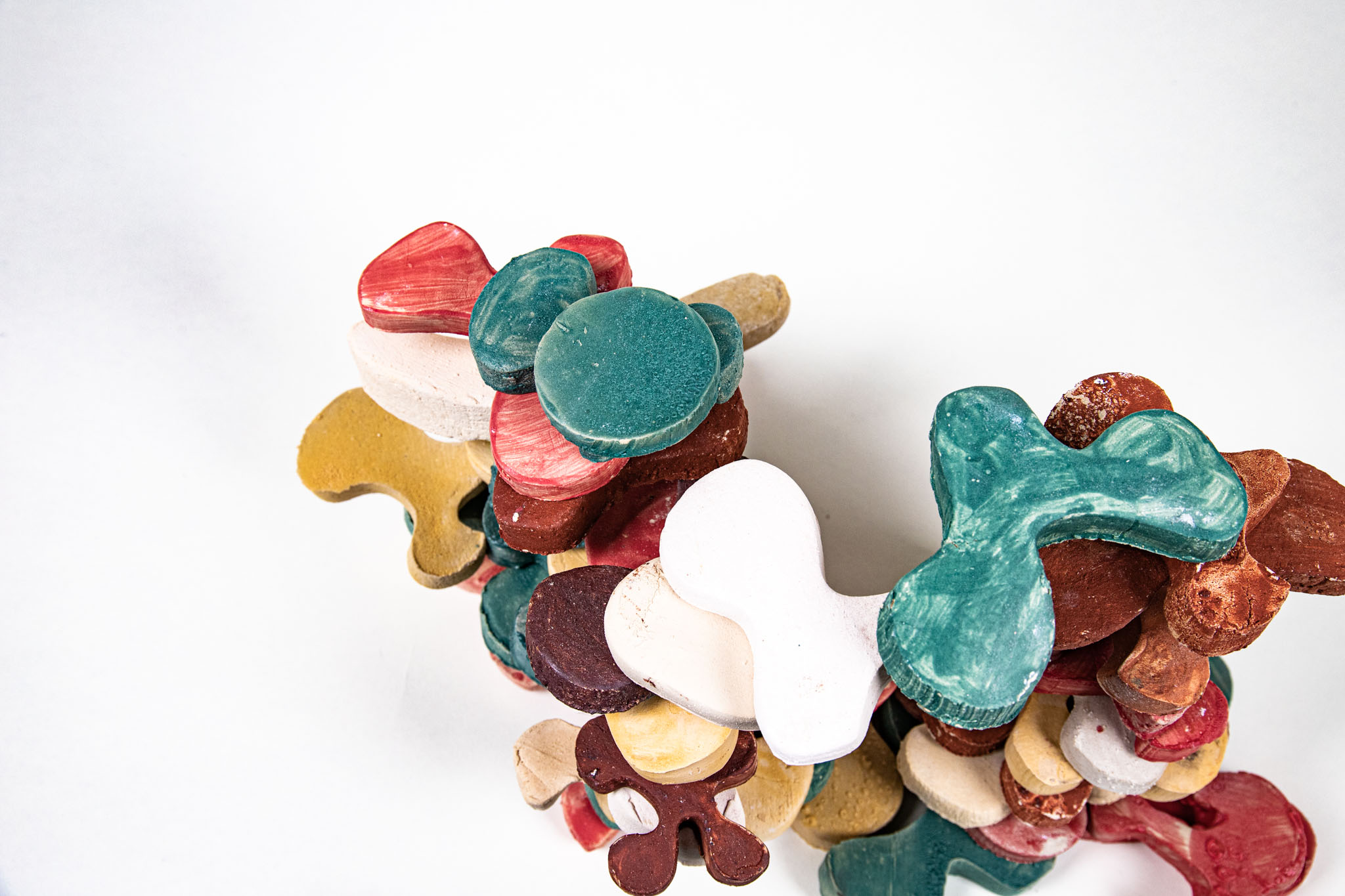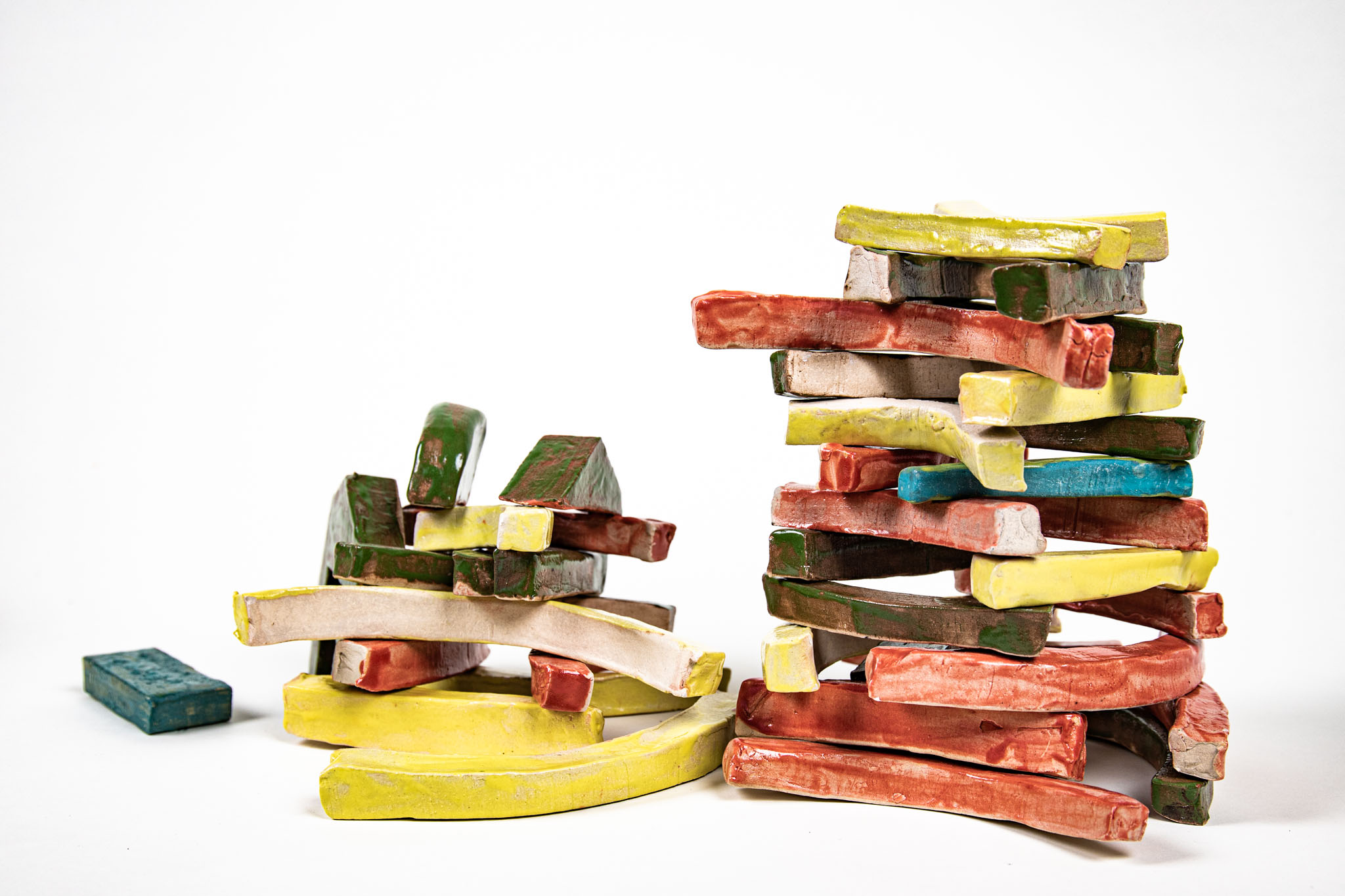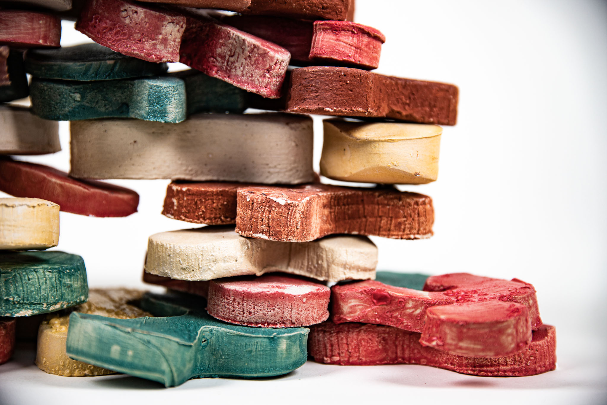 Flower Tower is a toy brick set for toddlers, whose lively shapes are designed to provide a different approach to the child’s imagination. Almost all children grew up and continue to grow up with rectangular building blocks: What can be easily stacked together to form small houses or towns, however, soon reaches its limits. It takes a lot of imagination to dissolve the architectural, cubic character – natural, organic shapes are difficult to reproduce with rectangular bodies. Flower Tower’s building blocks aim to fill this void and (if intentional) build a bridge. In their neutral but explicit shapes, everyone sees something different: sometimes a tree, sometimes an animal, sometimes an island in a broad sea.