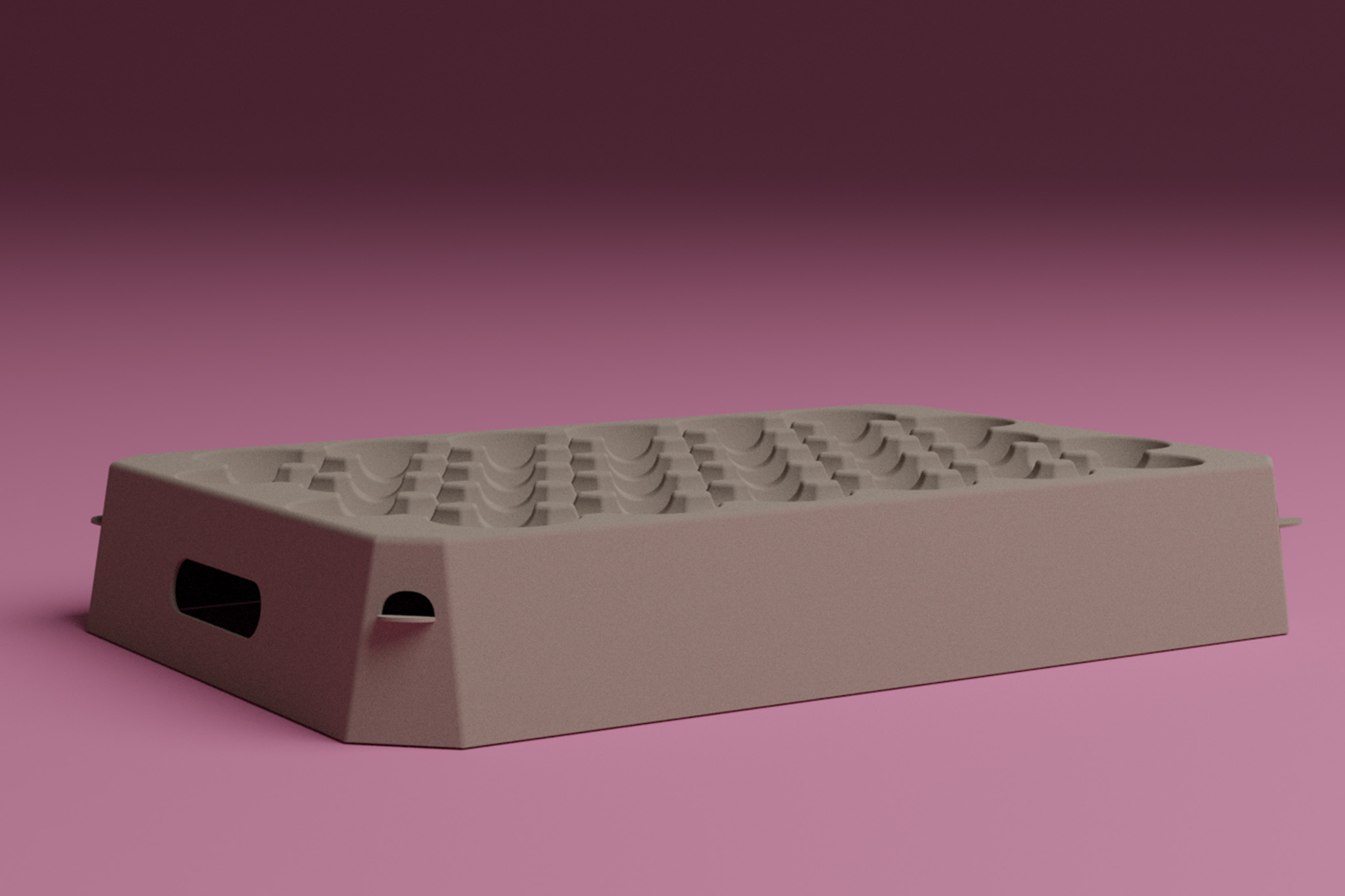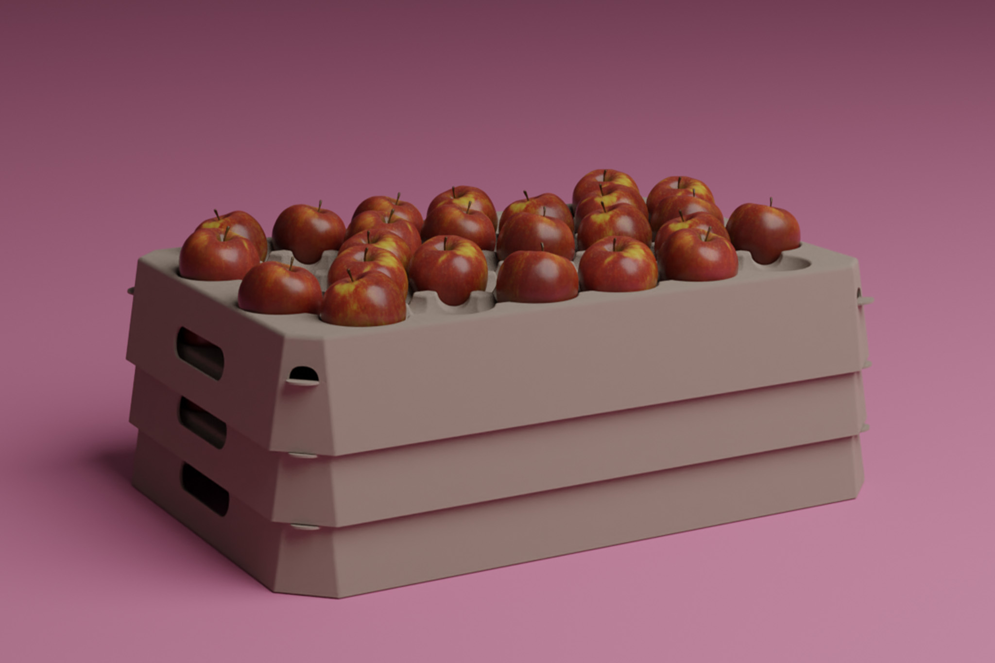 Every year about a third of all food gets thrown away. This is a huge loss of energy, water, agricultural areas, money and other valuable resources. Supermarkets and grocery stores play a huge role in this because they´re the second biggest food wasters after private households. Because of poor shelf management, consumer habits and the abundant amount of produce available, a lot of groceries land in the trash before they can be sold. Especially fruit and vegetables are at high risk to get wasted. The main problem is to keep fruits fresh and attractive looking because naturally they go bad fast. If it is possible to prolong the shelf life of fruits for even just one day up to 40% of fresh produce could be saved and sold. Immerfrisch offers a way to prolong the freshness of fruit and vegetables. The fruit trays are made from moulded pulp with the addition of zeolite. Zeolite is a mineral which occurs naturally or can be manufactured in the lab. It has the ability to adsorb ethylene, the gas responsible for the ripening process of fruits and vegetables. By binding the ethylene zeolite slows down the ripening process and fresh produce stays fresh longer. Immerfrisch is stackable to create a closed room for the produce and to ensure the best adsorption of ethylene and therefore the longest possible freshness and minimal food waste.