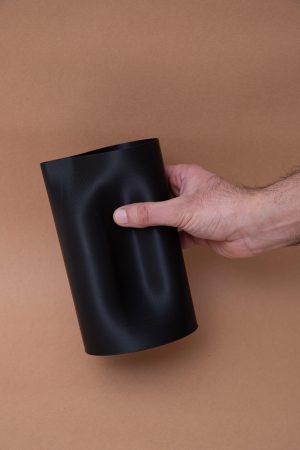 KAPPA entstand aus der Auseinandersetzung mit dem FDM-Druck. Die formale Ausprägung des Gefäßes wurde aus den Funktionsprinzipien des FDM-Druckers gewonnen. Form und herstellende Bewegung sind symbiotisch, sodass vollständig nutzbare Objekte in sehr kurzen Druckzeiten entstehen.