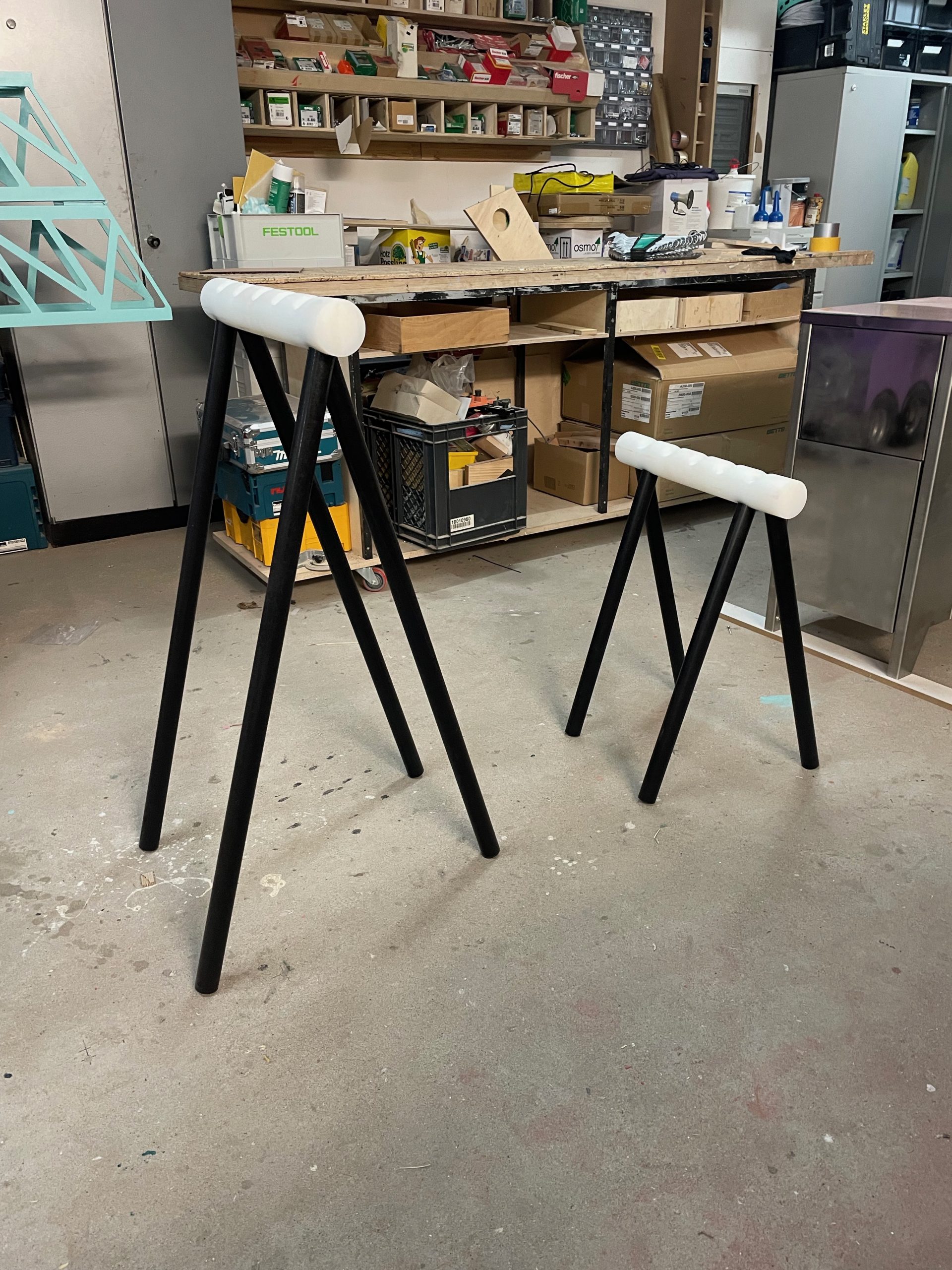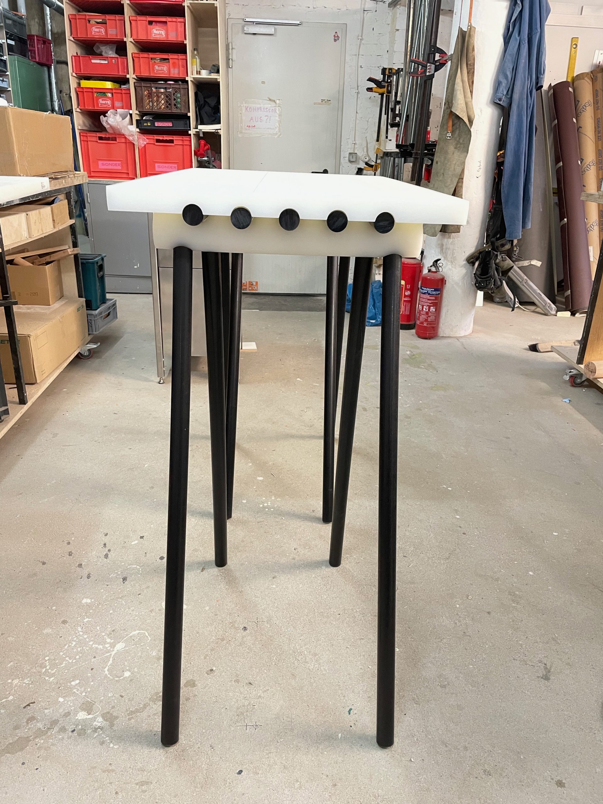Ich möchte mich mit meinem Entwurf an Menschen richten , welche sich in einer sich ständig veränderten Lebenssituation befinden, sogenannte „modern nomads. Sie leben in Städten, reisen viel und führen ein oft selbstständiges Leben und das meine ich auch in Bezug auf ihre Arbeitsverhältnisse. Für sie steht nicht der berufliche Erfolg im Fokus, sondern die gemeinsame Zeit mit anderen Menschen und ihre Verbindung zur Natur. Sie suchen nach ihren Wurzeln und einem Einklang mit der Umwelt. Ihr Erklärtes Ziel ist es ein in jeder hinsicht Bewusstes und nachhaltiges Leben zu führen. Die Idee meines Entwurfs soll eher als ein mögliches Prinzip Anklang finden. Durch die Niederkomplexität der verwendeten Technologie und deren Werkzeuge in Verbindung zu der leichten Zugänglichkeit von Materialien in Form von Halbzeugen. Dadurch kann man Lieferwege und Produktionskosten gering halten. Über dies hinaus kann ich mir vorstellen den Entwurf frei zur Verfügung zu stellen, damit sich jeder der ein solches 3 in 1 Objekt benötigt es sich selbst herstellen kann und die Vielseitigkeit der Anwendungen nutzen kann. Das 3 in 1 Objekt kann ein Steharbeitstisch sein, wenn man im Homeoffice arbeiten möchte. Ein Tisch, wenn man einen Tisch zum Essen oder Treffen auf dem Balkon oder in der Natur braucht. Oder eine Bank für drinnen und draußen. Jedes Objekt lässt sich unkompliziert umbauen. Das einzige Werkzeug was man braucht ist ein Hammer um die Beine aus den Steckverbindungen zu lösen, oder umgekehrt zu fixieren da es sich bei den Verbindungen im Holm um formschlüssige Steckverbindungen handelt. All das zusammen ermöglicht der Nutzer*in mit einem Bausatz drei Objekte nutzen zu können. Ich glaube dies trifft die Vorstellung von Menschen, welche einer spartanischen Lebensvorstellung folgen. Und sollten sich doch einmal die Lebensumstände ändern kann man den Bausatz einfach recyceln.