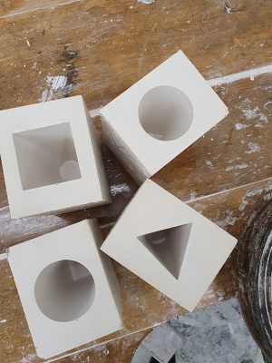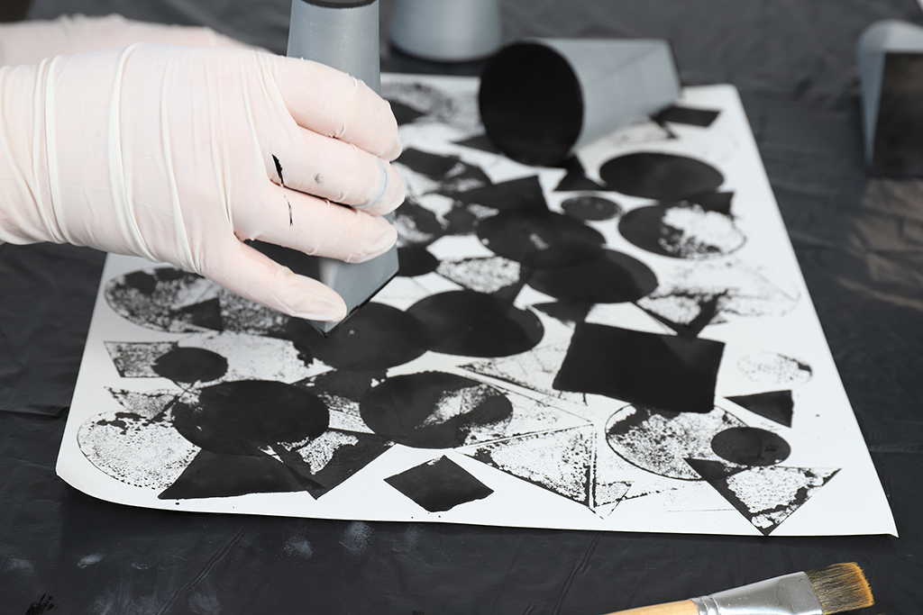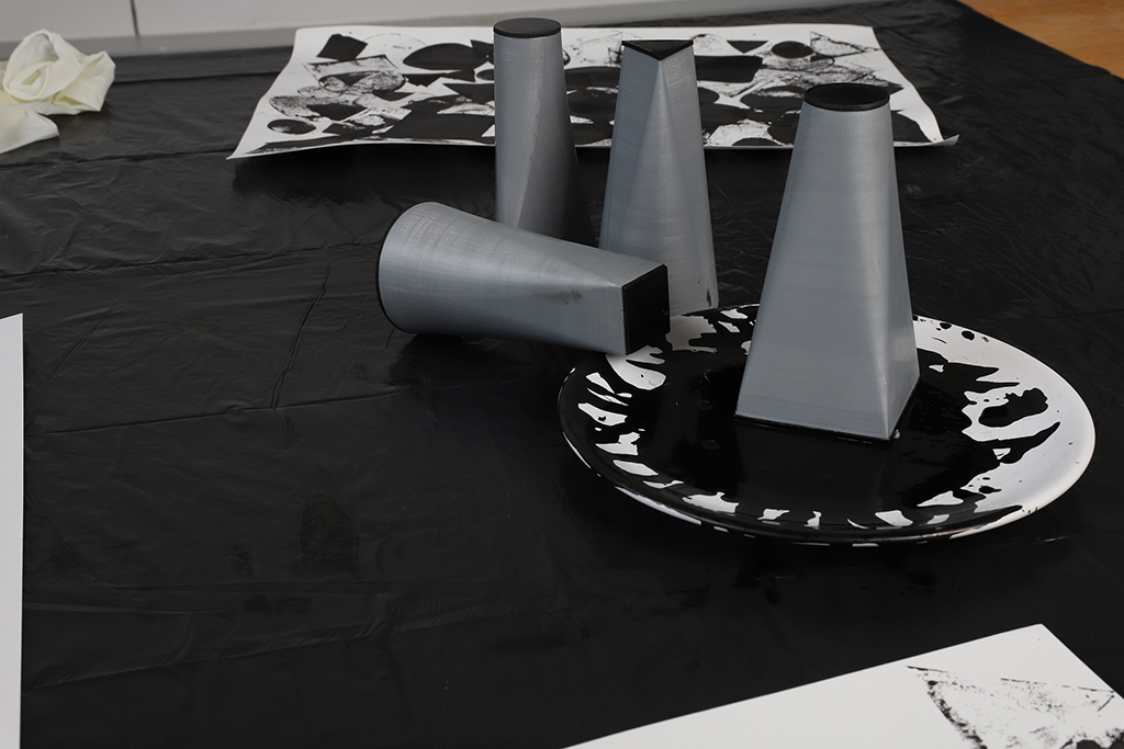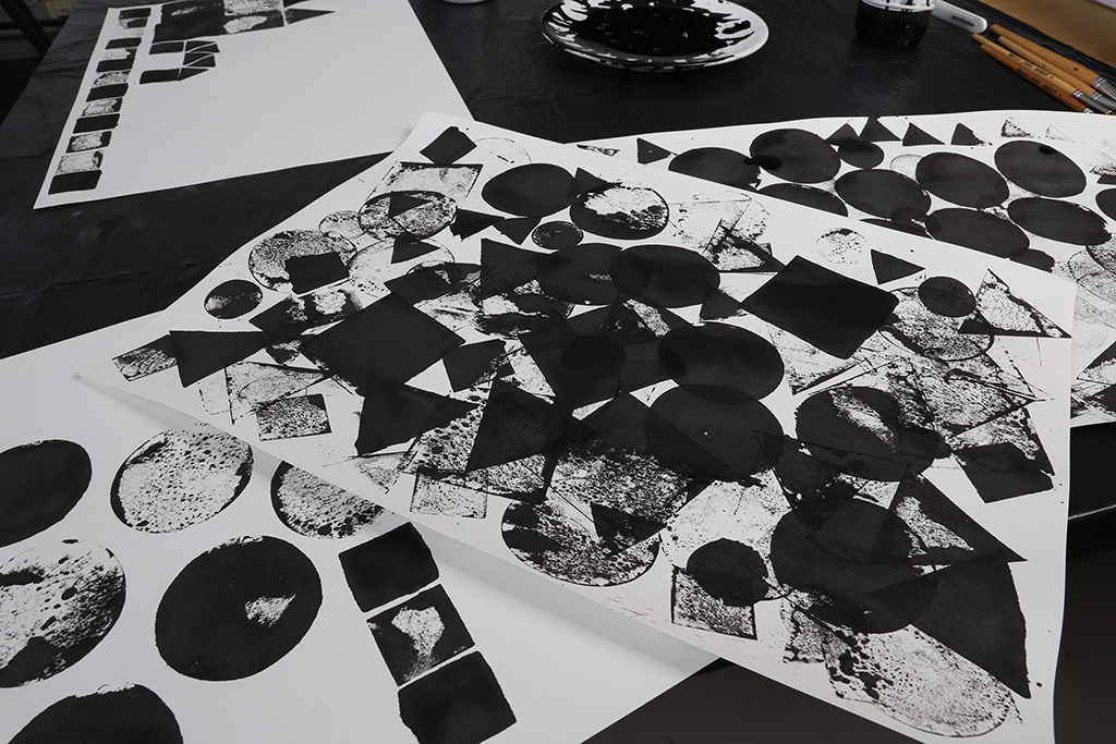 These three geometric shapes are not only the basis for building these elements but also the shapes of the prints that the stamp leaves on paper or fabric that can be used to build different formations using multiple materials.