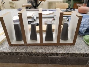 Die Ausführung war auf vier Stempel beschränkt, die auf drei geometrischen Grundformen basierten: dem Quadrat, dem Dreieck und dem Kreis. Diese drei geometrischen Formen sind nicht nur die Grundlage für den Bau dieser Elemente, sondern auch die Formen der Abdrücke, die der Stempel auf Papier oder Stoff hinterlässt, die verwendet werden können, um verschiedene Formationen aus mehreren Materialien zu erstellen.