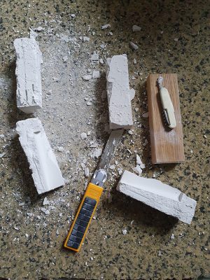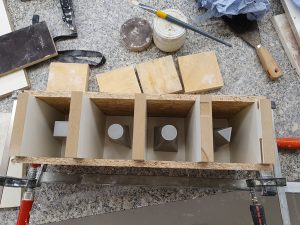 In the beginning, my goal was to achieve a set of elements that belong together through the function. That is why I searched for an element that can change its shape according to the function it performs, and here I chose the stamp as a tool that can be used in the field of visual arts. The stamp is related to the concept of power and decision making and this is what made it an even more interesting element to me as an art-making tool. The execution was limited to four pieces of stamps based on three basic geometric shapes: the square, the triangle, and the circle.