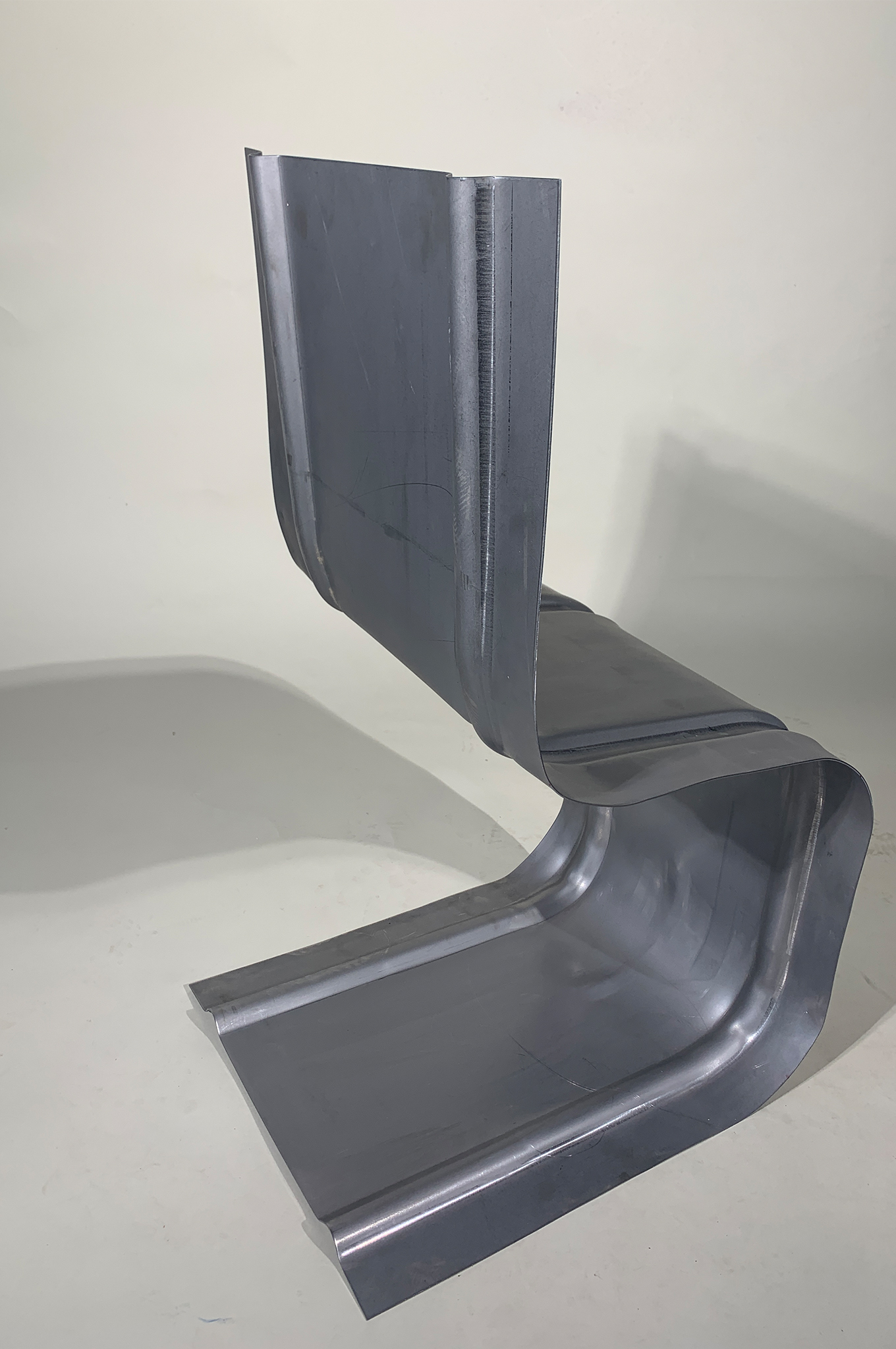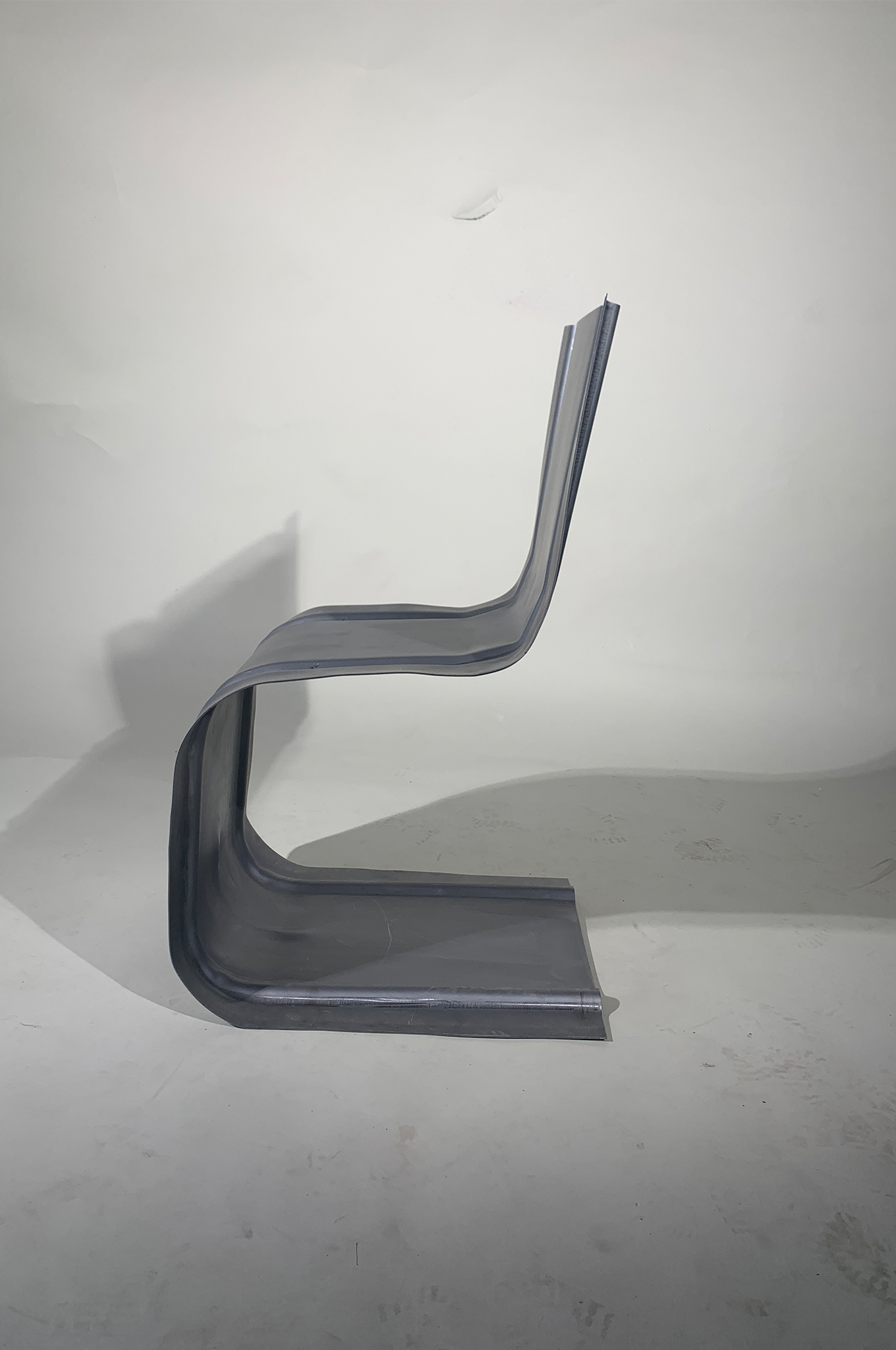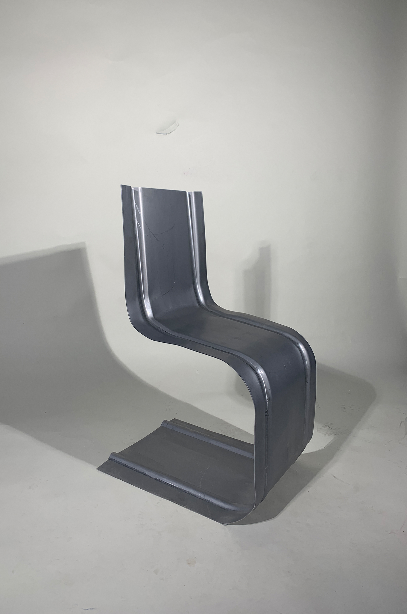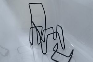 Somatic hypermutation describes the process of maturation of the antibodies of our immune system, the idea is to have the widest possible variation of antibodies to have the appropriate antibody for each virus. I have transferred this concept to humans, I use the human body as the BODY and different stools as the ANTIBODY. So also every BODY should have its matching ANTIBODY.  Another muation takes place in the semi-finished product, as a category for chairs I have chosen cantilever chairs, which are usually made of tubes. The idea was to get away from the tubes and towards the metal sheet. By beading the sheet steel, I was able to stiffen the sheet and then shape it. As a prototype, I built one of my three designed chairs. The ANTIBODY-1 was formed from a 1650mm x 460mm x 2mm steel sheet. With the help of four dies and two presses I was able to form the sheet metal as I designed it. The prototype was also an experiment, partly it met the expectations, partly not, due to some inaccuracies the chair can only support smaller and lighter persons. But that’s okay, because the ANTIBODIES always fit well only on one BODY.