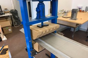 Die somatische Hypermutation beschreibt den Vorgang der Ausreifung der Antikörper unseres Immunssystems, die Idee ist eine möglichst breite Variation an Antikörpern zu haben um für jeden Virus den passenden Antikörper zu haben. Dieses Konzept habe ich auf den Menschen übertragen, ich benutze den menschlichen Körper als den KÖRPER und verschiedene Stühle als ANTIKÖRPER. So soll auch jeder KÖRPER seinen passenden ANTIKÖRPER haben. Eine weitere Muation findet in dem Halbzeug statt, als Kategorie für Stühle habe ich mir Freischwinger ausgesucht, die normalerweise aus Rohren bestehen. Die Idee war es weg zu kommen von den Rohren und hin zum Metallblech. Durch Sicken im Stahlblech konnte ich das Blech versteifen und anschließend in Form bringen. Als Prototypen habe ich einen meiner drei entworfenen Stühle gebaut. Aus einem 1650mm x 460mm x 2mm Stahlblech wurde der ANTIKÖRPER-1 geformt. Mithilfe von vier Matrizen und zwei Pressen konnte ich das Blech verformen, so wie ich es Entworfen hatte. Der Prototyp war auch ein Experiment, teils hat es die Erwartungen erfüllt, teils auch nicht, durch ein paar Ungenauigkeiten hält der Stuhl nur kleinere und leichtere Personen aus. Das ist aber auch in Ordnung, weil die ANTIKÖRPER ja auch immer nur auf einen KÖRPER gut passen.