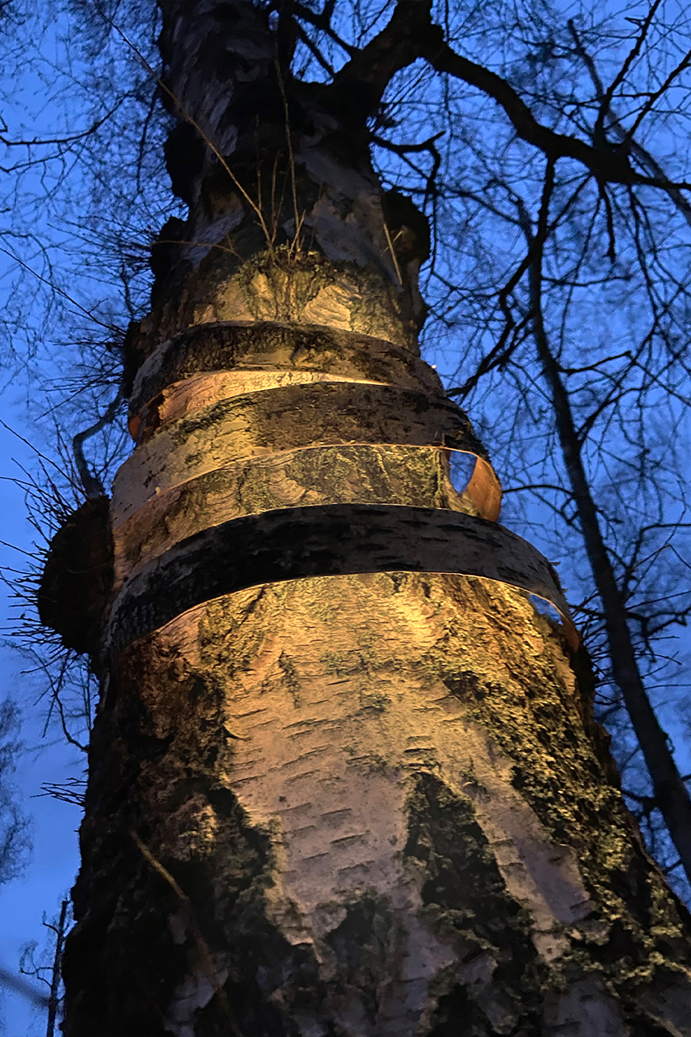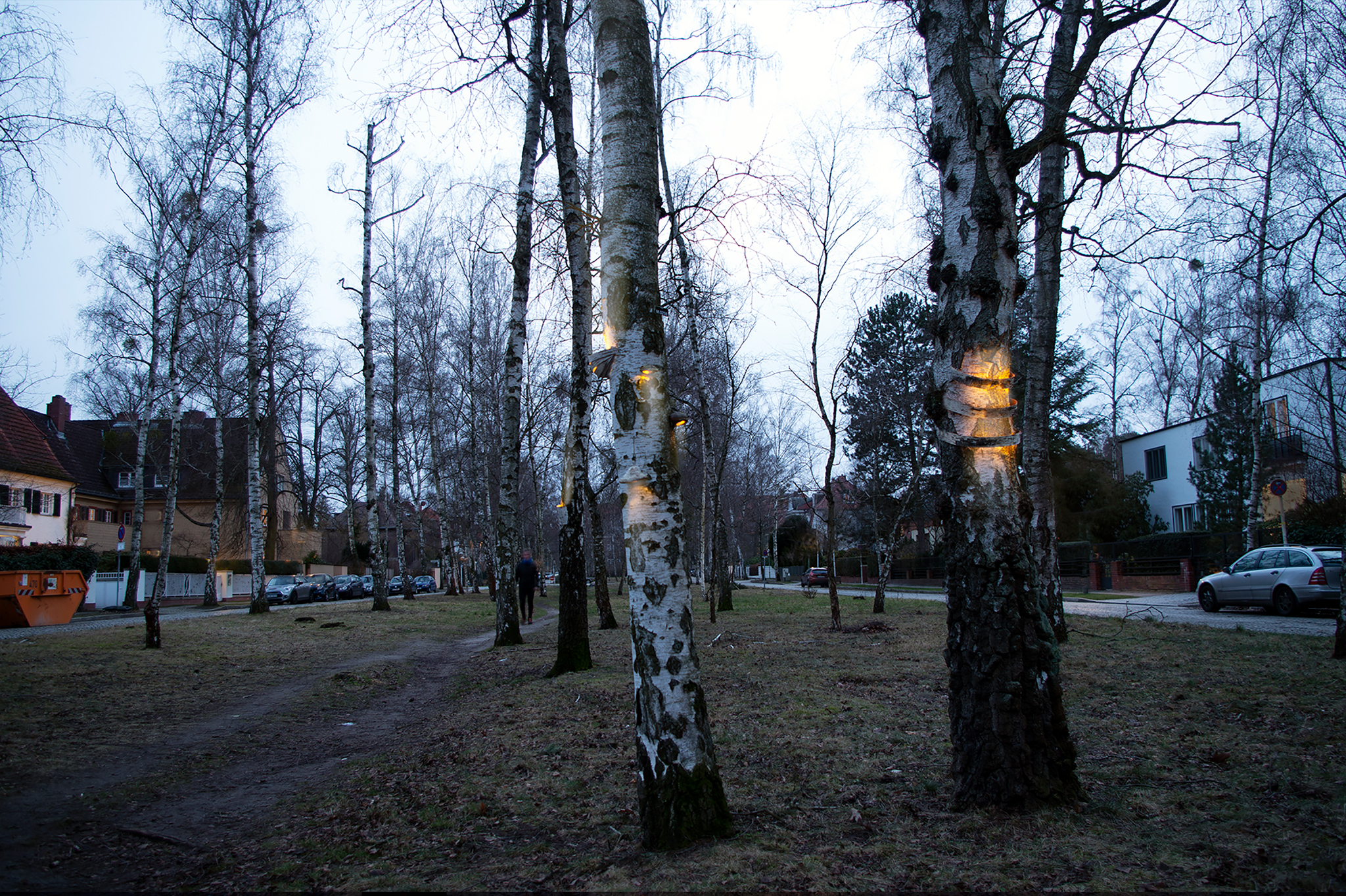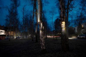 The white bark of birch trees makes them easily recognizable from a distance and is one of the main characteristics of the tree. However, what would happen if trees, due to mutation triggered by external circumstances, were able to absorb, store and release solar energy in their bark? The project titled “From White to Light” simulates a mutation in a utopian world in which birch trees begin to emit light stored in the trunk to the outside via overgrown fungi or peeling bark. Thus, a new interaction between nature and people can develop, especially in the city. In contrast to previous sources of light such as street lamps, this would be a natural and sustainable option.