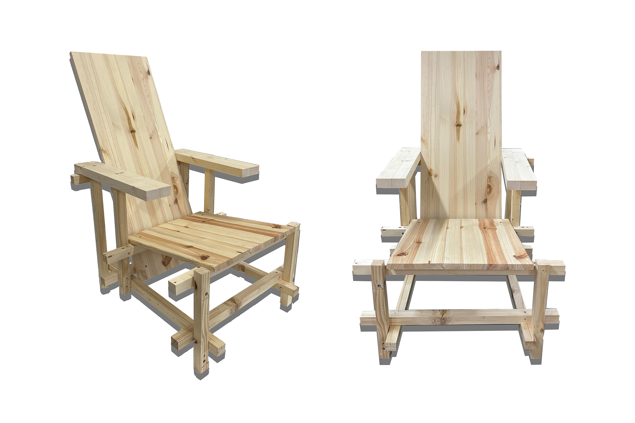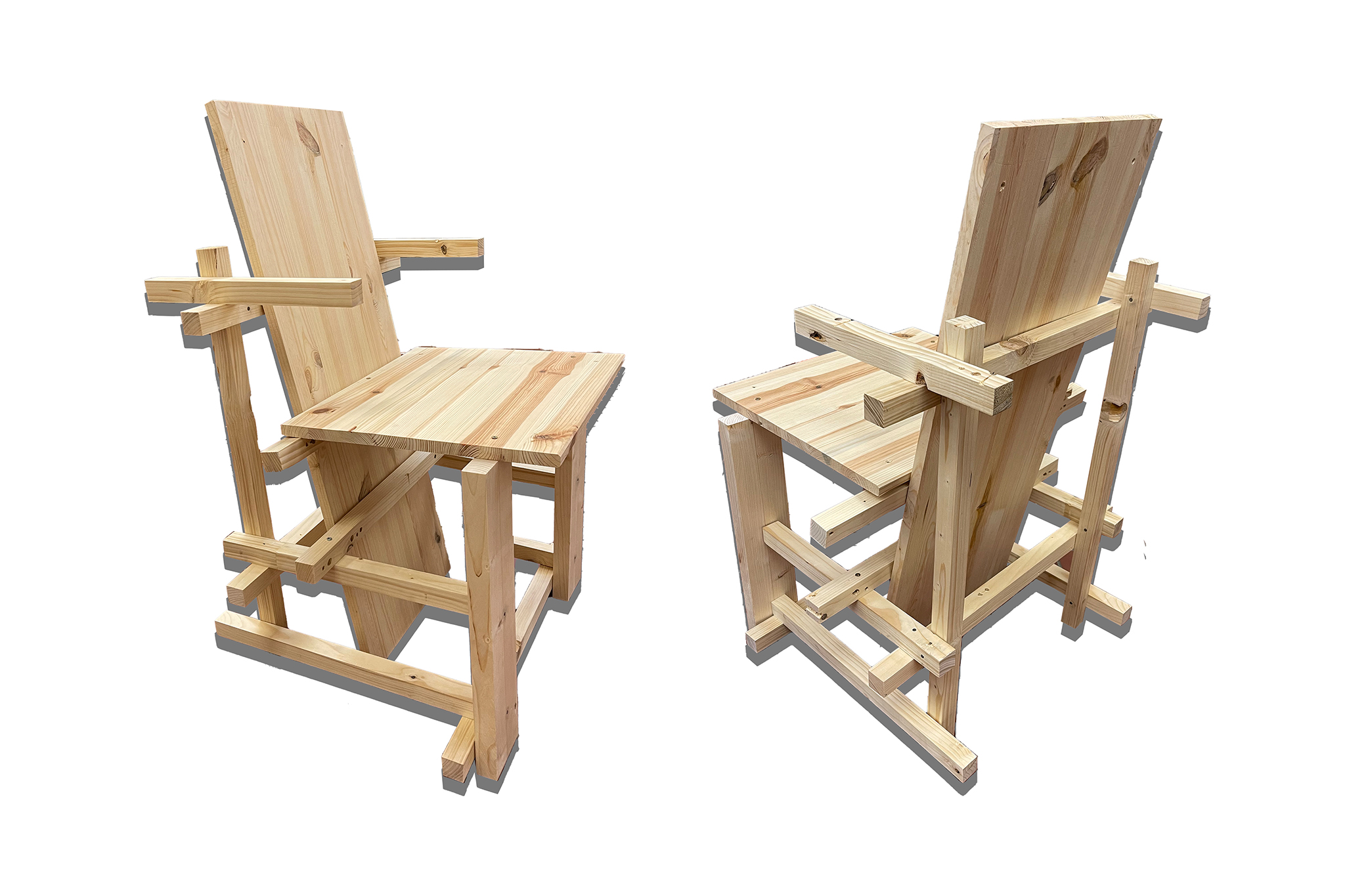 As part of my project, I looked at the color and shape changes of the Red and Blue Chair with the eventual full abstraction from the chair to 2 pallets used by students as a low cost alternative to build a bed frame. But toxic glues contained in the pallets actually make them unsuitable for bed construction. Let pallets be pallets and maybe in the future just use existing furniture for frame construction.
