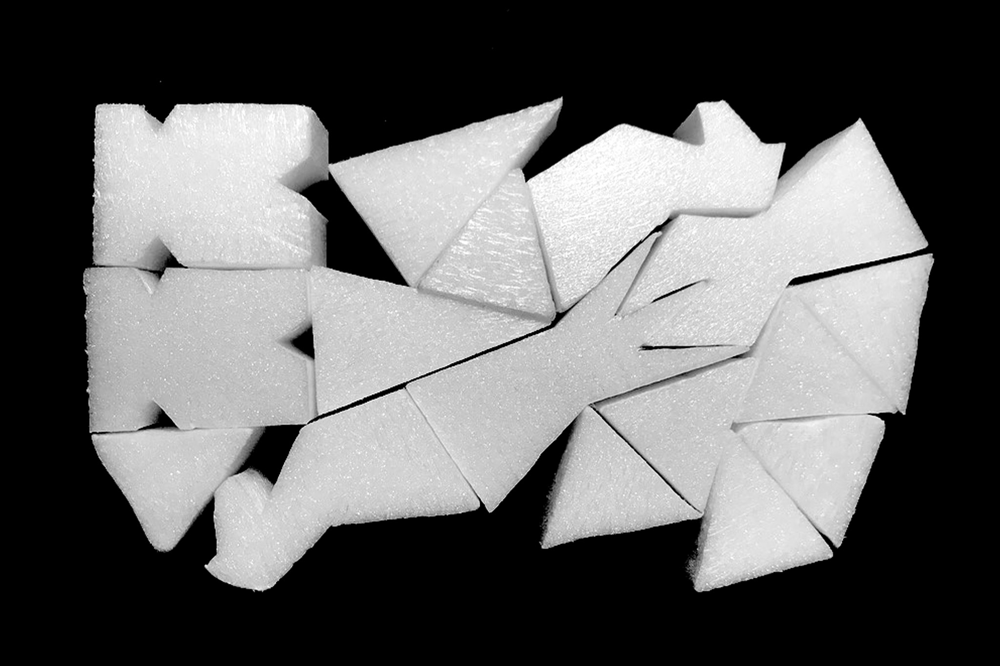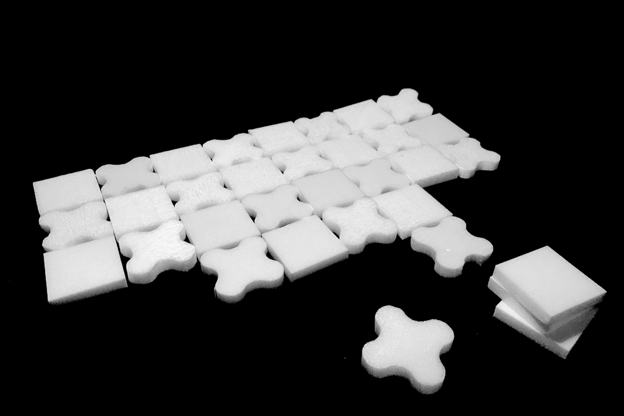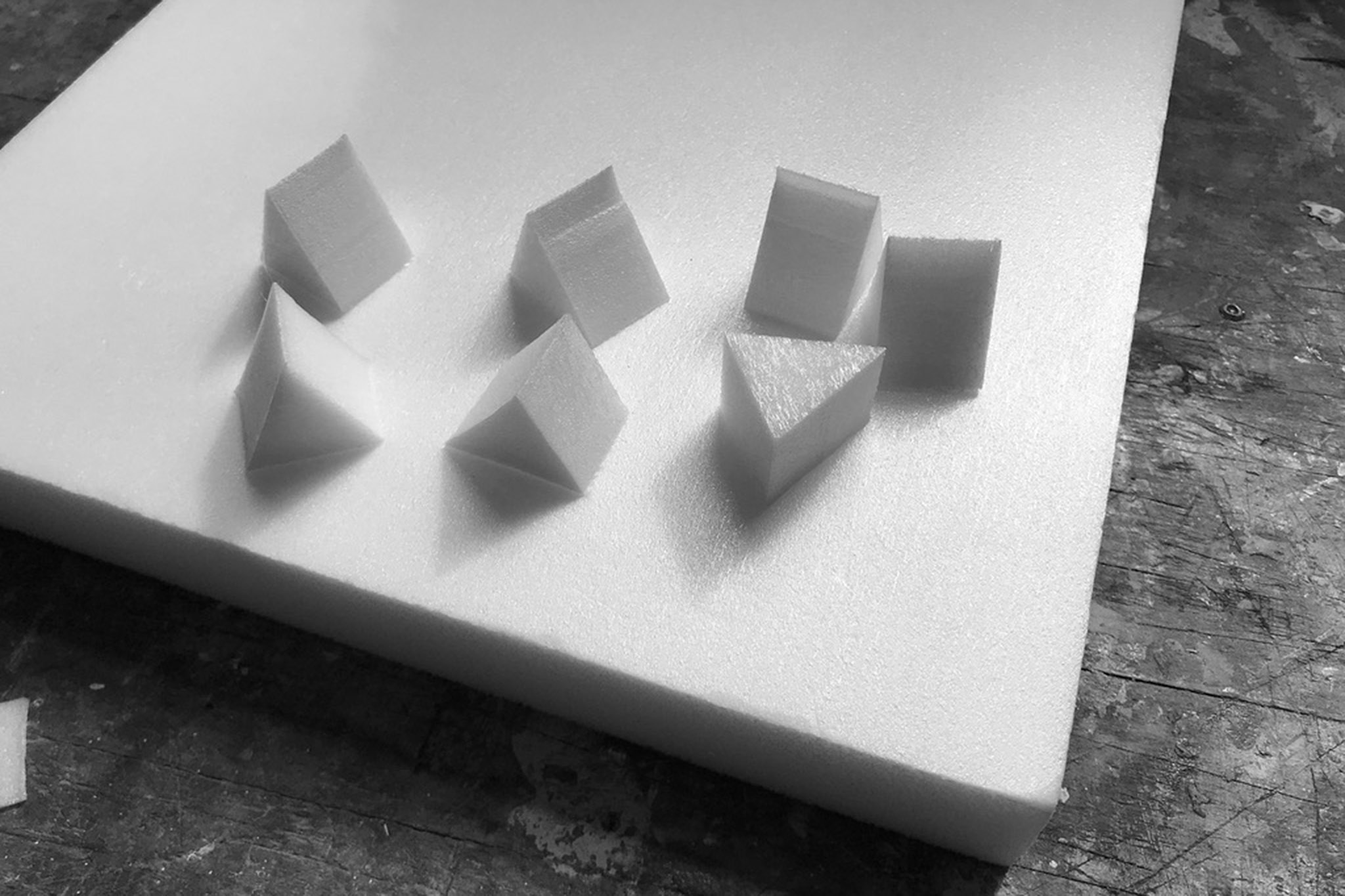 Also the playing field is not constructed as a closed surface, but is divided into seperate stones with a thickness of 10mm. Here the distinction is also not solved by colors, but the two formal languages are taken up again. The 25mm thick figures get their character by an optimal and material-saving use of the material. For example, King and Queen can be inserted into each other at their upper ends, so that no residual material is created. The first model made of polysterol gives a first glimpse of what the final design can look like in a 1:1 scale. The final prototype is to be made of solid wood, so that the figures are easy to handle with an optimal weight.