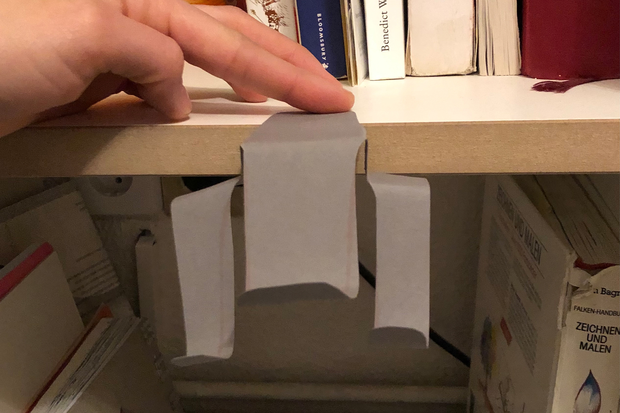 Instead of drilling holes in walls, you can slide this hook onto different surfaces. To do this, you have to bend it in four different places. This allows it to adapt to the place where you want it to hold something.#