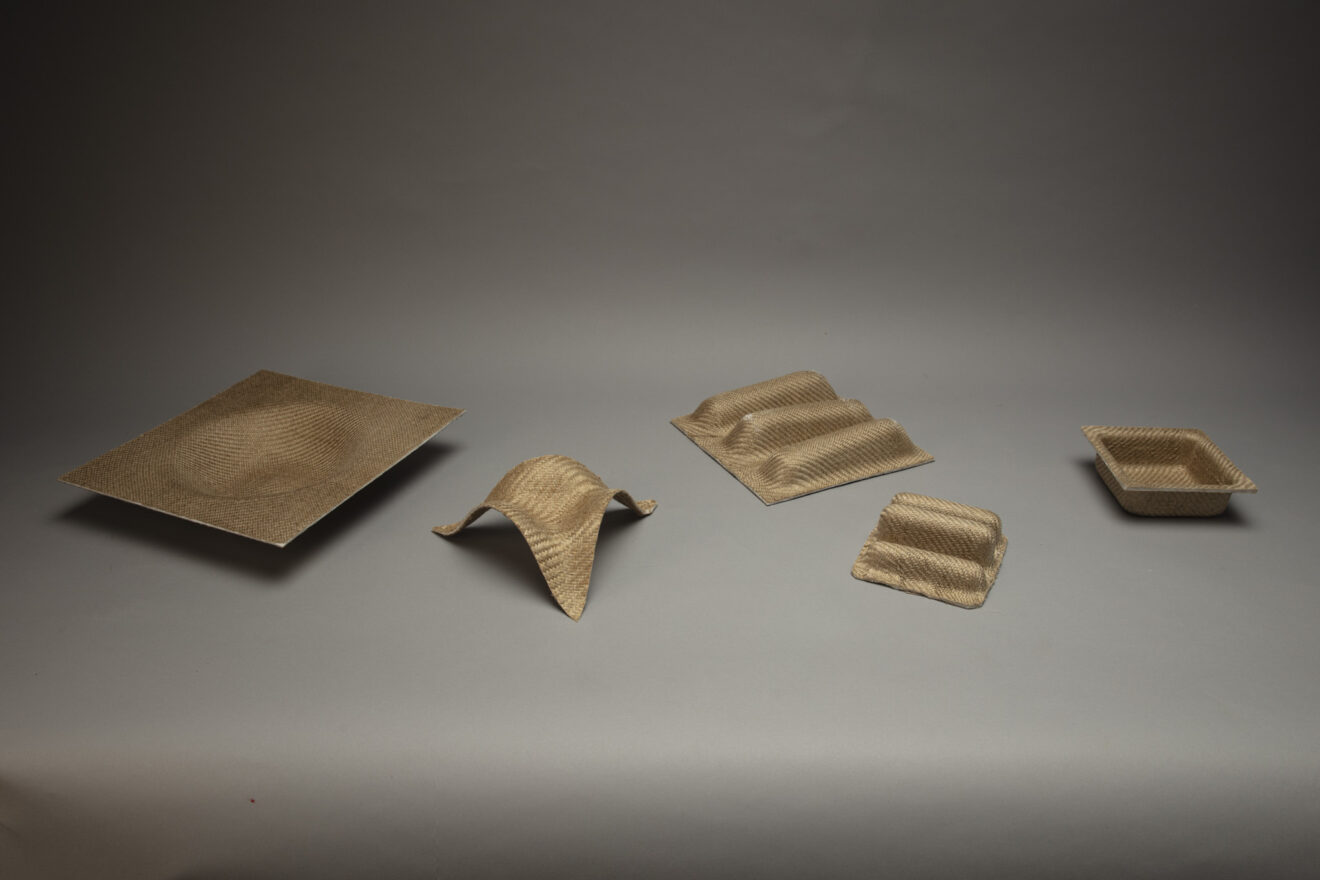 LignoFlax ist eine Material und Formstudie, welche das Potenzial von Lignin und Flachsfasern als Verbundwerkstoff untersucht.