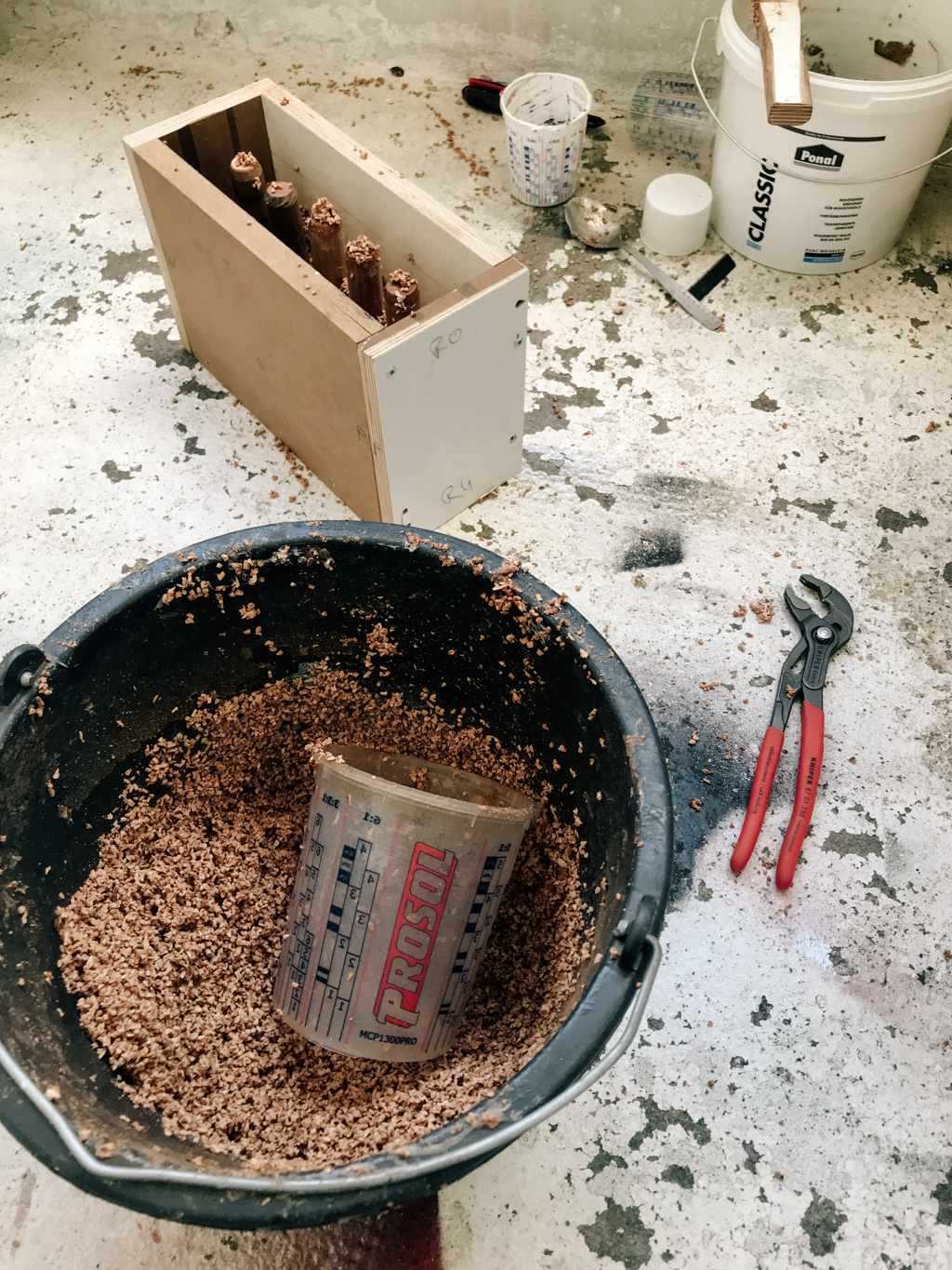 Einer nach der Form für das Material, der andere nach einem Material für die Form. Kork fand den Mauerstein – und der Mauerstein fand den Kork – ein Mauerstein aus Kork.