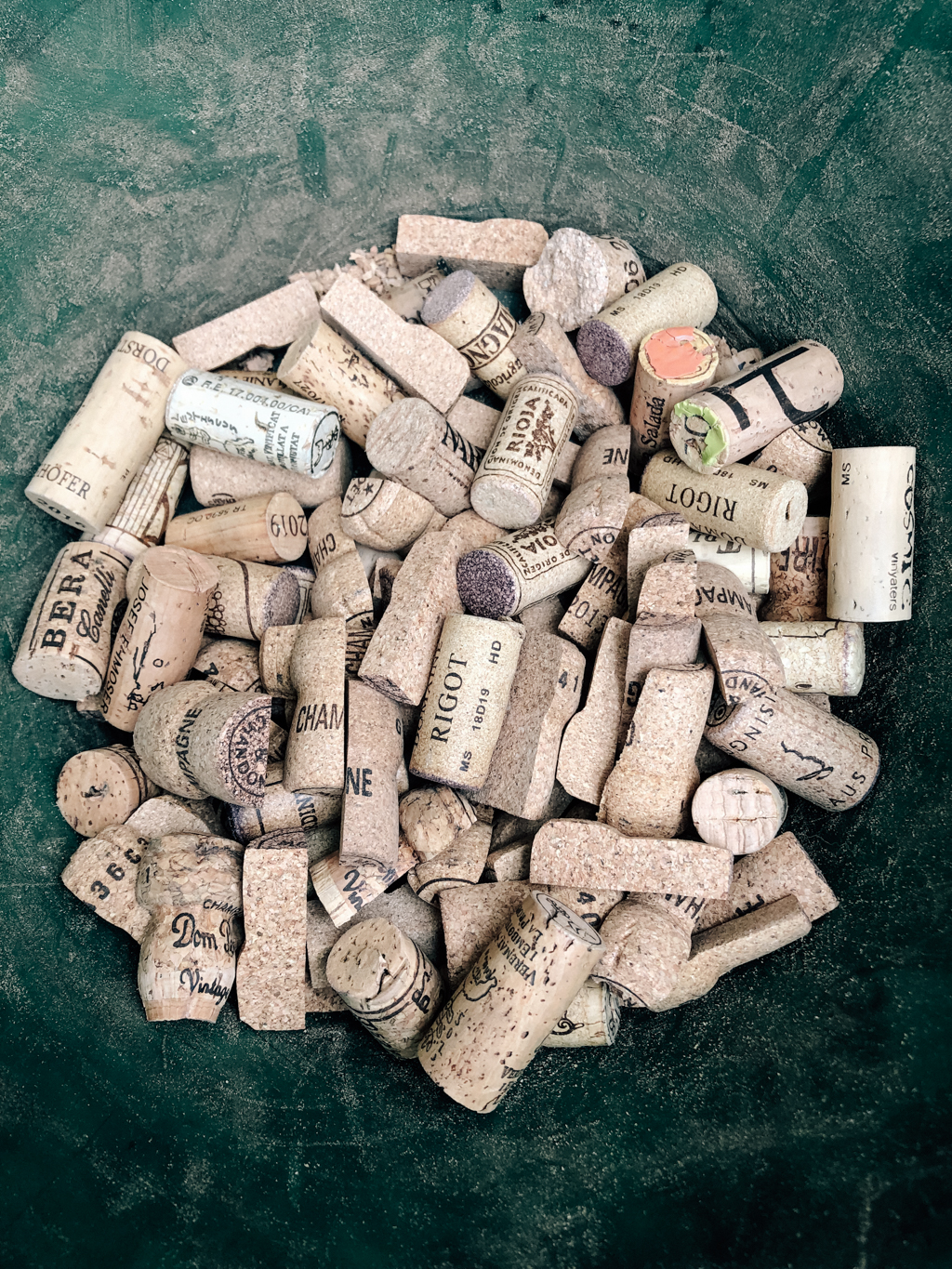 What are the possibilities of recycling bottle corks? How can the extracted material be given a new shape with simple forms.