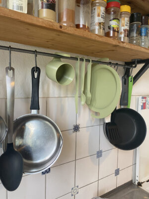 oder einem Regal zu lagern. Sie können einfach bis zur nächsten Verwendung hängen bleiben, genau wie die Töpfe und Pfannenwender, die oft in unserer Küche hängen. Das Set eignet sich besonders für Personen, die eine stilvolle und EINFACHE Aufbewahrungslösung suchen, um sich den Abwasch zu erleichtern.