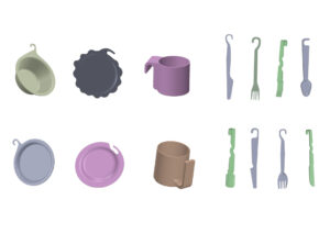 Alle Teile des Sets haben eine integrierte Hakenform, die es dem Benutzer ermöglicht, alle Teile aufzuhängen. Das Set verändert die Reihenfolge des Geschirrspülens, denn sobald das Geschirr trocken ist, gibt es keinen Grund mehr, es in einer extra Kabine