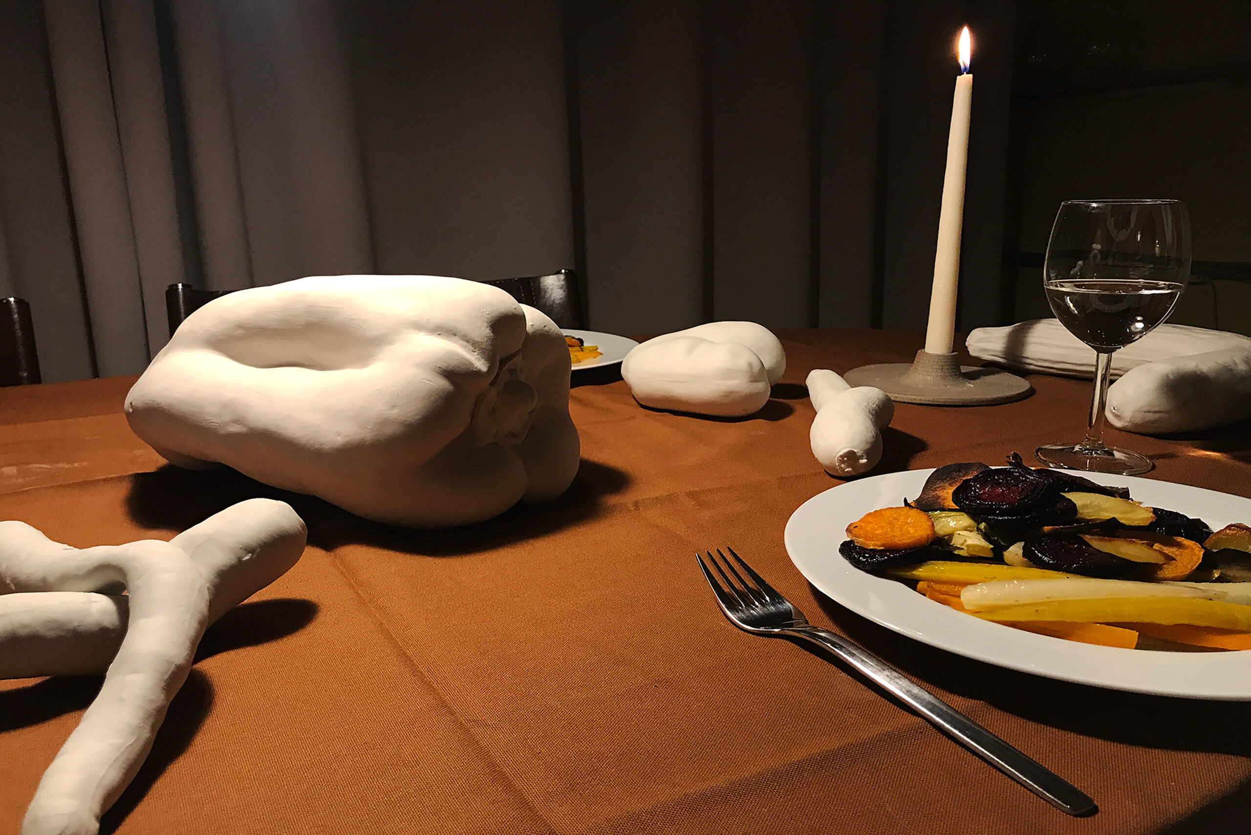 For the prototypes, the imperfect vegetables were 3D scanned, printed, moulded in plaster and then cast in ceramic. To make them look even more whimsical and absurd on the table, they were enlarged three to four times. In this way they stand out even more from the norm and attract attention.