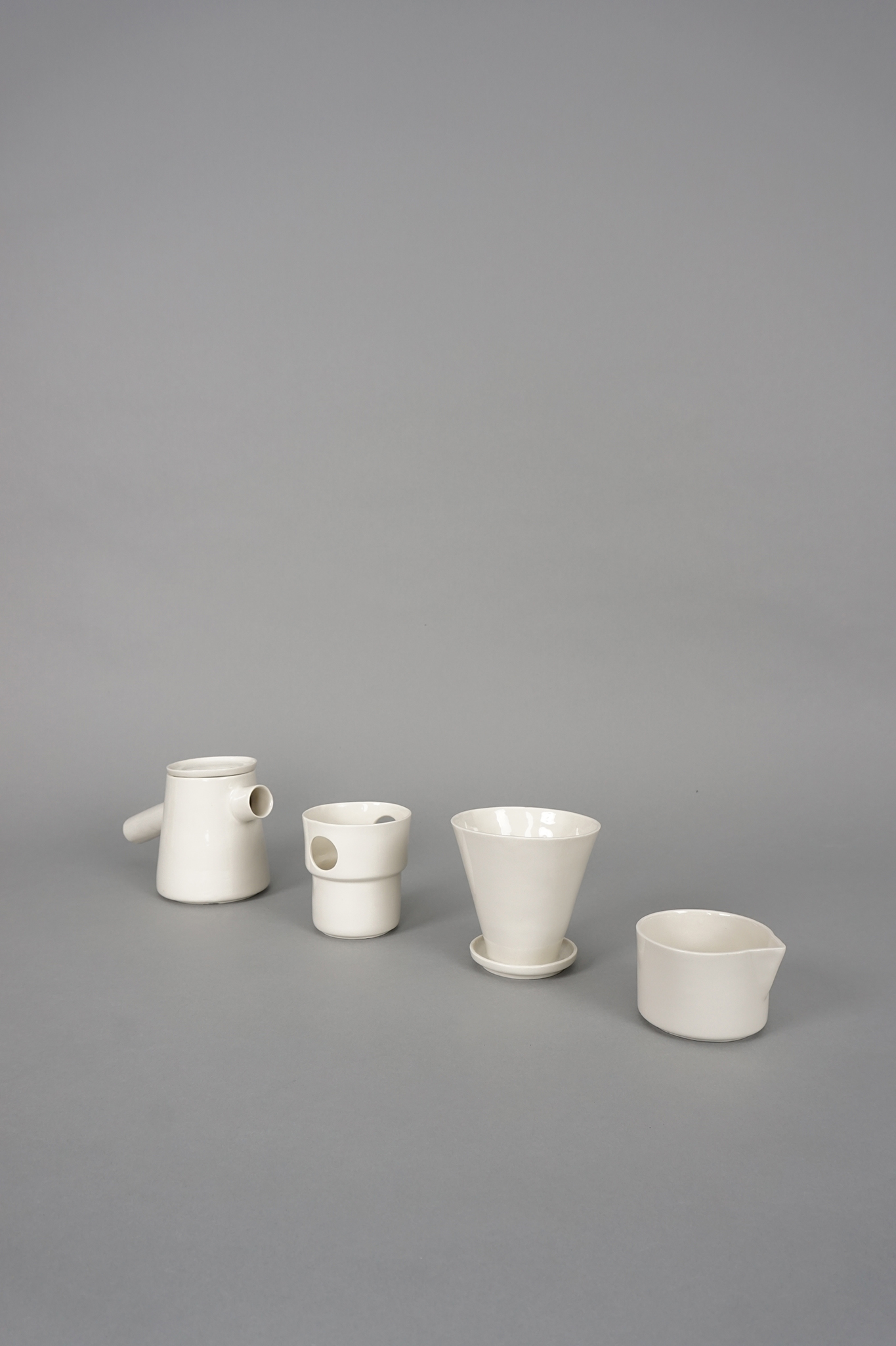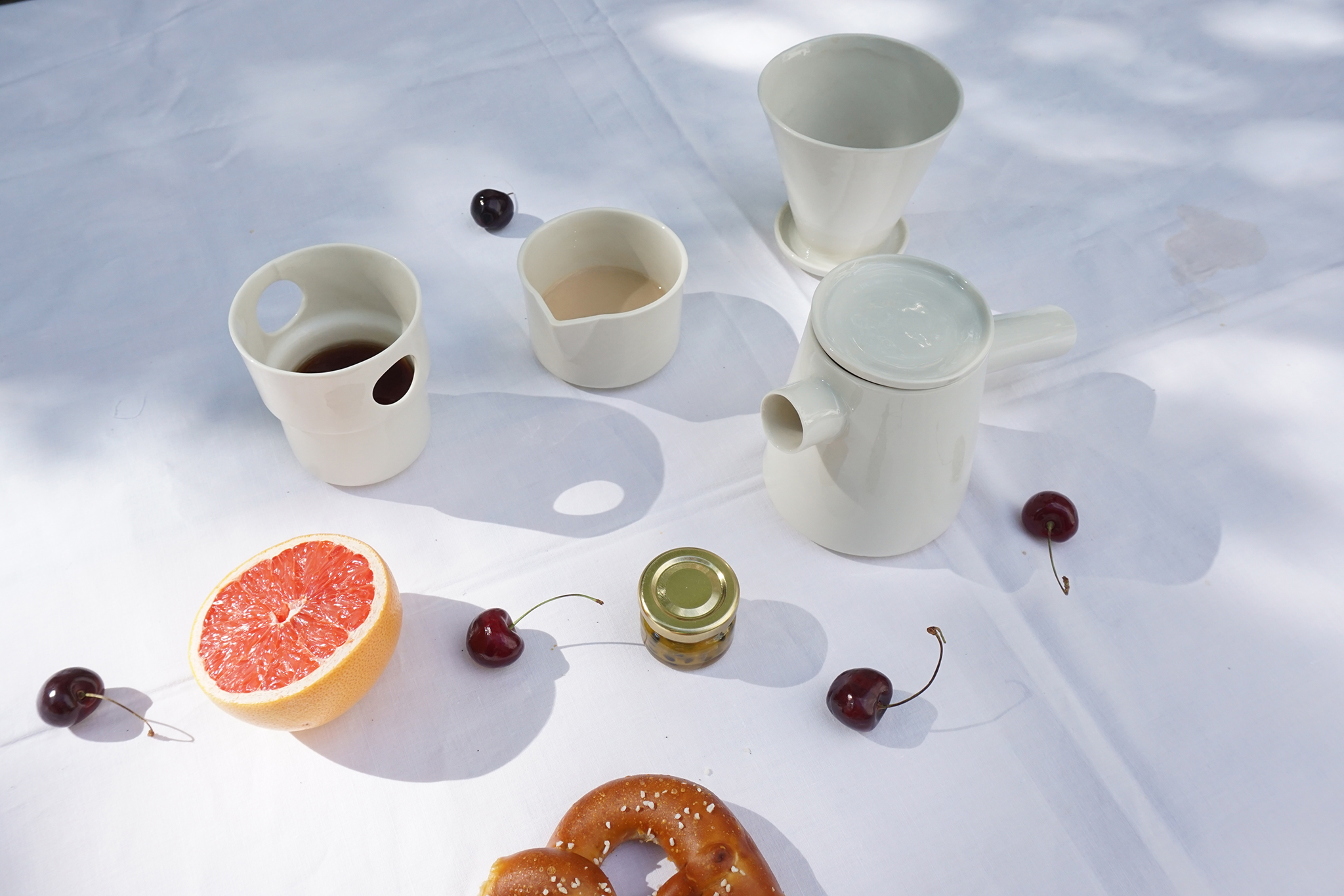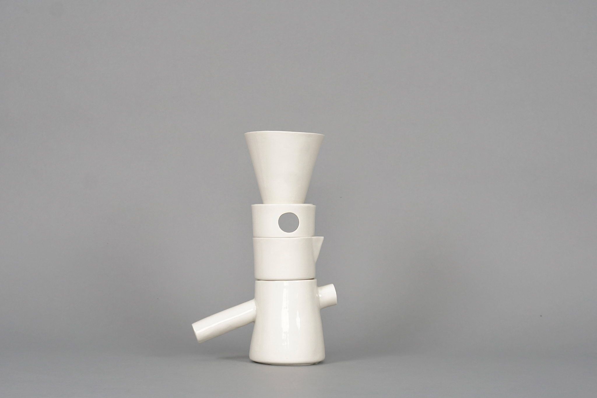 The Pioupiou project was born from the desire to create a contemporary porcelain figurine, inspired by two archetypes of porcelain objects, the tea set and the bird figurines that used to be found on well-arranged tables to show the beauty of nature. My idea was to merge these two archetypes to create a service that would not be presented on a tray (horizontally) but could be stacked to create a vertical figurine. It is a different way to consider everyday objects. Using the stacking, not as a simple way to store, to optimize closet space but as a possibility to give a sculptural look to these objects. Instead of hiding them behind a door, what if they were left in the room for all to see as a figure of the house ? By stacking these everyday objects, we obtain something more fragile, refined, which must be handled with more care, something that echoes the classic figurine.