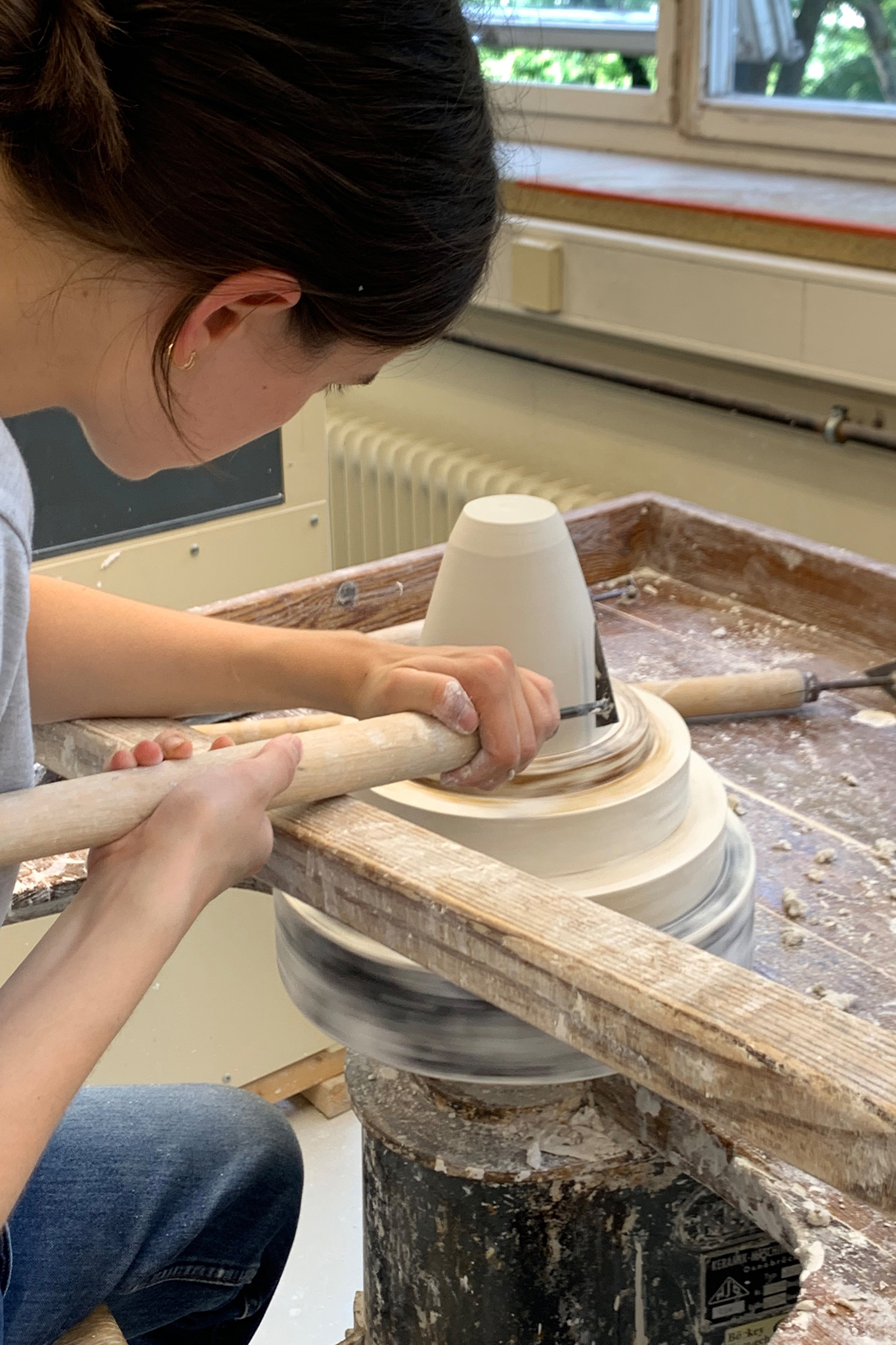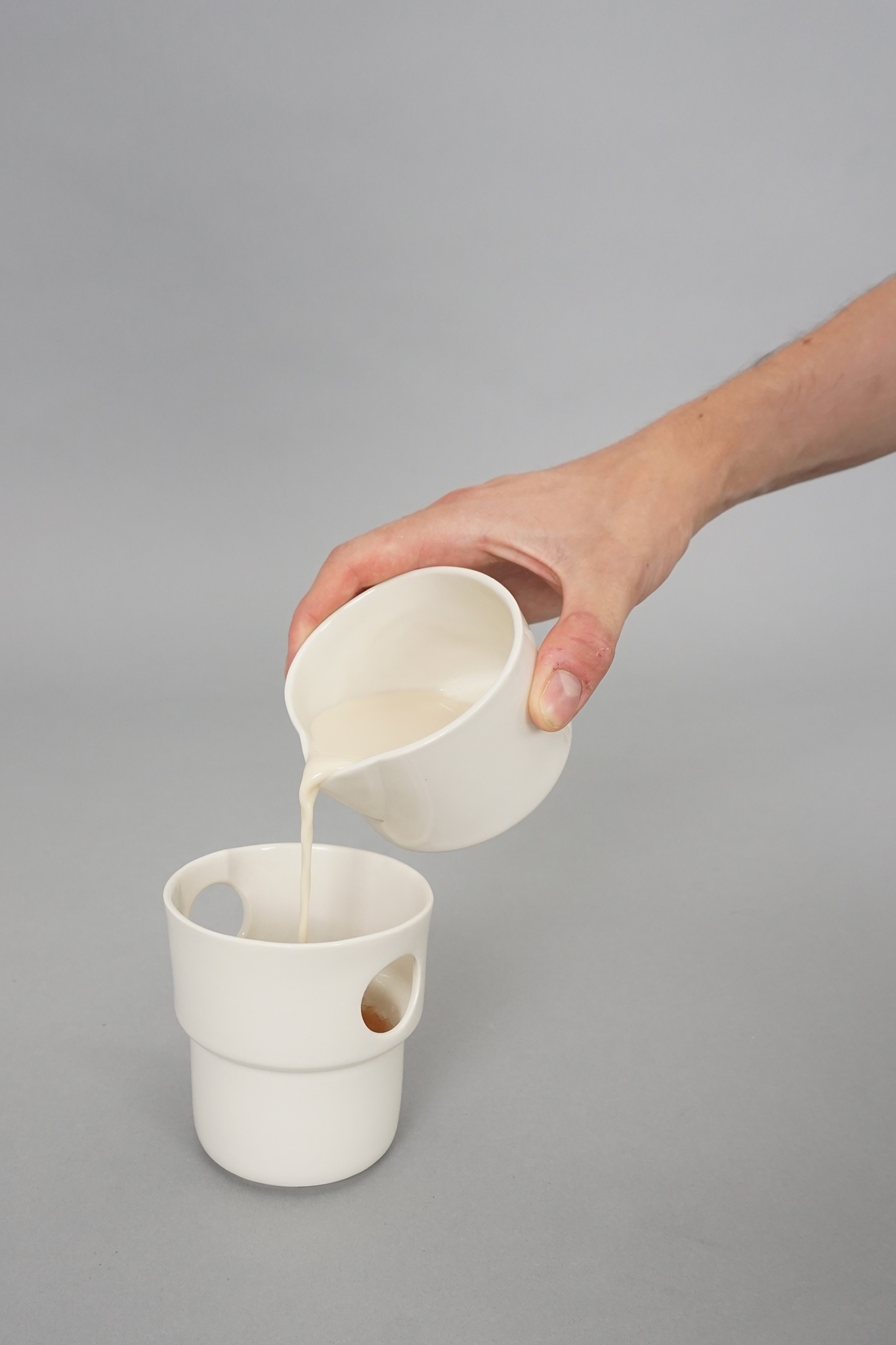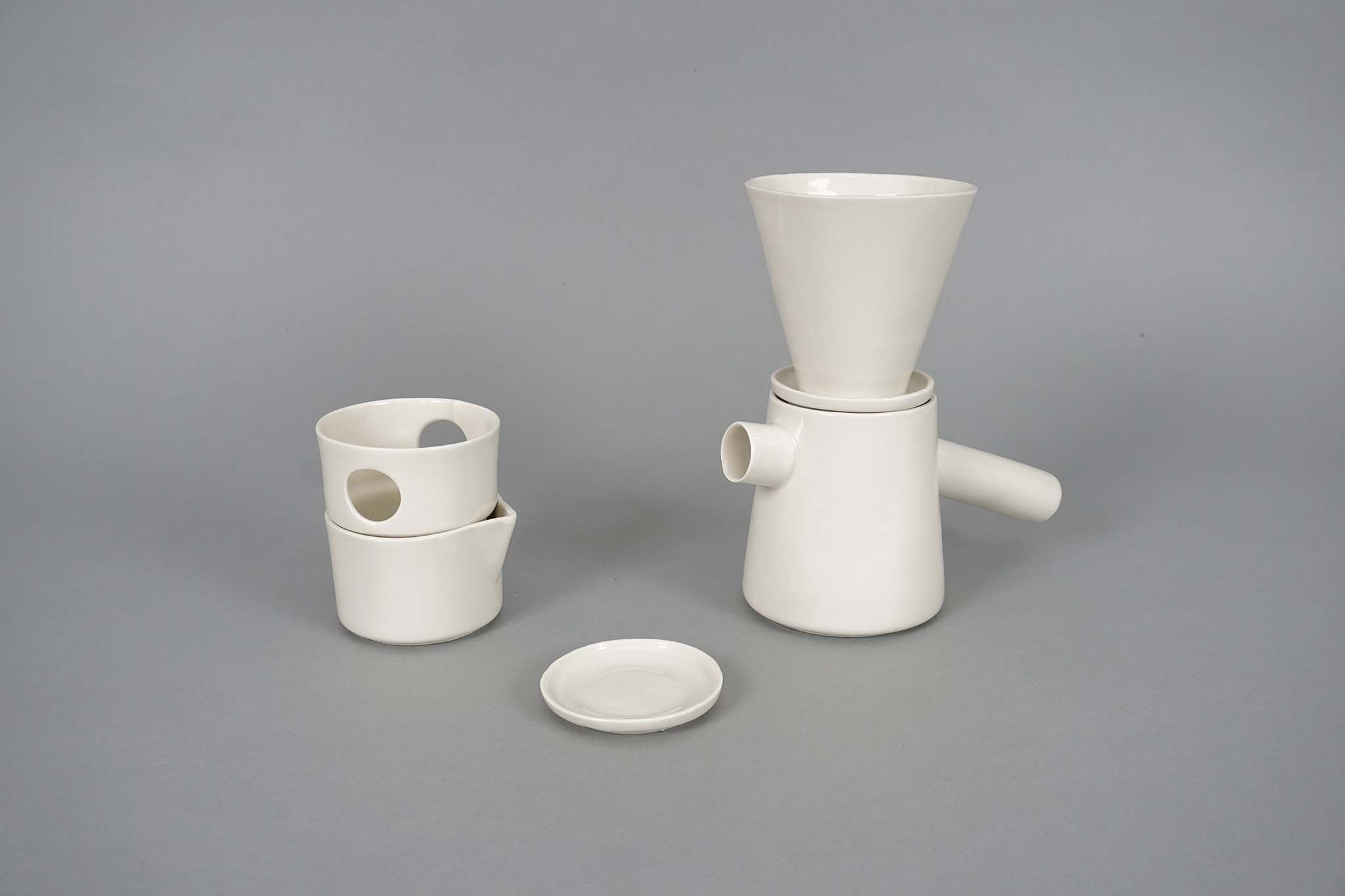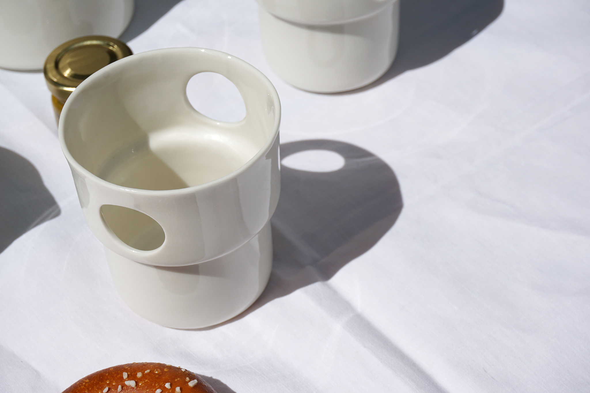 The Pioupiou project was born from the desire to create a contemporary porcelain figurine, inspired by two archetypes of porcelain objects, the tea set and the bird figurines that used to be found on well-arranged tables to show the beauty of nature. My idea was to merge these two archetypes to create a service that would not be presented on a tray (horizontally) but could be stacked to create a vertical figurine. It is a different way to consider everyday objects. Using the stacking, not as a simple way to store, to optimize closet space but as a possibility to give a sculptural look to these objects. Instead of hiding them behind a door, what if they were left in the room for all to see as a figure of the house ? By stacking these everyday objects, we obtain something more fragile, refined, which must be handled with more care, something that echoes the classic figurine.