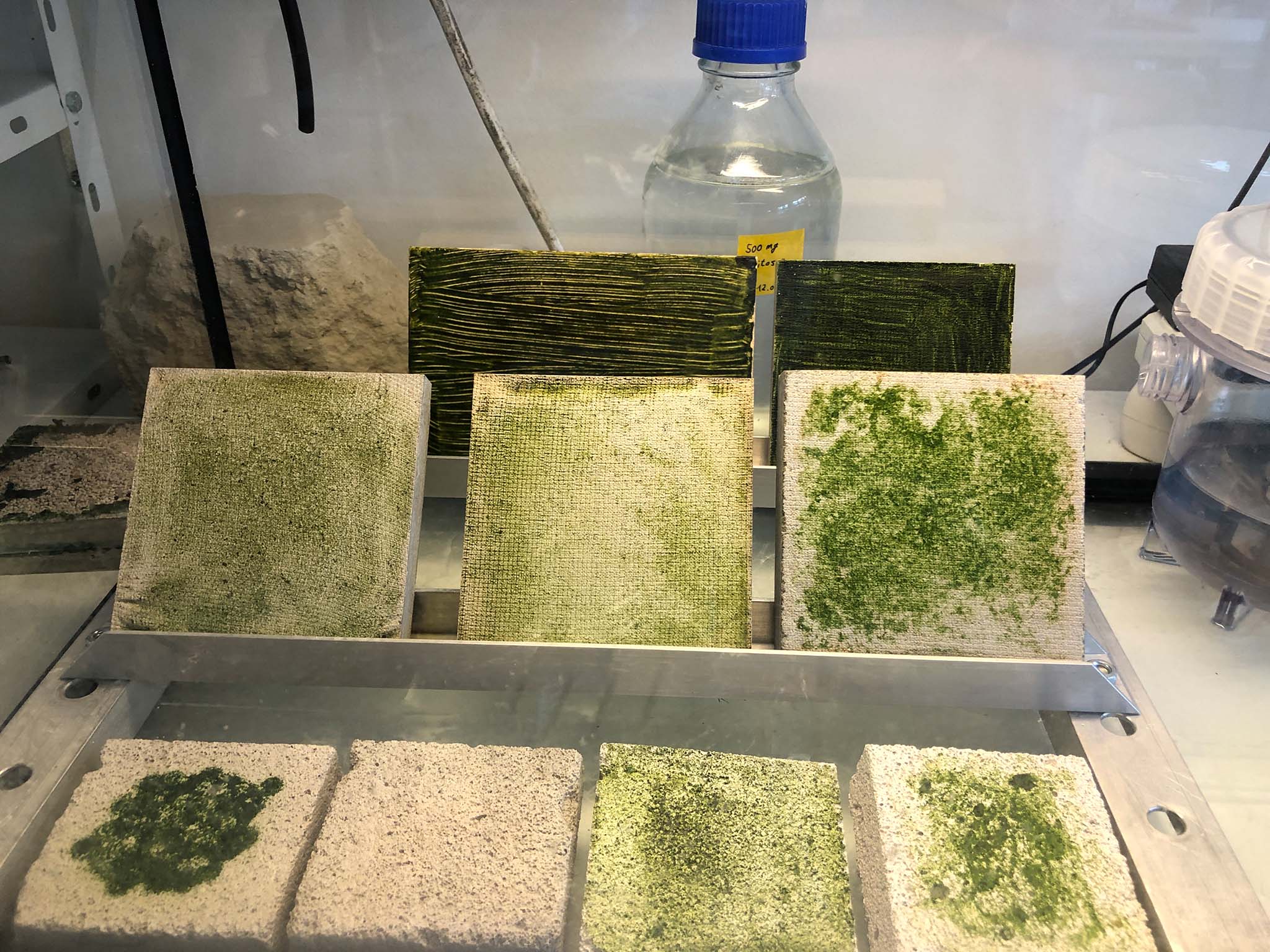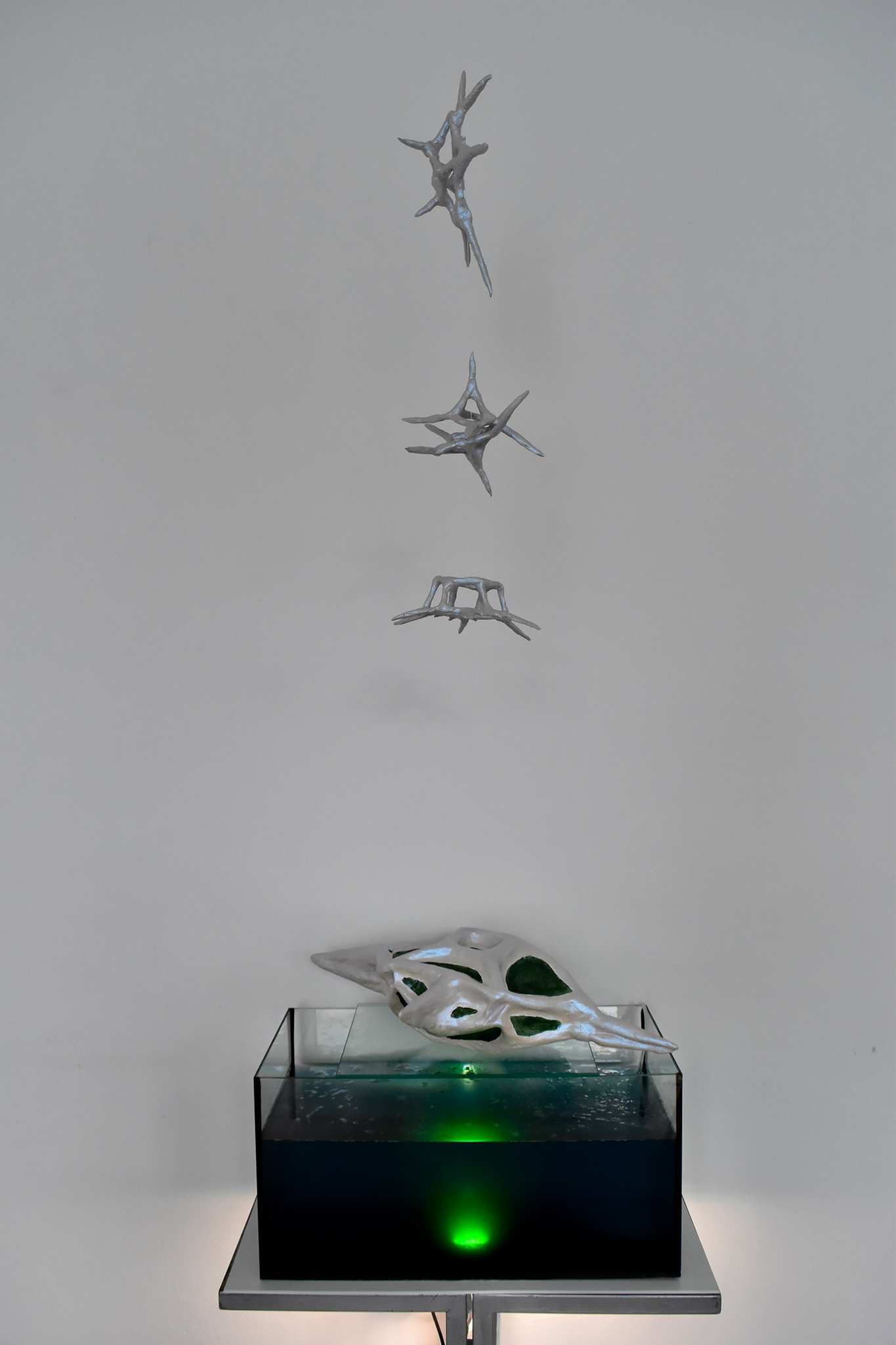 Silicart enables co-living with algae. The shape is informed by a silicoflagellate micro alga. Algae also grow on its surface. The hollow inside serves as a tank from which the algae irrigate themselves. They filter the water and lead to cleansed water to evaporate into the room which cools down the interior climate. This low-maintenance product can be crafted from local soil and is solely driven by microbiological forces fuelled by sun, CO2 and human care.
