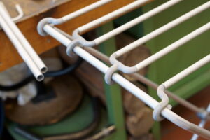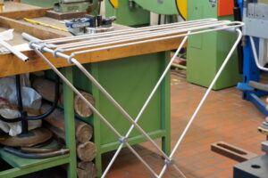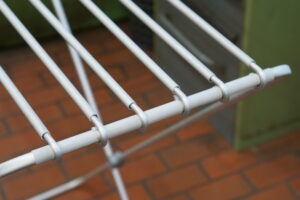 Ein einfacher Wäscheständer, auf den Sie Ihre Bettwäsche zum Trocknen schieben können.