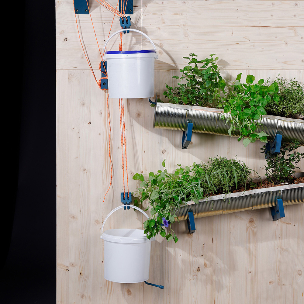 CareA is a plant watering system that can be assembled from catering waste such as yoghurt buckets, tomato cans and old canvas bags. All materials are easy to find, replaceable if needed and free of charge. The 3D-printed, connecting parts made of recycled PLA turn the upcycled individual parts into a complete system. The basins made of cans can be lengthened or shortened as needed, thanks to the fact that they consist of several links. The simple construction and the absence of technical elements, as in other hydroponic systems, ensures better accessibility and simplifies maintenance. CareA is an open source project. A construction manual, a herbarium and all 3D models can be downloaded. The community of users is to be included in the design process, so they can exchange ideas in forums and the herbarium can grow, tools can be reconsidered and further developed. The system was designed to create a kind of household pharmacy, stocked with regional wild herbs, in a shared flat, in a communal garden or in a one-room flat. Almost lost folk knowledge from monastery healing gardens is to be revived, and awareness of our own body and the nature surrounding us is to be integrated into our everyday life. The system is water-saving as the water is circulated and nutrient-added and can thus remain in circulation for up to a month. I have applied permaculture principles, so household or organic waste serves as fertiliser and the plants can be grown in a mutually positive way, due to the long basins.