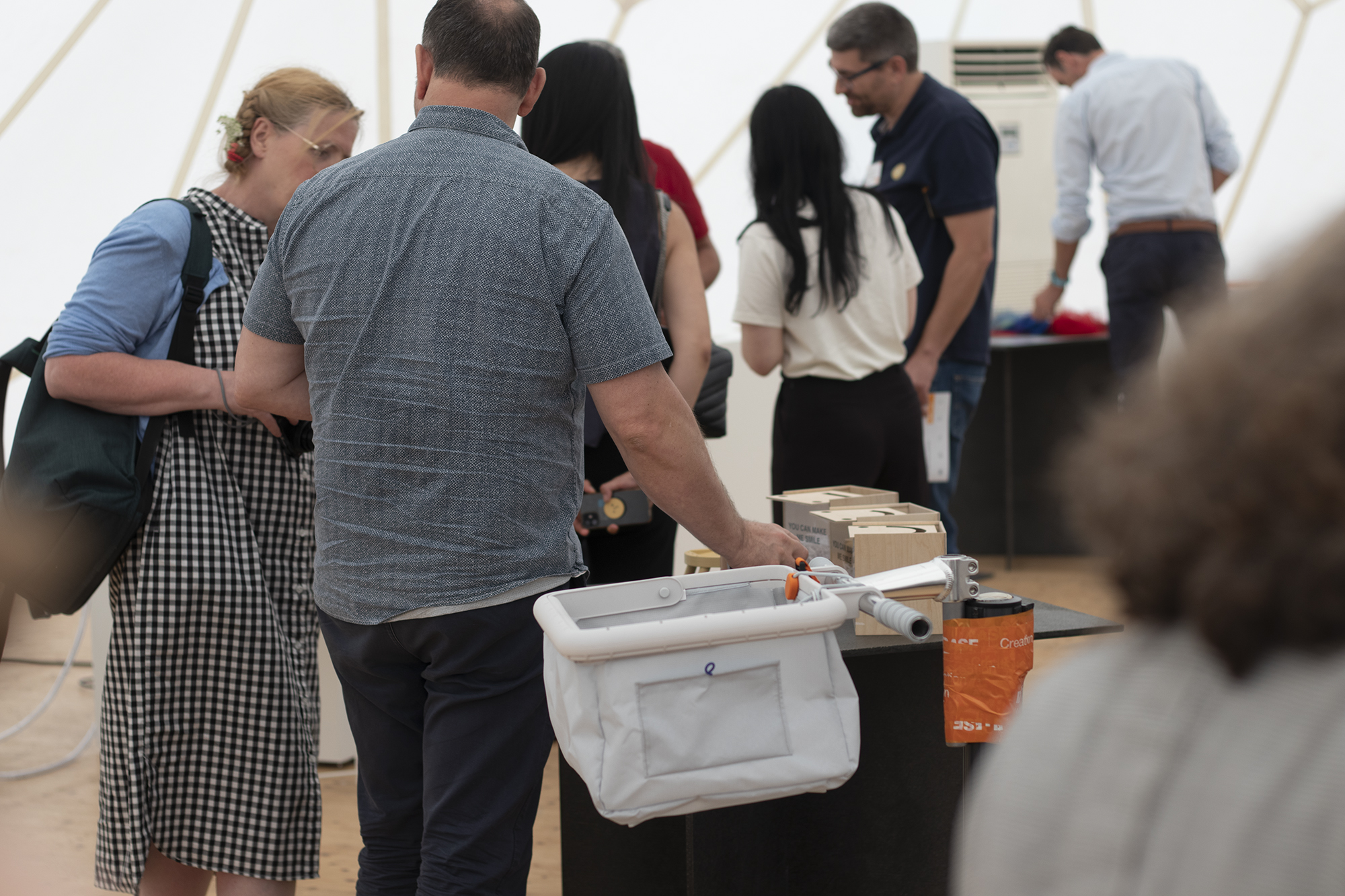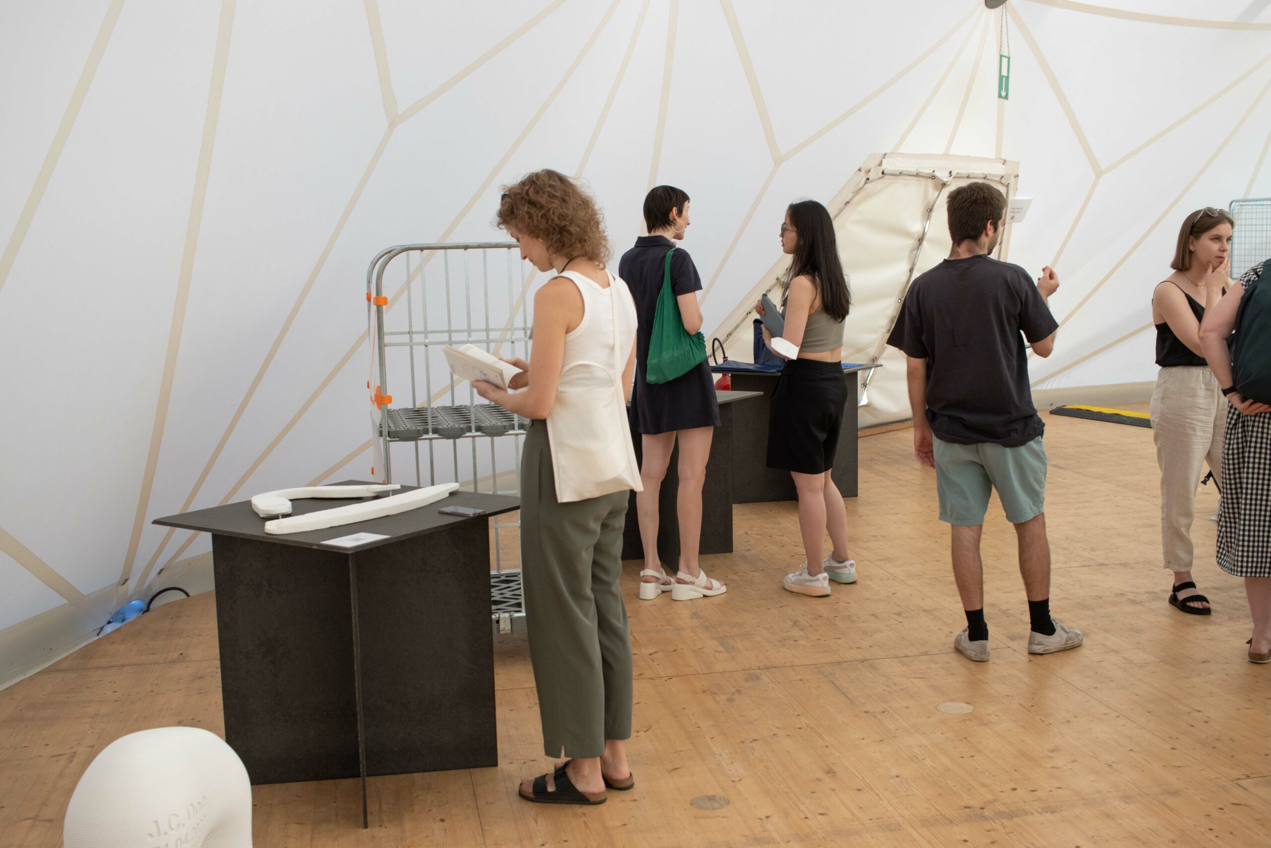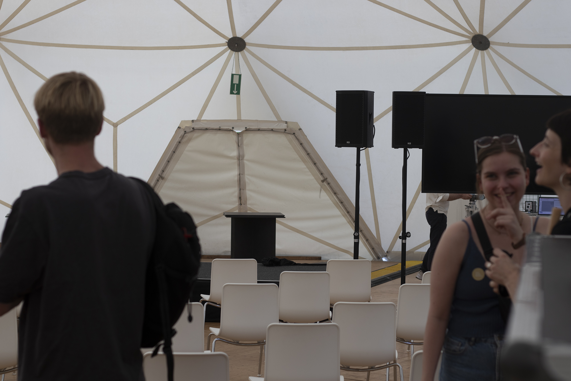 visiting Buckminsterfuller tent and see our projects being prepared for display (and getting nervous for tomororow)