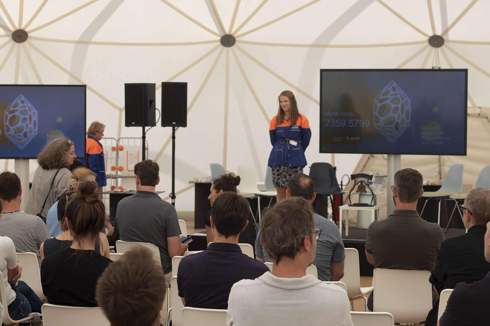 BASF Fabrikstag in Buckminster Fuller dome, first check out our exhibits!