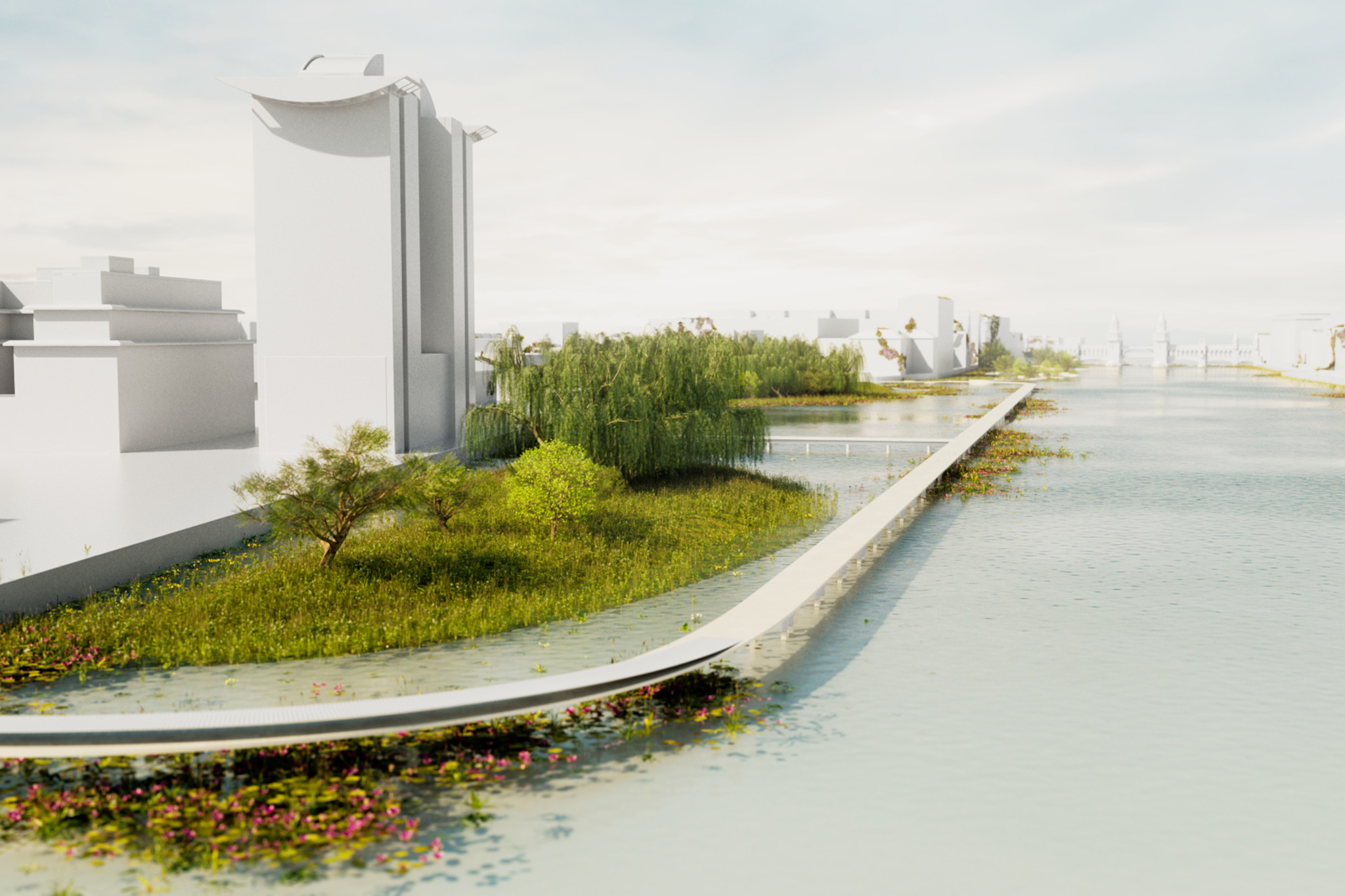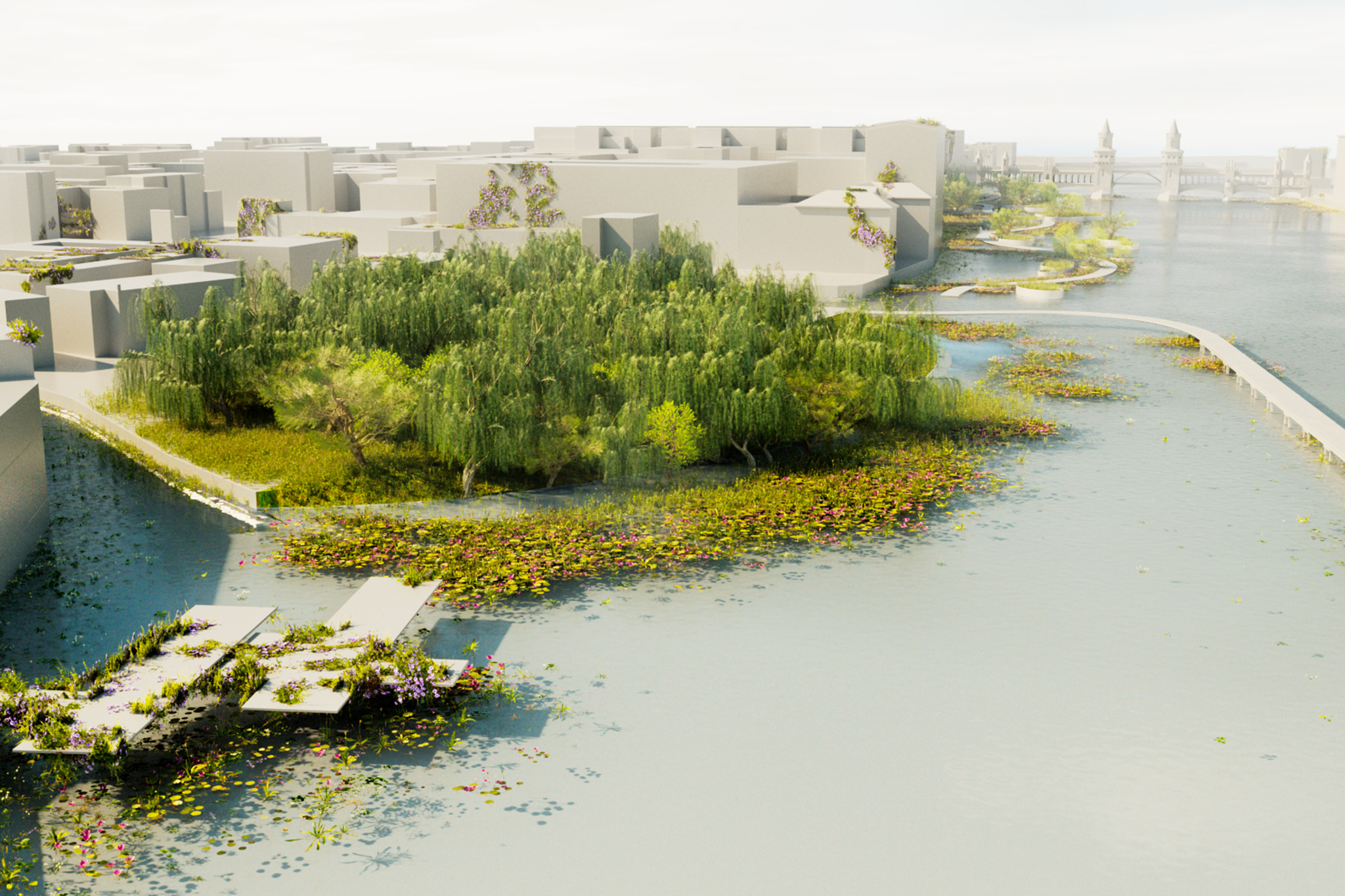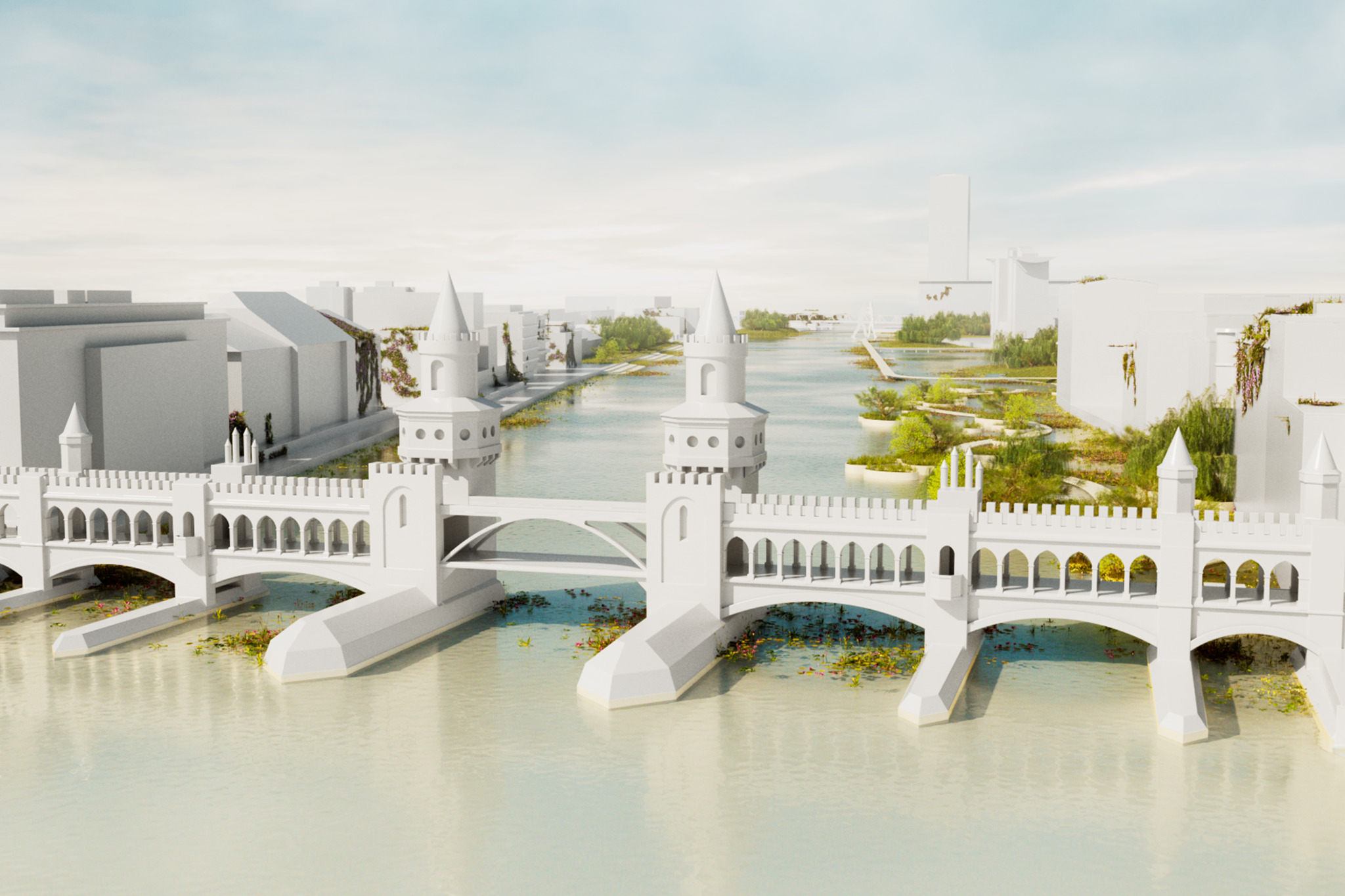 The Spree and its banks are areas characterised by a diversity of—partly contradictory—interests in terms of accessibility, management and surface water uses. In order to fully develop the potential of the Spree, new uses and management models must be developed. The Osthafen is one of the areas in Berlin with the greatest potential for improvement. This work provides development strategies and targeted urban interventions that show how the Spree—in the context of Osthafen—could be more ecologically valuable and socially inclusive, for the benefit of Berlin inhabitants, humans and non humans alike.
